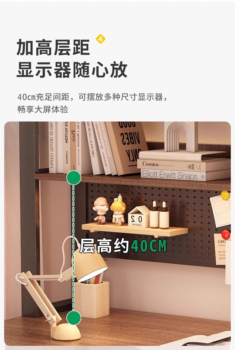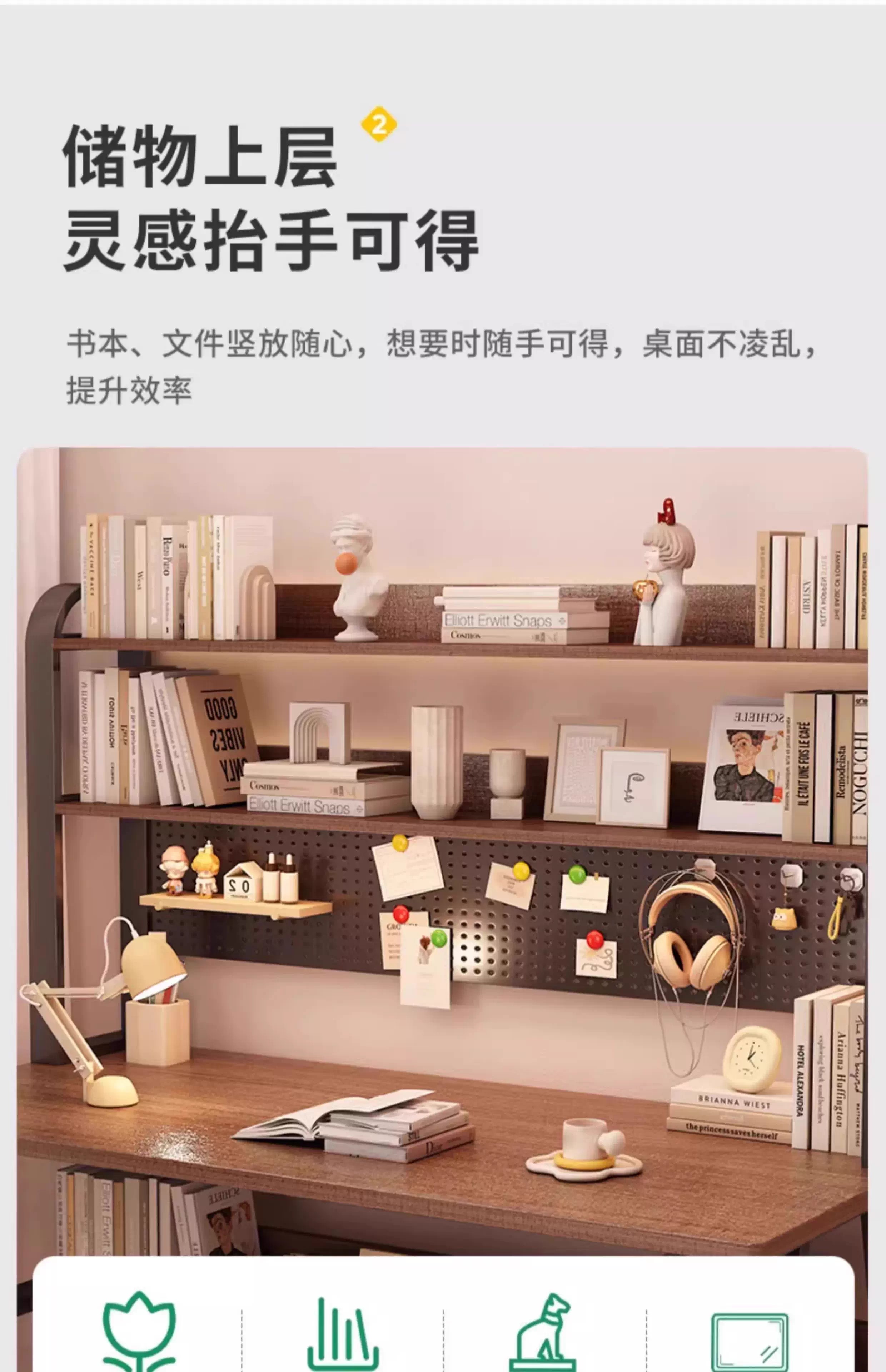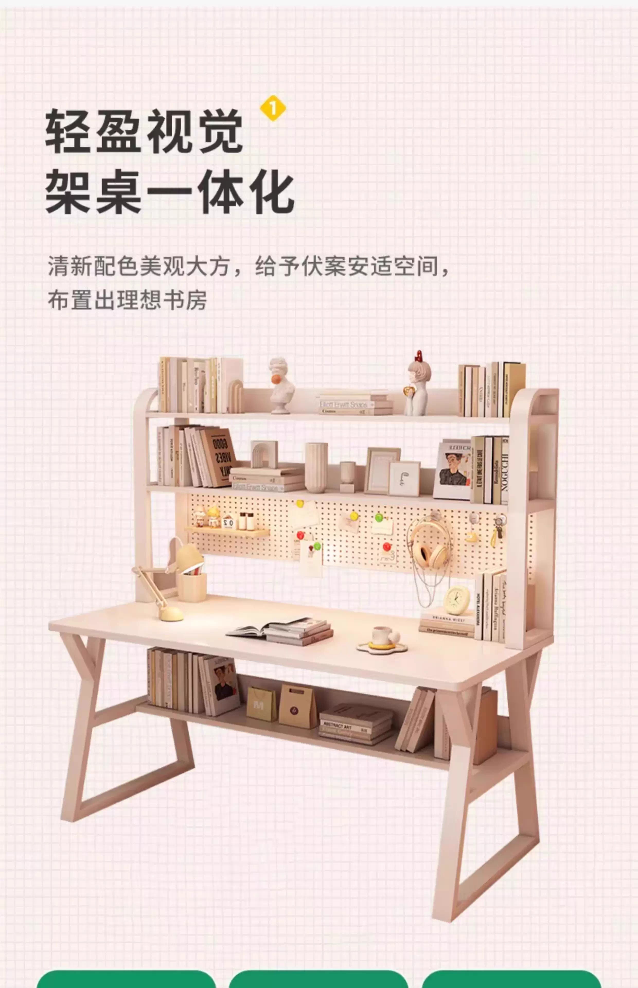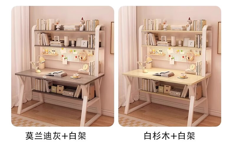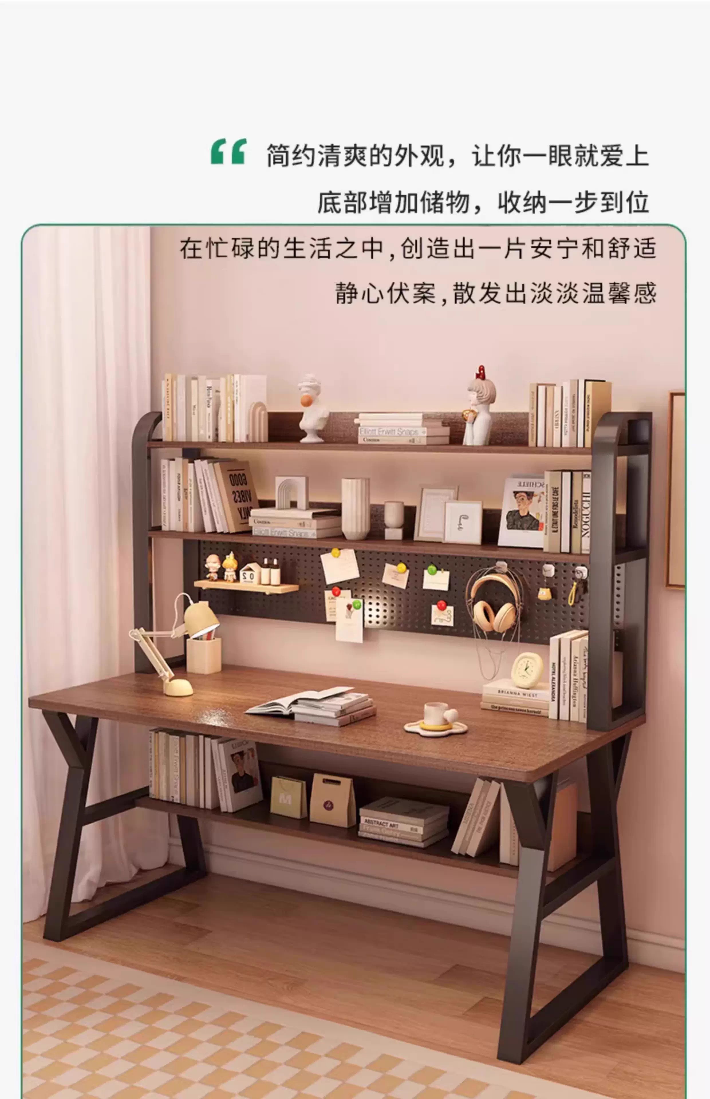 Computer desk desktop home study table with perforated board bedroom desk bookshelf integrated small table simple desk with perforated board 140*60x147CM milk white + magnet 6 + hook 3