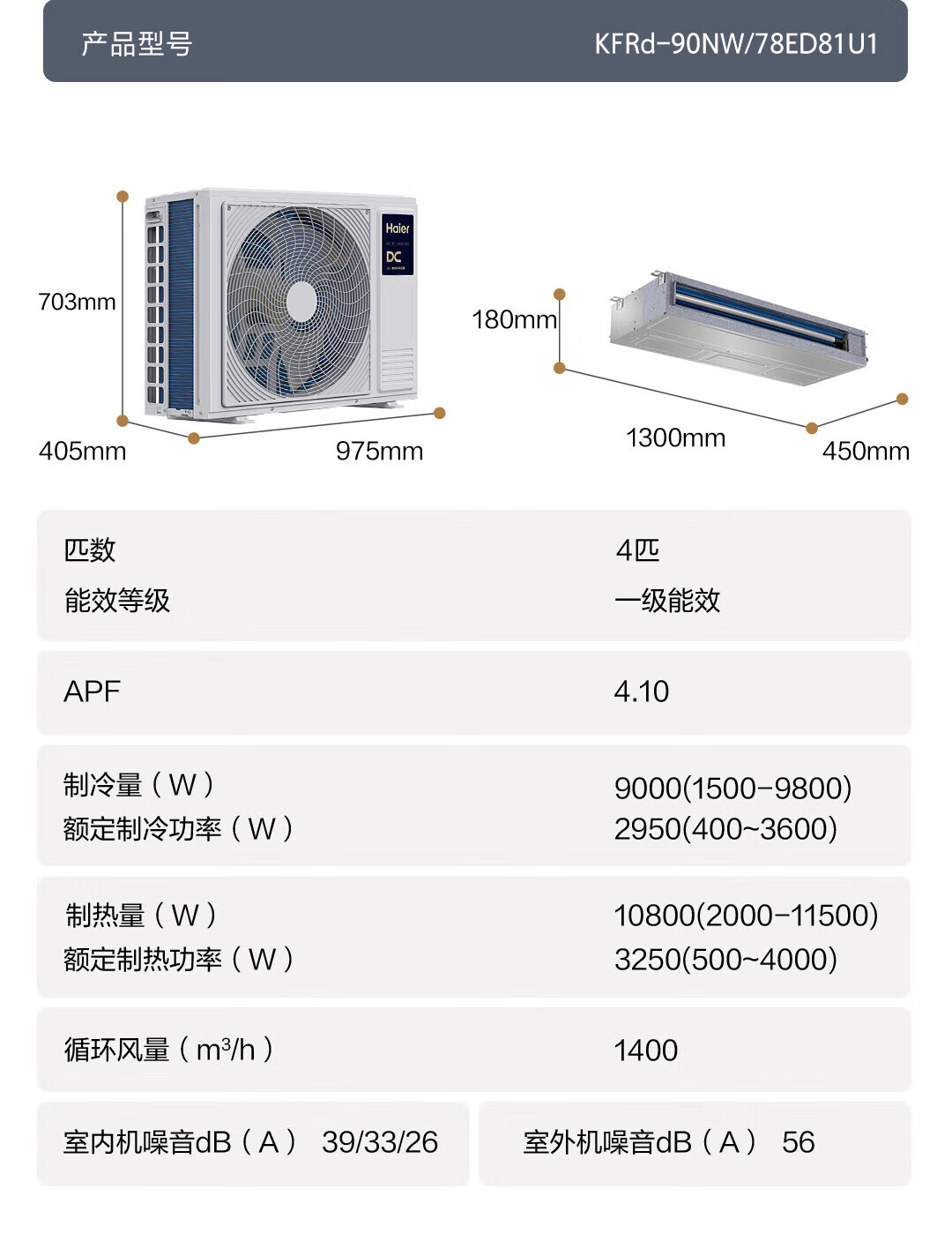 Haier central air conditioning one-to-one duct machine 4 hp, first-class energy efficiency, Yunshu Extraordinary Edition, suitable for guest and restaurant integration, dehumidification artifact with large air volume, Yunshu 4 hp, Yunshu Extraordinary Dehumidification, one-to-one 30-50