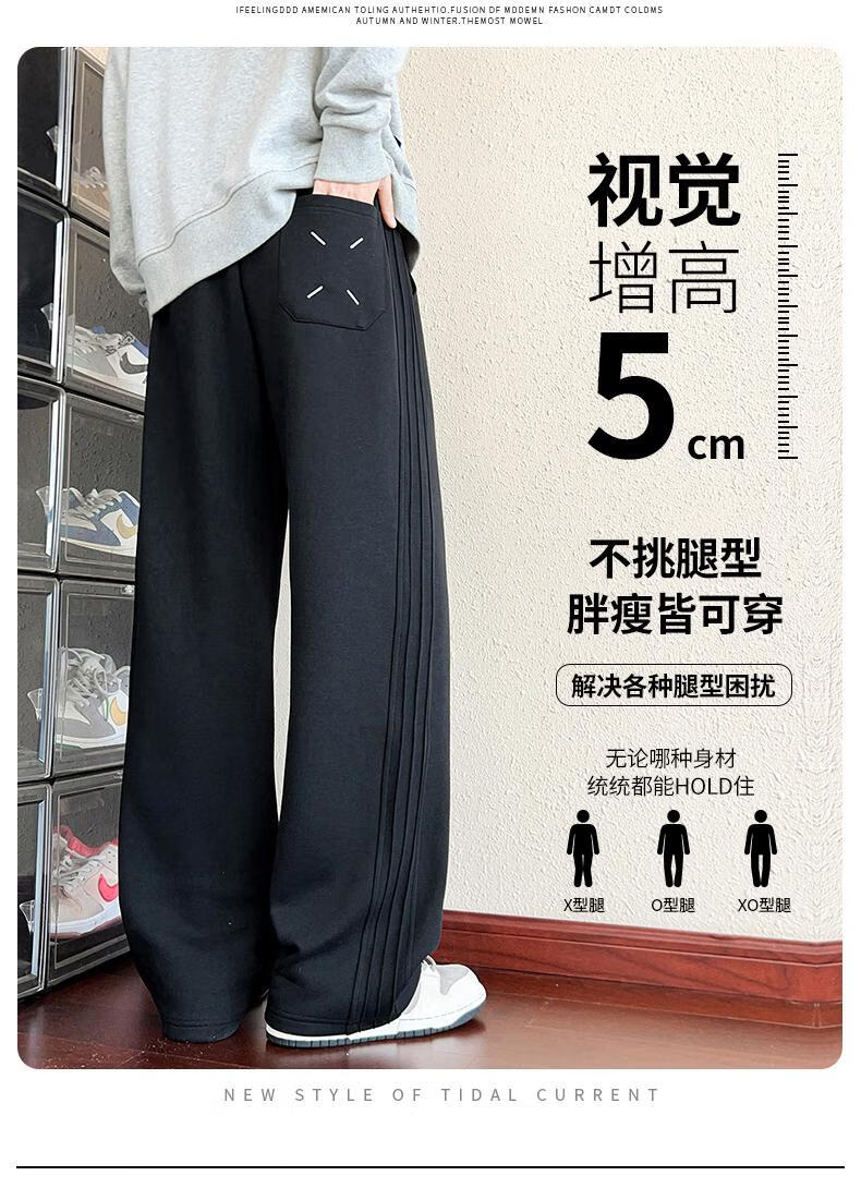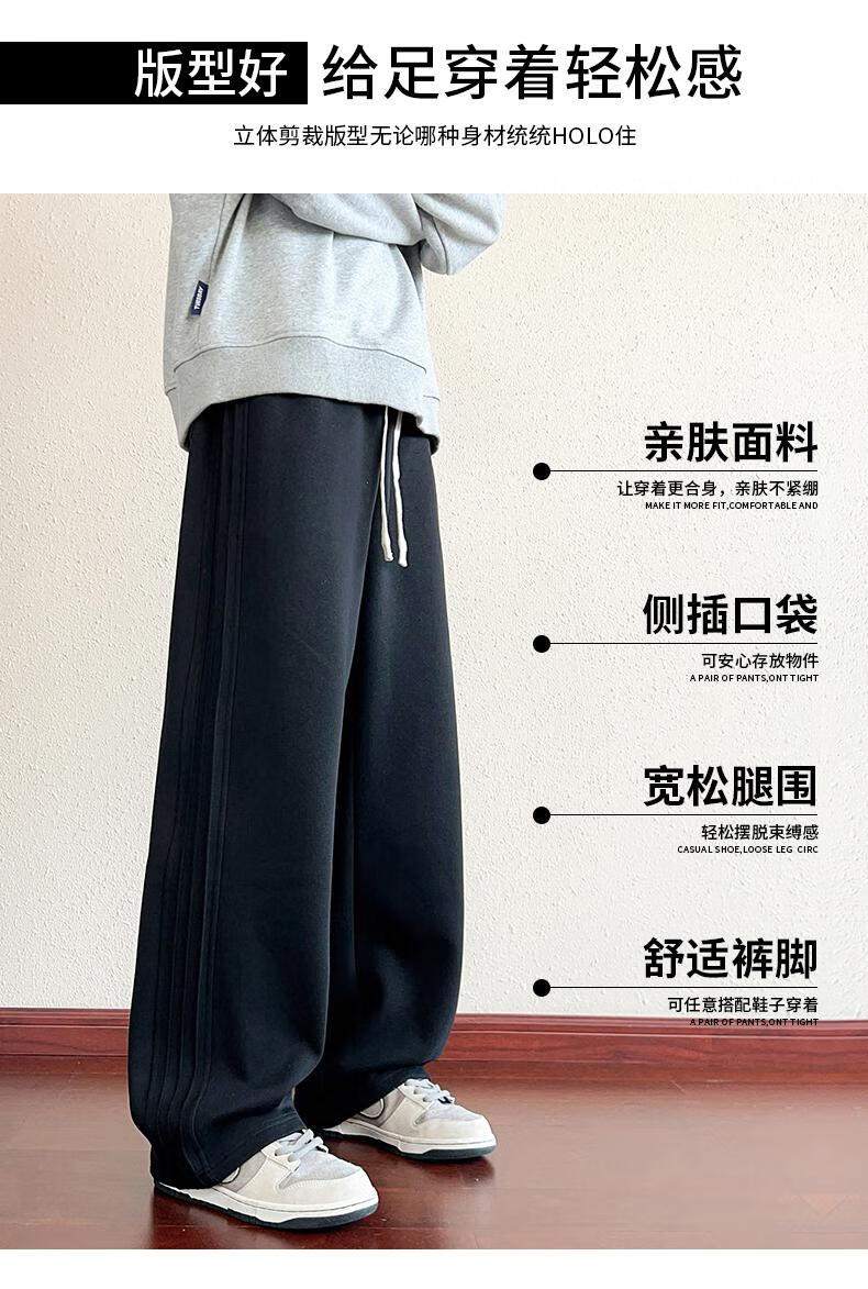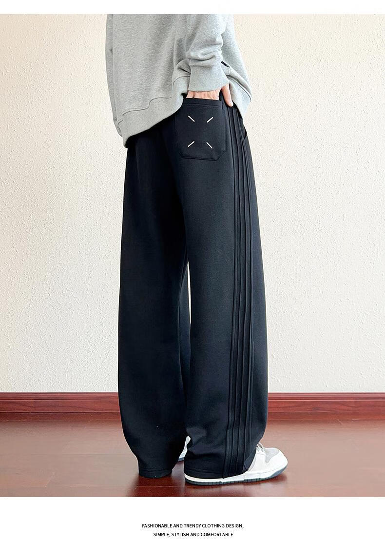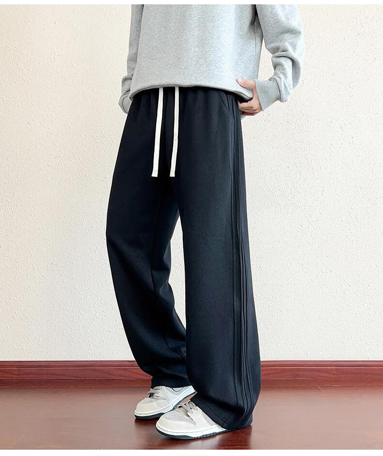 MiiOW American Heavy Black Casual Sweatpants Men's Autumn 2025 New Loose Straight Sports Pants Boys Pants Black M