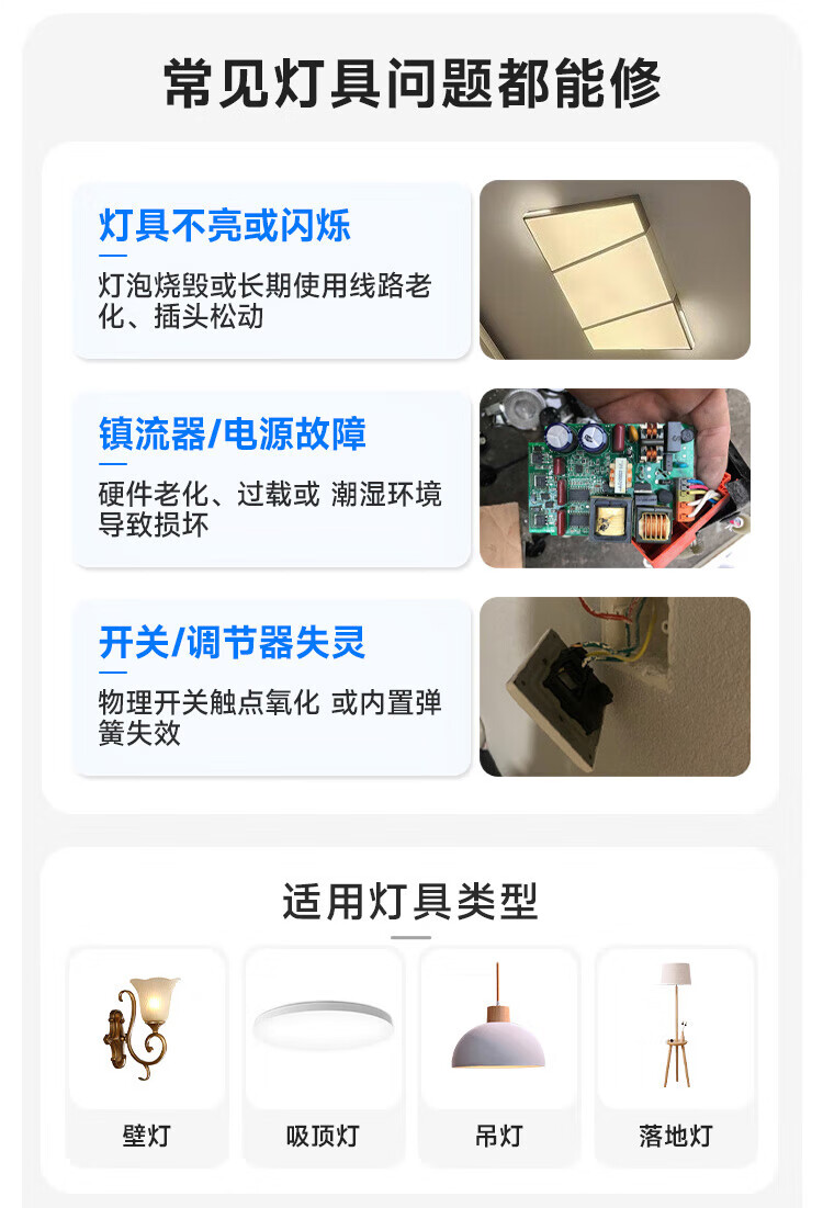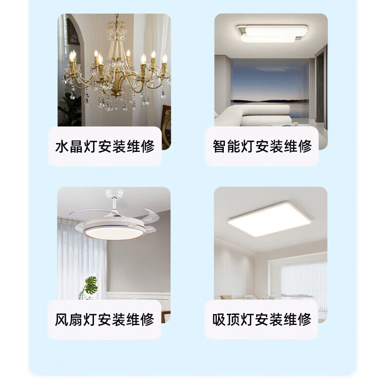 Yujian Kuaiyun Repair Lighting Installation and Repair Services LED Downlights, Crystal Lamps and Chandeliers Flickering and Not Lighting Detection and Repairs Lighting Repair Services Please consult customer service before placing an order (prepayment)