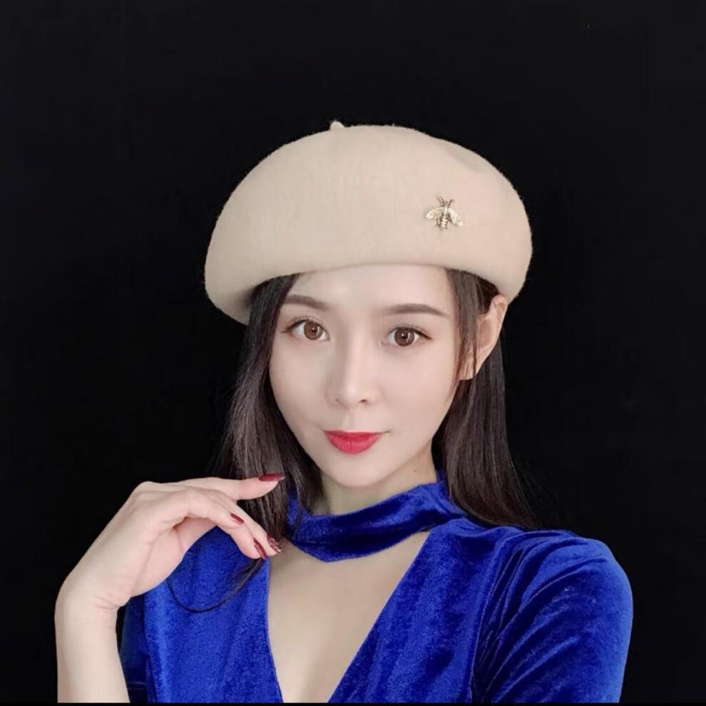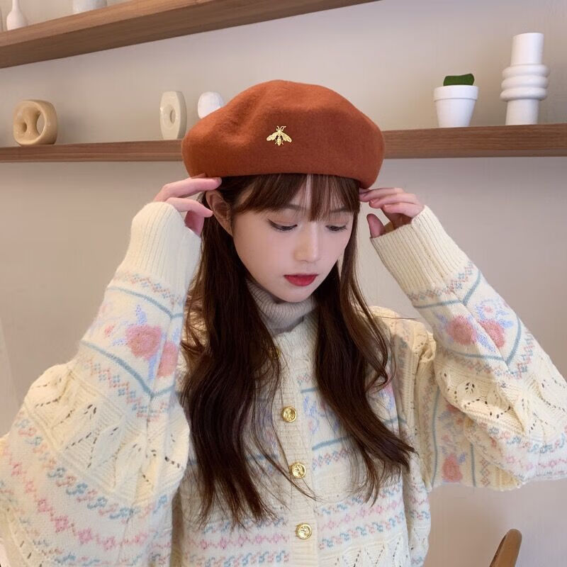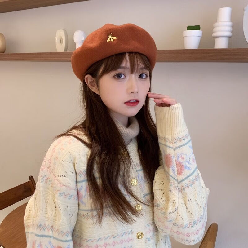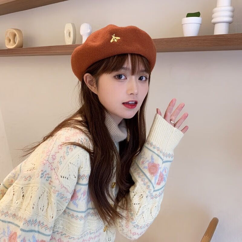 Bisi Sheep thickened woolen beret women's autumn and winter Korean version Japanese literary versatile painter's octagonal hat British retro trend caramel hairpin