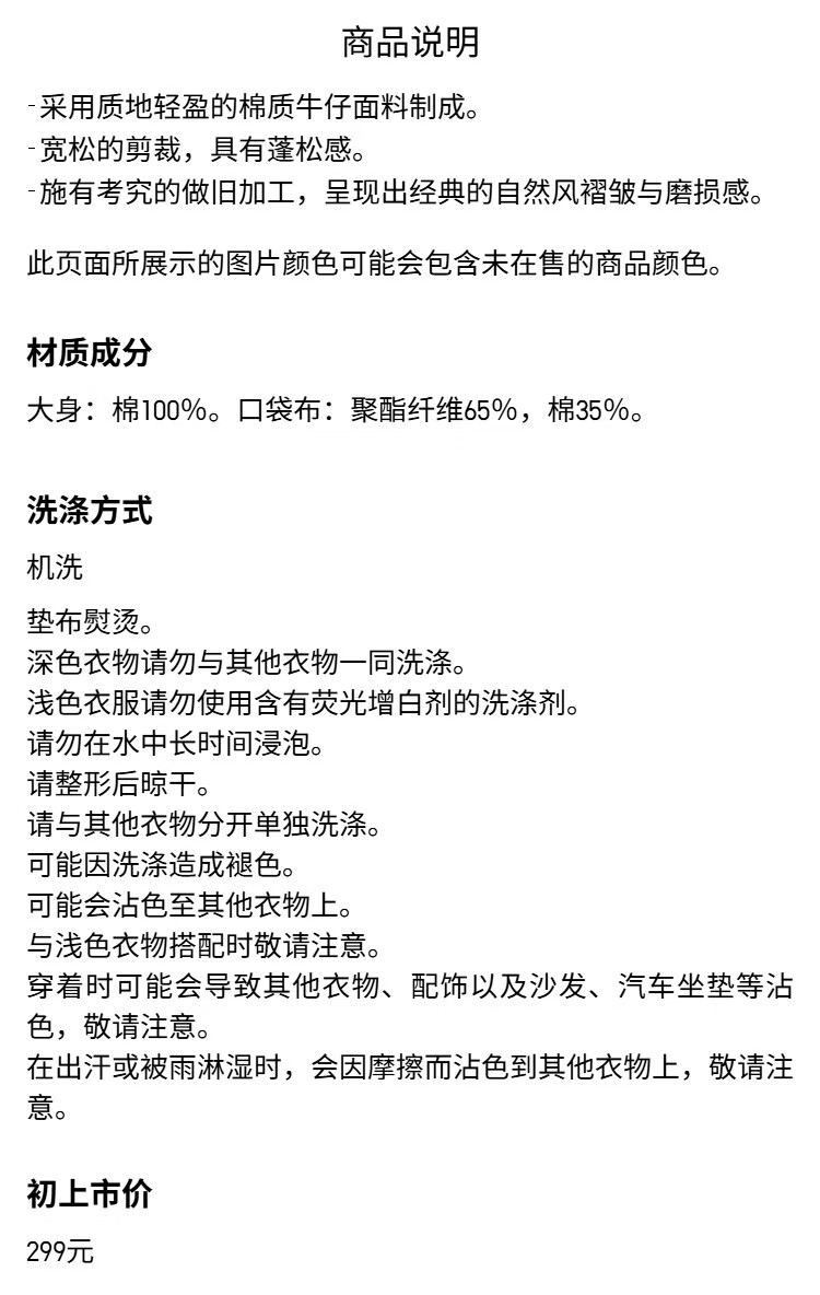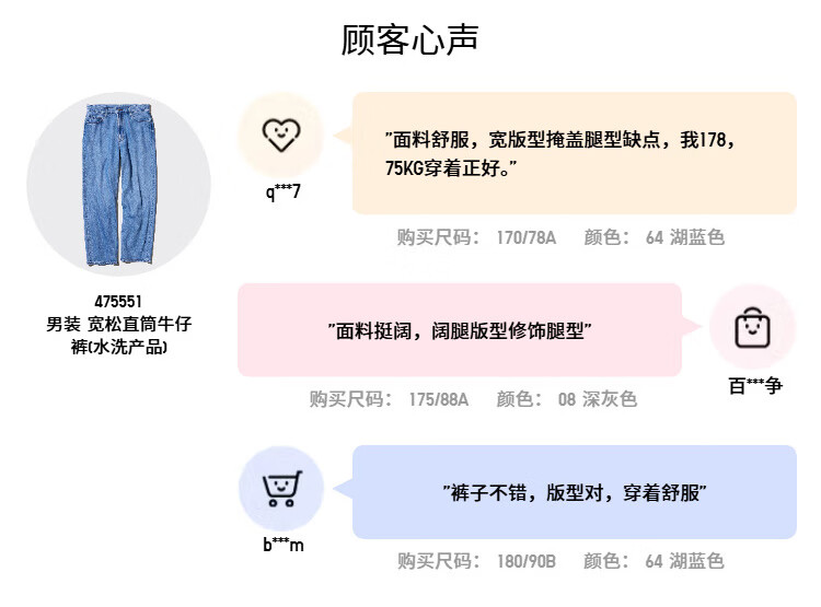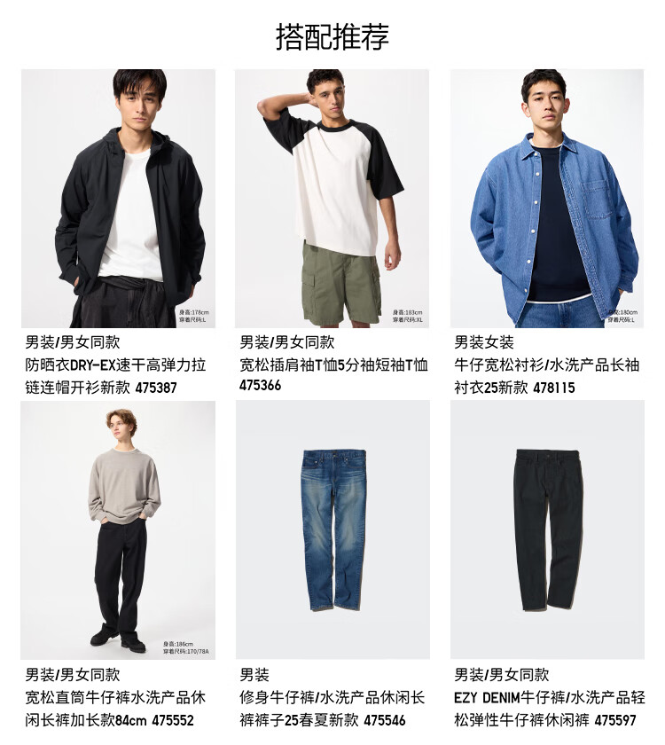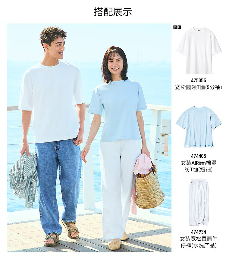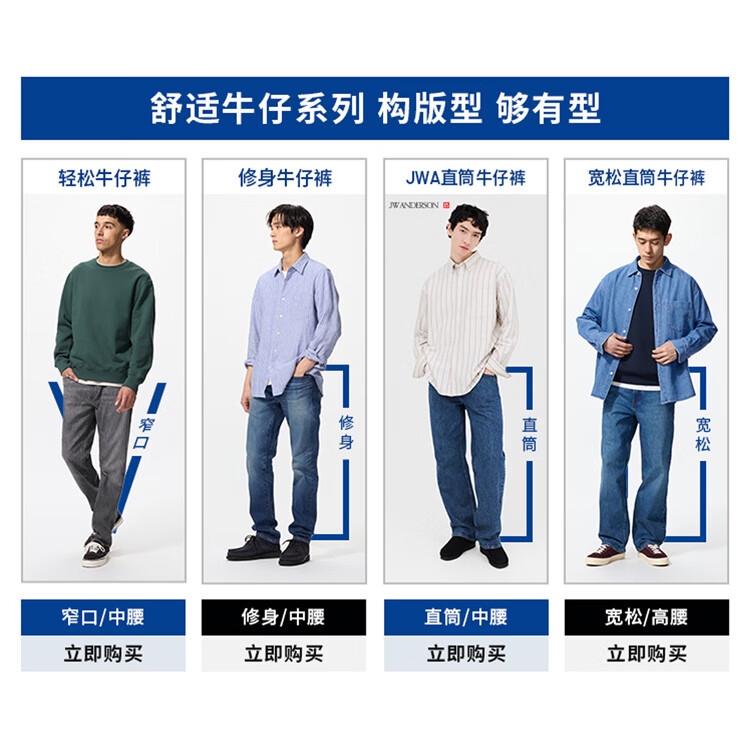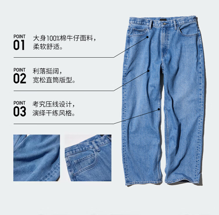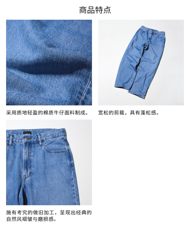 优衣库男装女装宽松直筒牛仔裤/水洗产品475551 64 湖蓝色 38 /180/96B