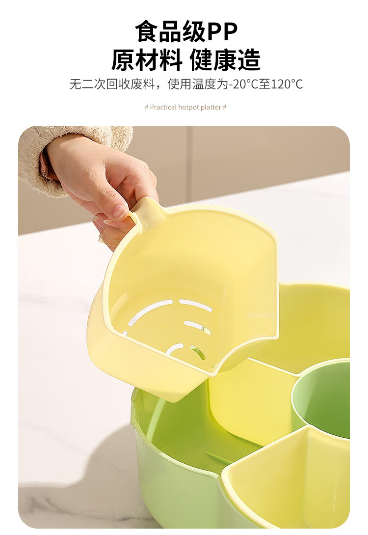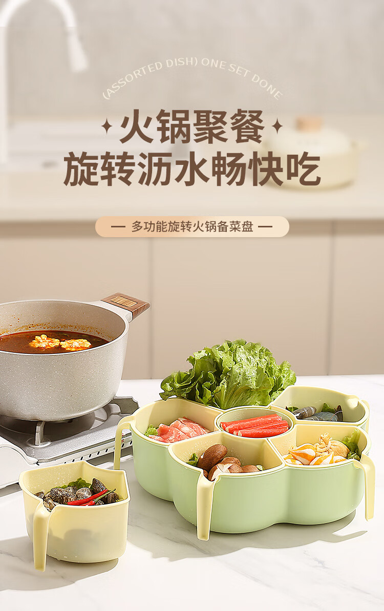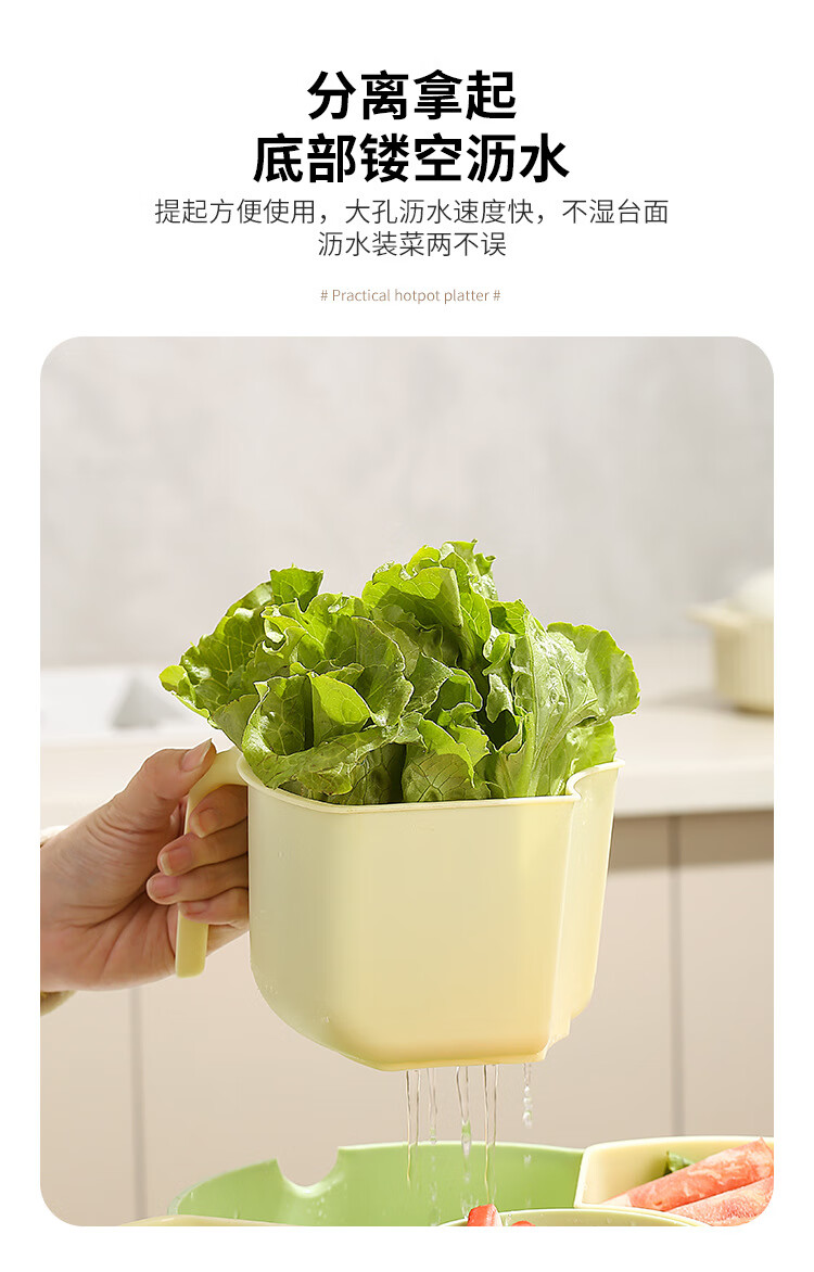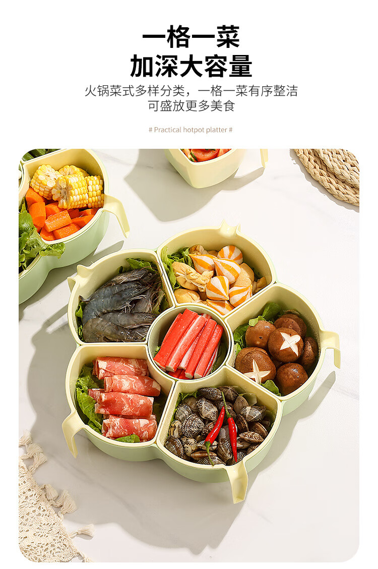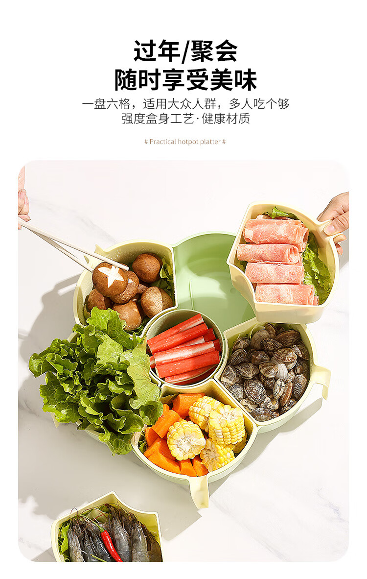 Hot pot side dishes, rotating drain basket, vegetable platter, cutlery, ingredient compartment set, household food preparation plate, handle six-compartment hot pot platter - Menglu