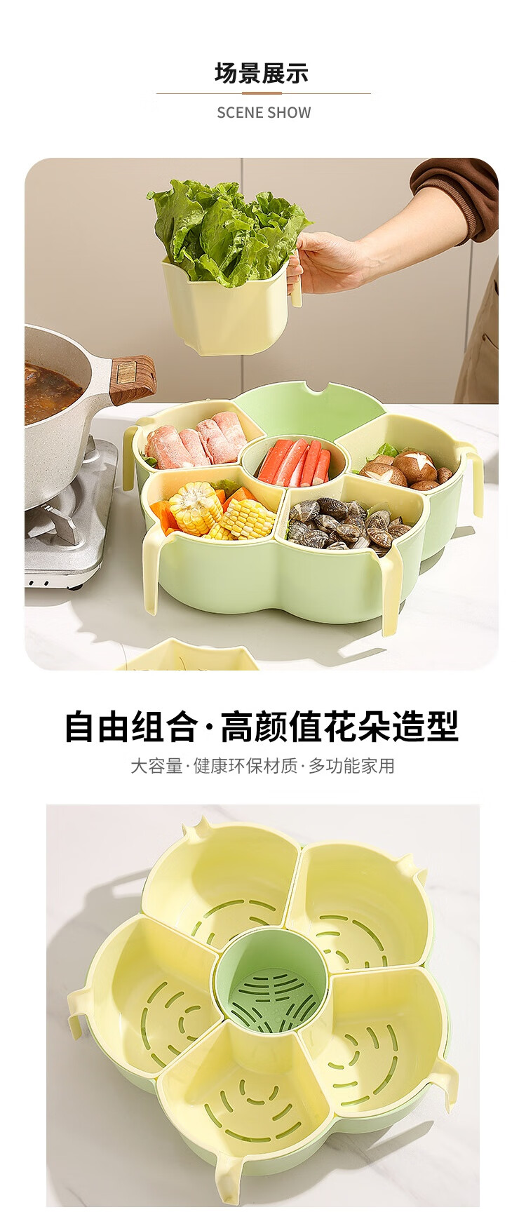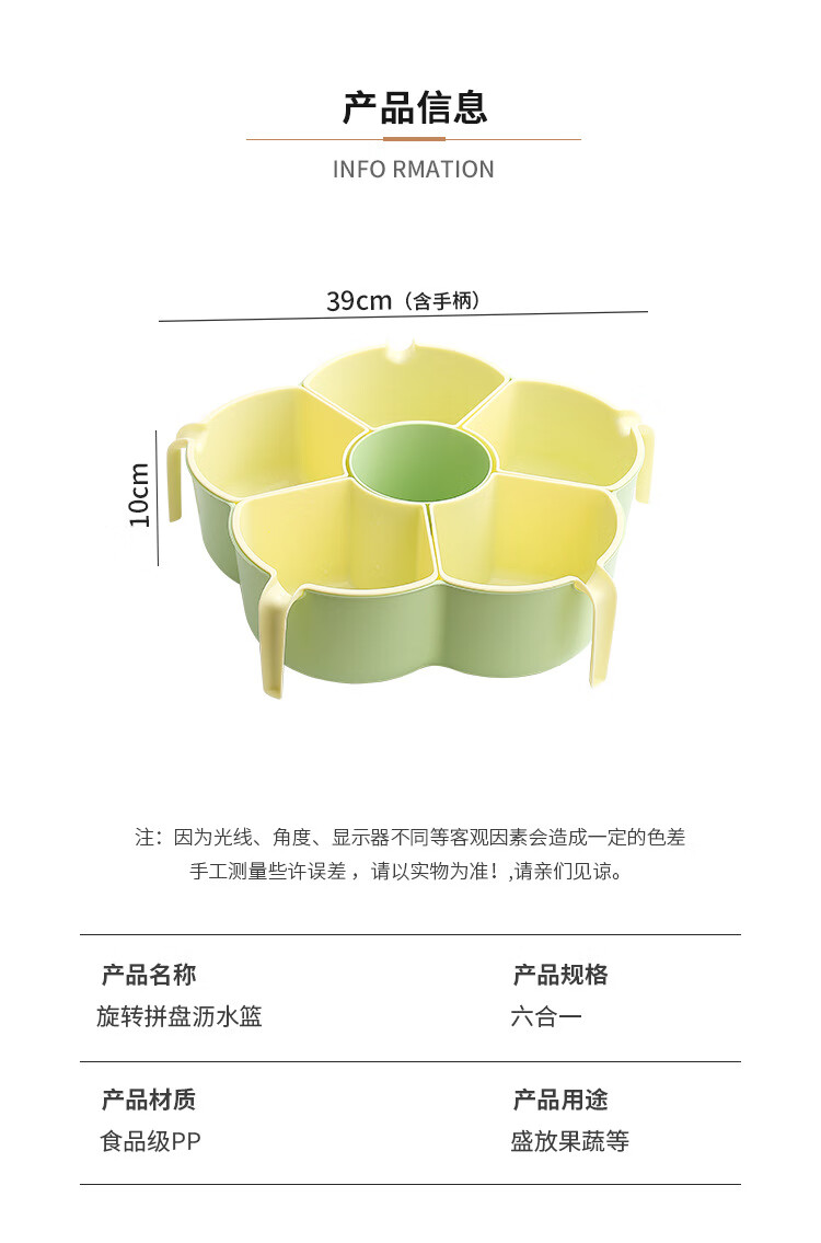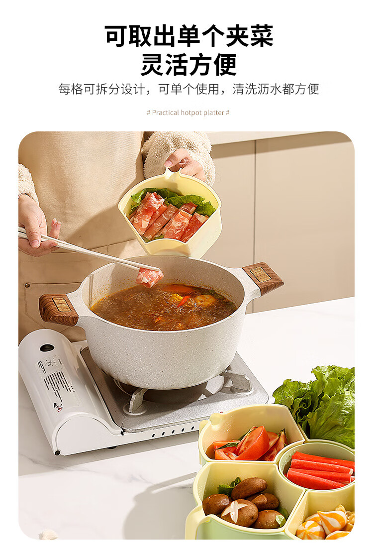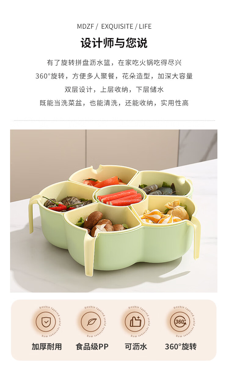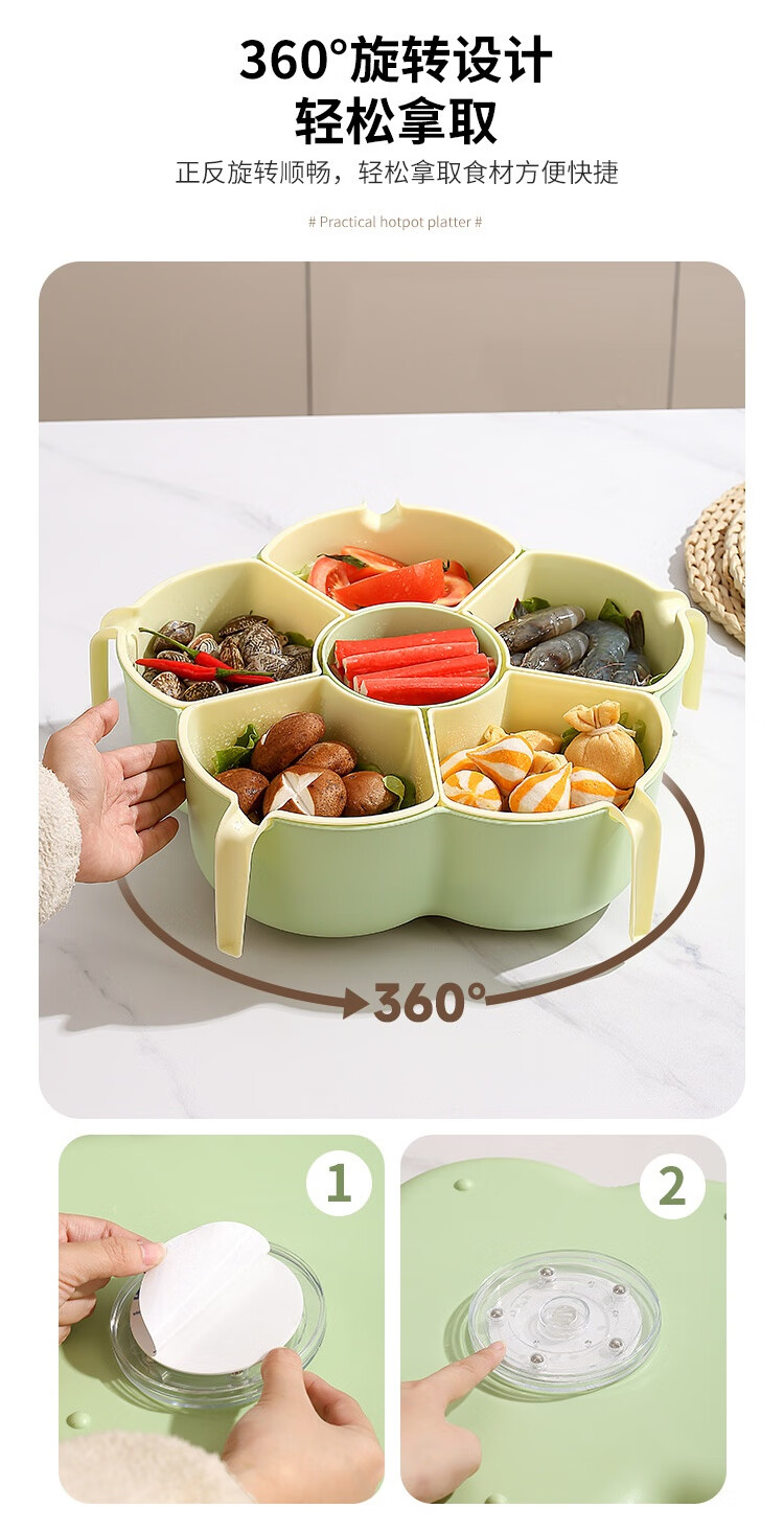 Hot pot side dishes, rotating drain basket, vegetable platter, cutlery, ingredient compartment set, household food preparation plate, handle six-compartment hot pot platter - Menglu