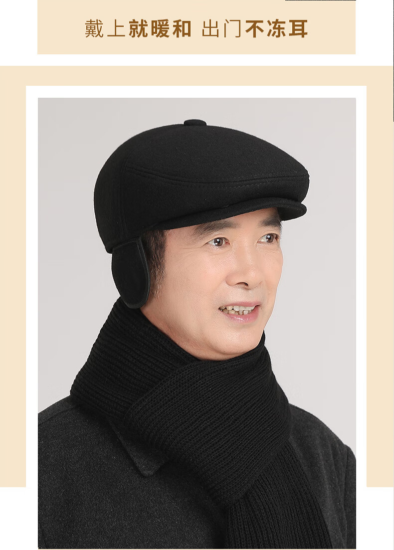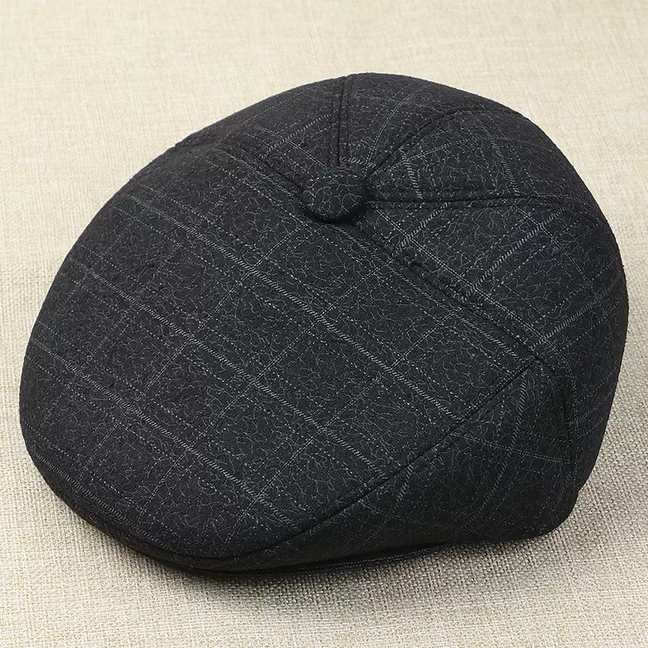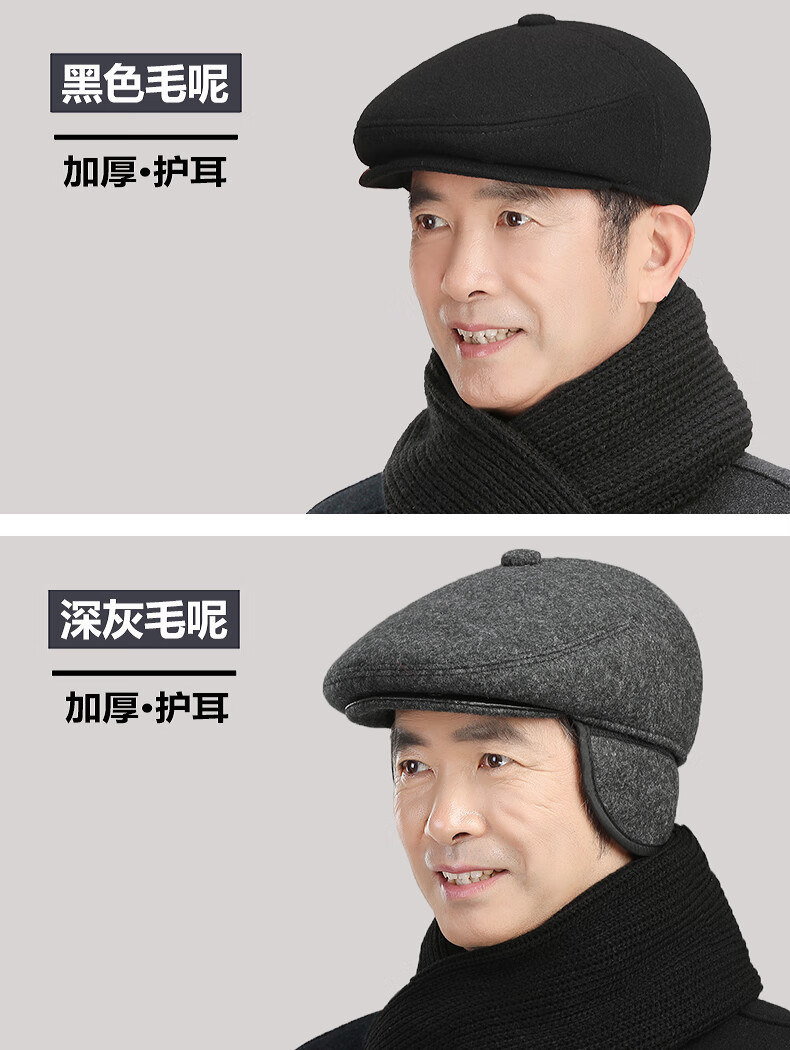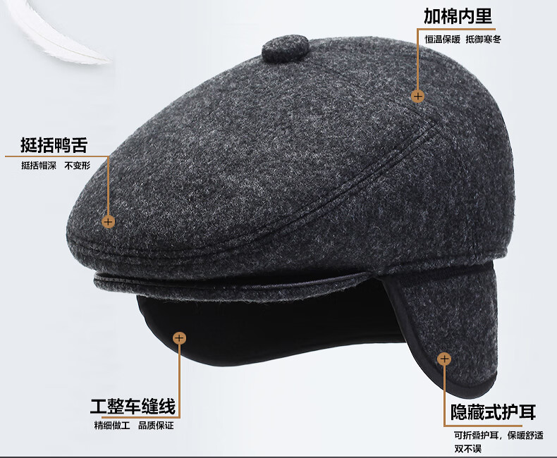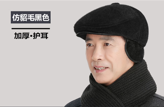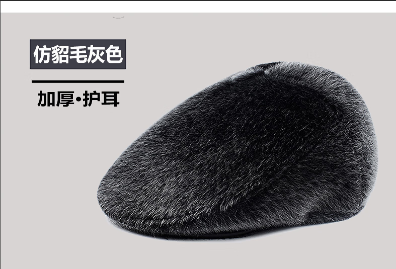 Middle-aged and elderly mink woolen men's autumn and winter outdoor peaked caps with velvet ear protection cotton hats for the elderly, twill gray, thickened ear protection