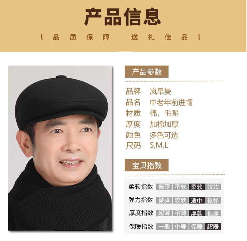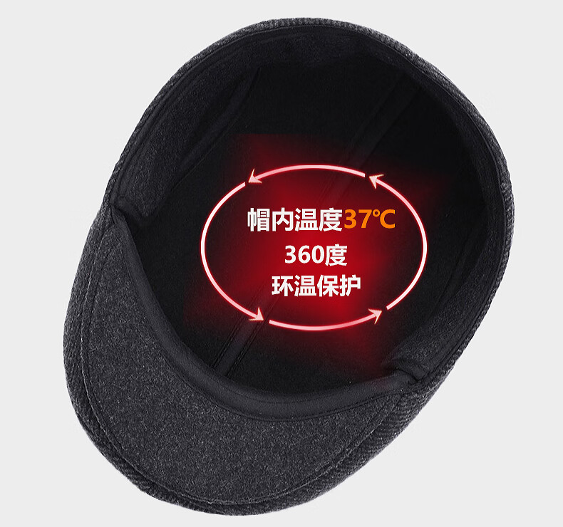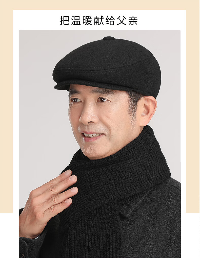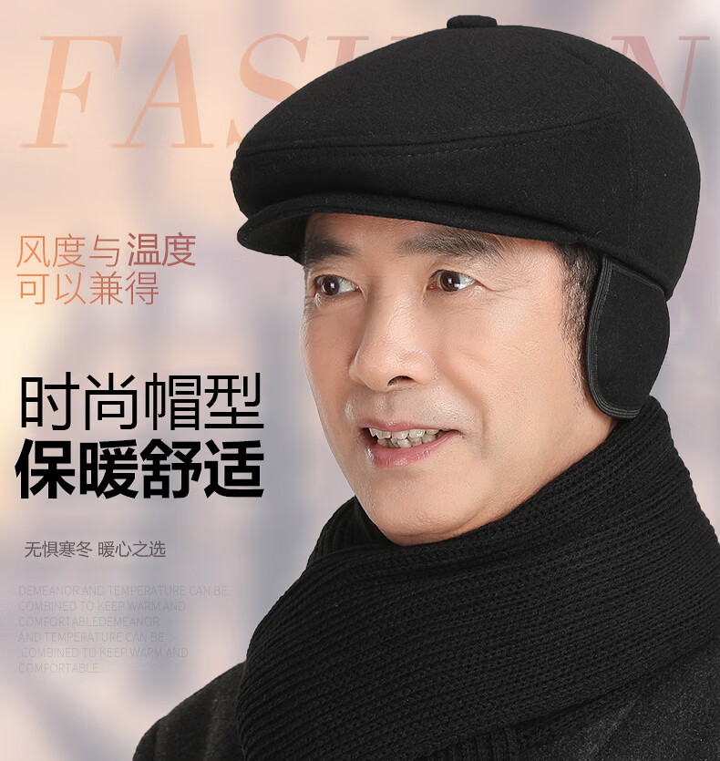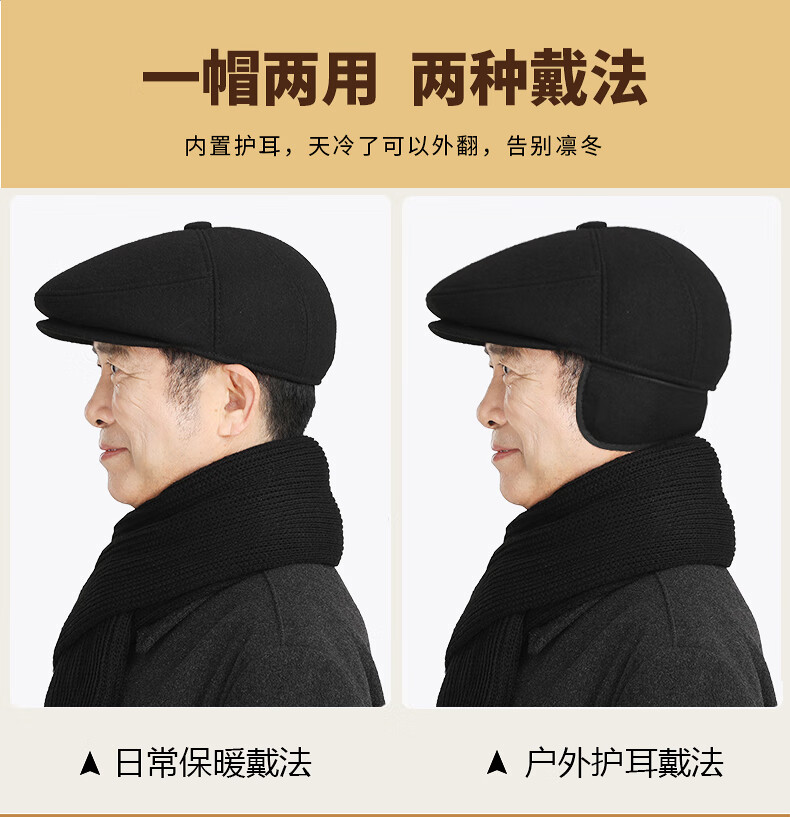 Middle-aged and elderly mink woolen men's autumn and winter outdoor peaked caps with velvet ear protection cotton hats for the elderly, twill gray, thickened ear protection