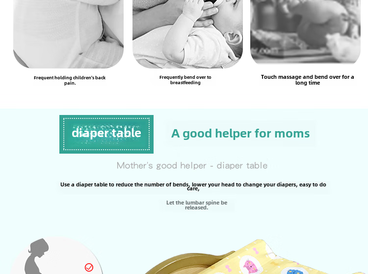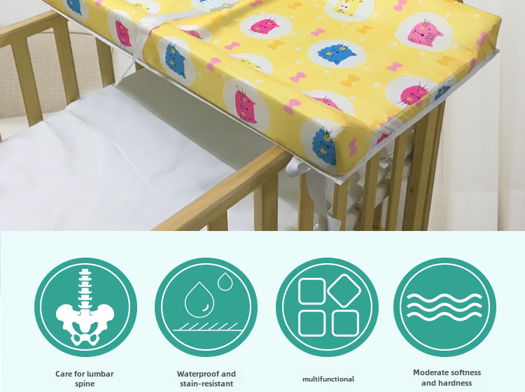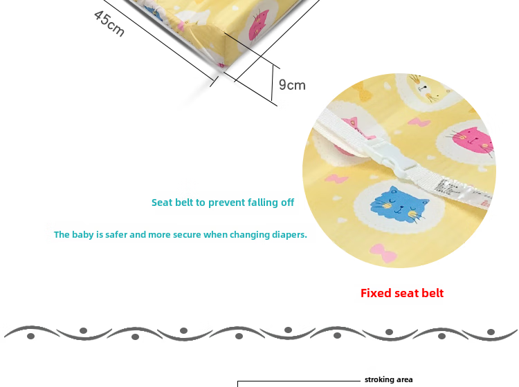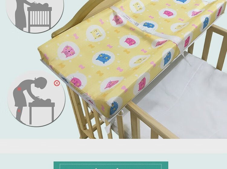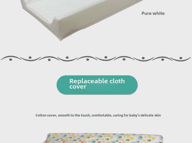 Baby changing pad table touch massage table baby changing pad diaper table waterproof diaper left and right protective white cloth pad + striped cloth cover can be suspended 80x43cm