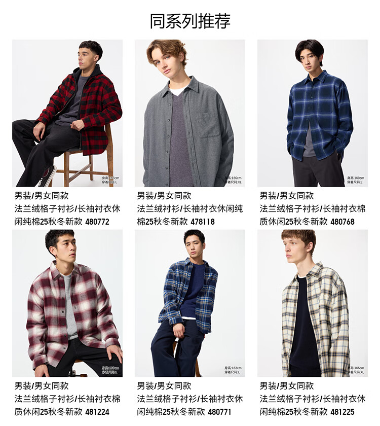 Uniqlo Men's and Women's Flannel Plaid Shirt/Long Sleeve Shirt Casual and Versatile 470188 09 Black XL