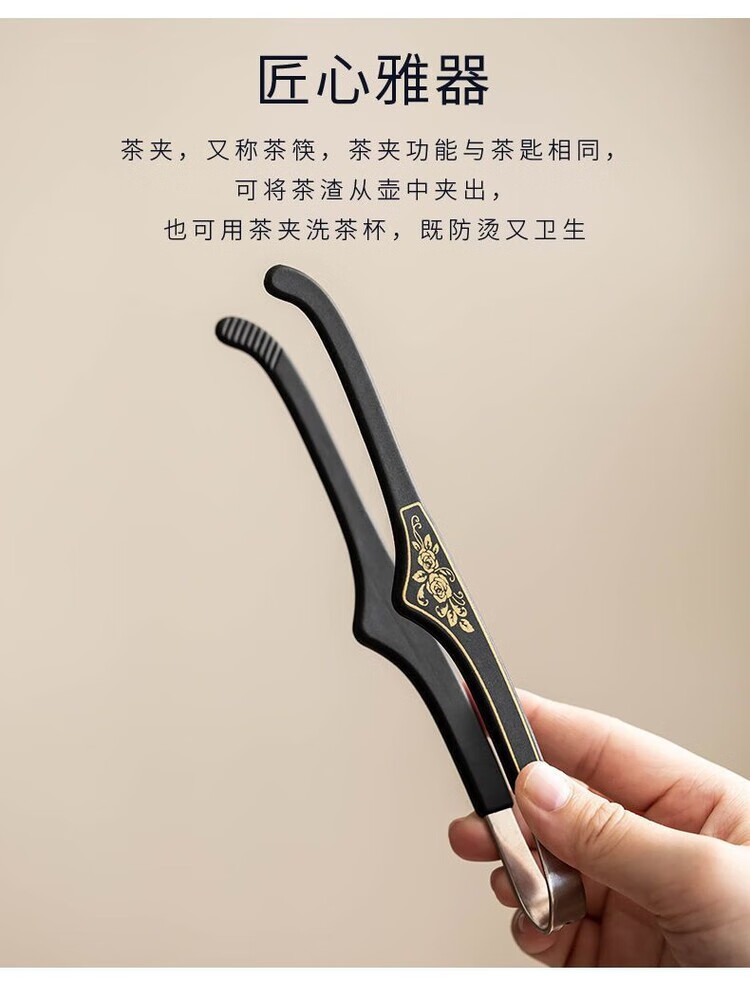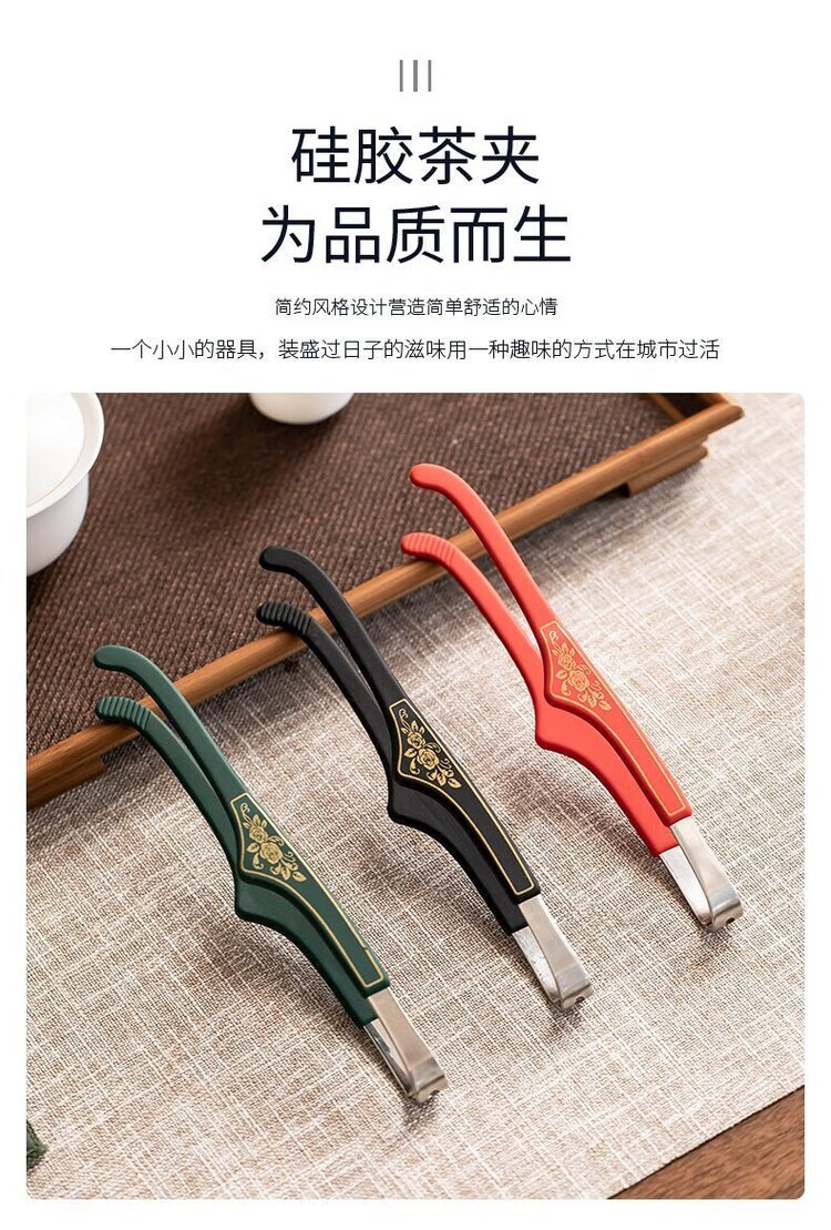 Meikejie non-slip cup clip tea making tool single high-end silicone tea clip Kung Fu tea set accessories tea ceremony tea cup tea tweezers black - silicone stainless steel tea clip