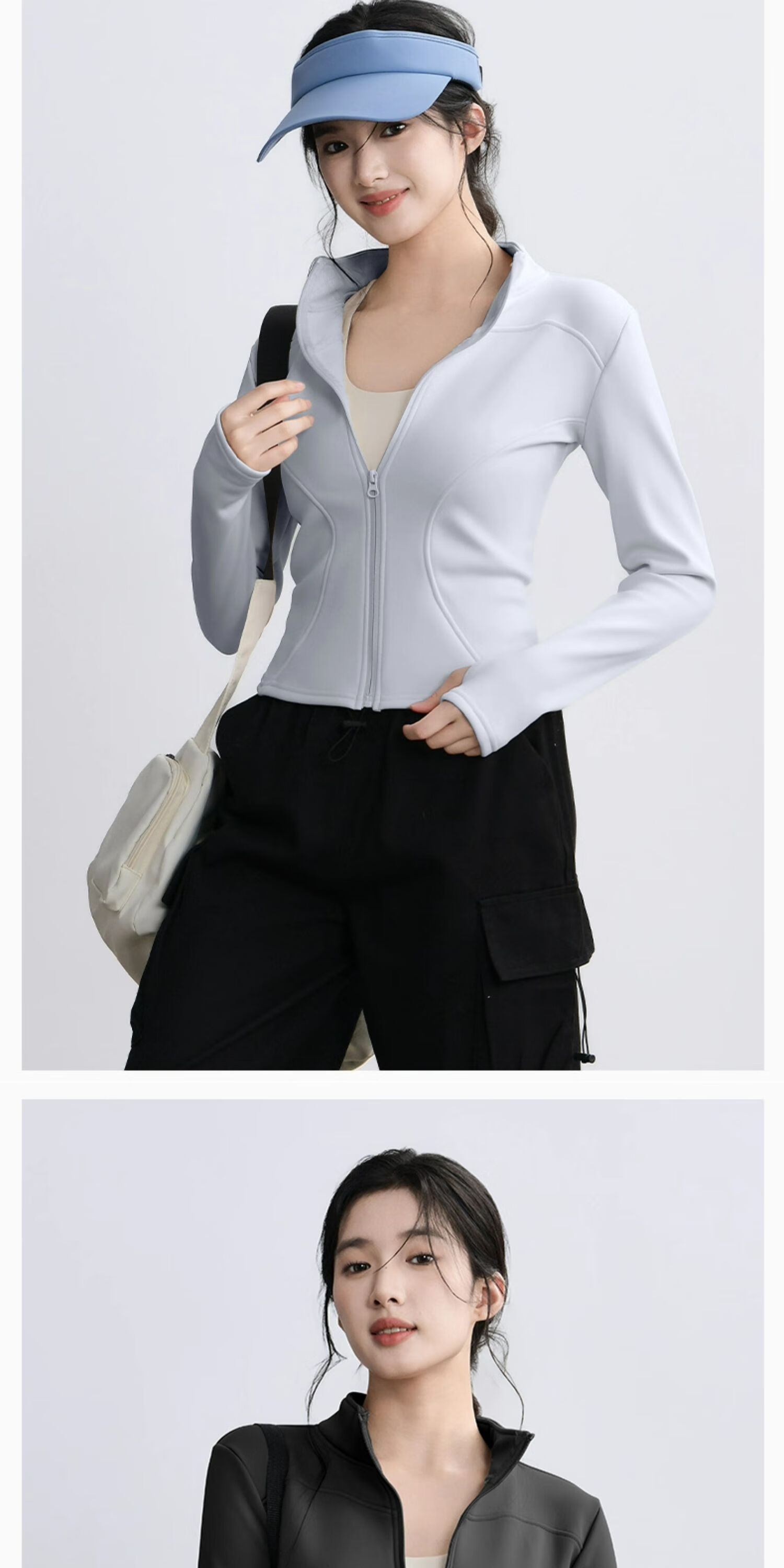 Yoga wear women's jacket 2025 new autumn and winter velvet thickened Pilates training fitness top morning running exercise starch blue M