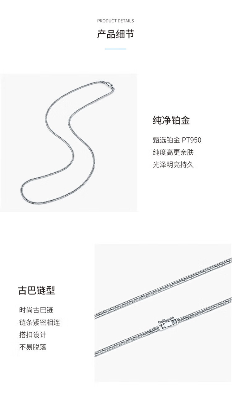 Safir platinum necklace for men PT950 platinum Cuban chain, fashionable and elegant platinum chain as a gift for boyfriend, about 17.10 grams, about 54cm