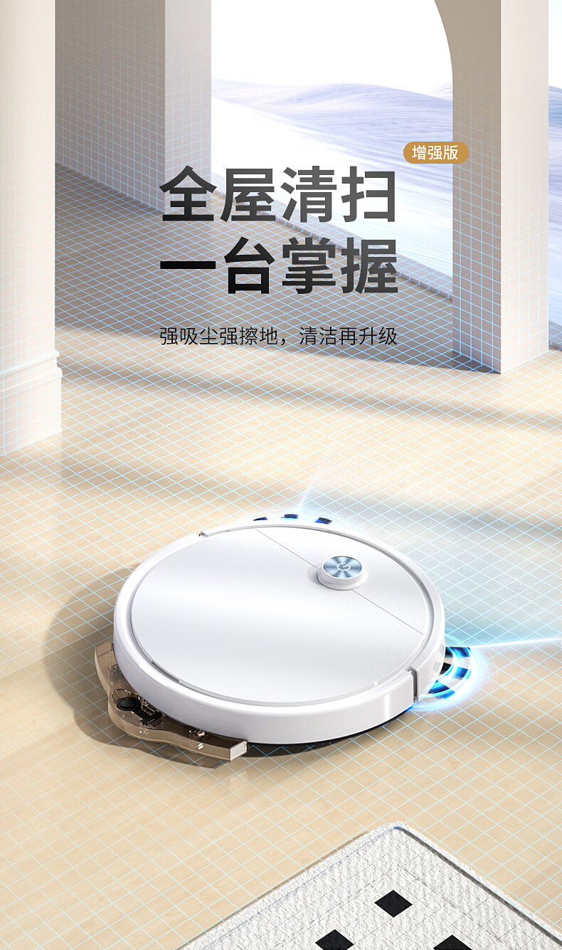 Household smart sweeping robot with high suction, integrated sweeping, suctioning and mopping, anti-falling gyroscope, automatic recharging floor scrubber SRX32, elegant white, gyroscope + integrated sweeping, suctioning and mopping + anti-falling + water tank