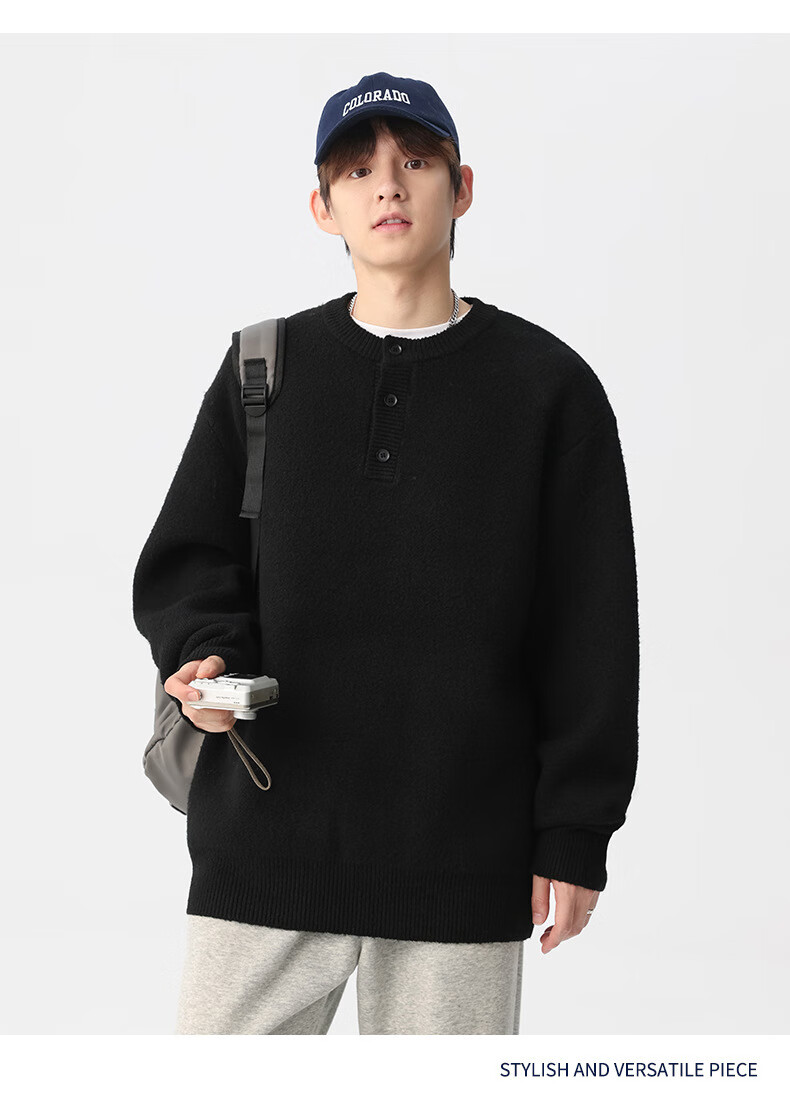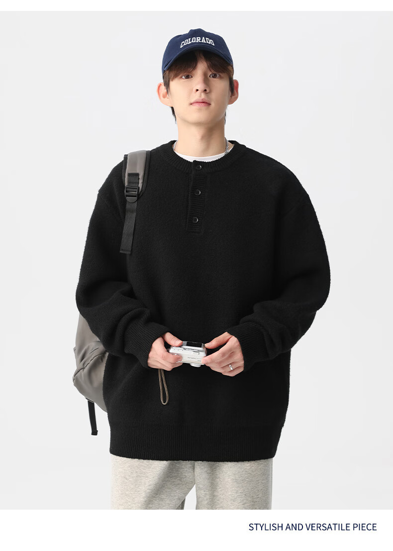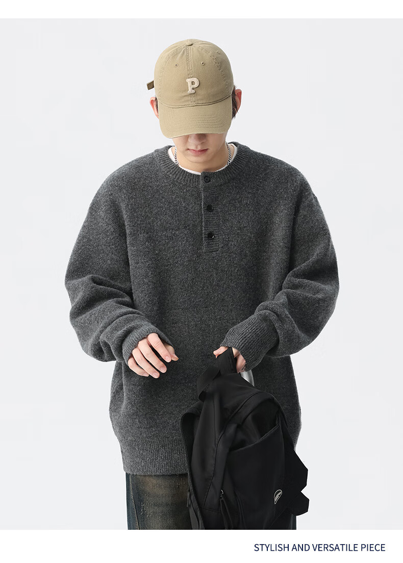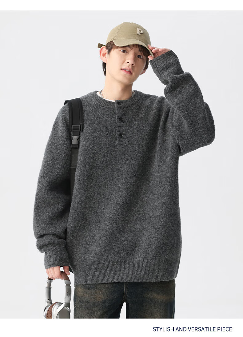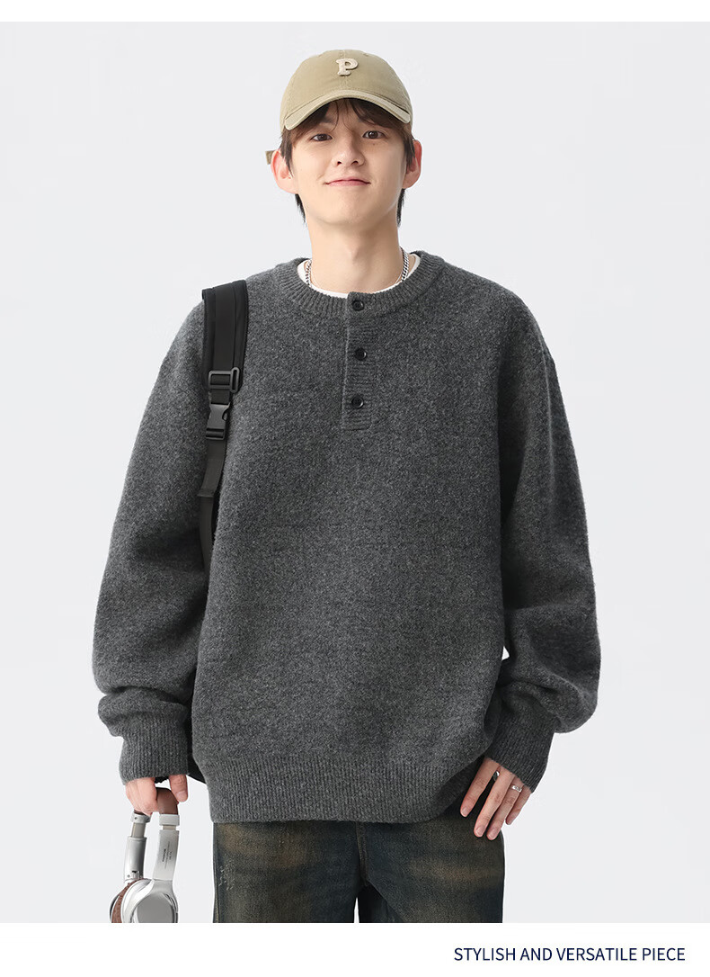 Dances with Wolves (DANCING WOLVES) xxbro men's #Henry collar thickened winter lazy style knitted inner sweater men's versatile loose bottoming shirt dark gray M
