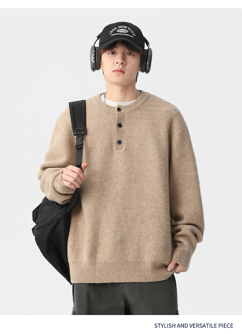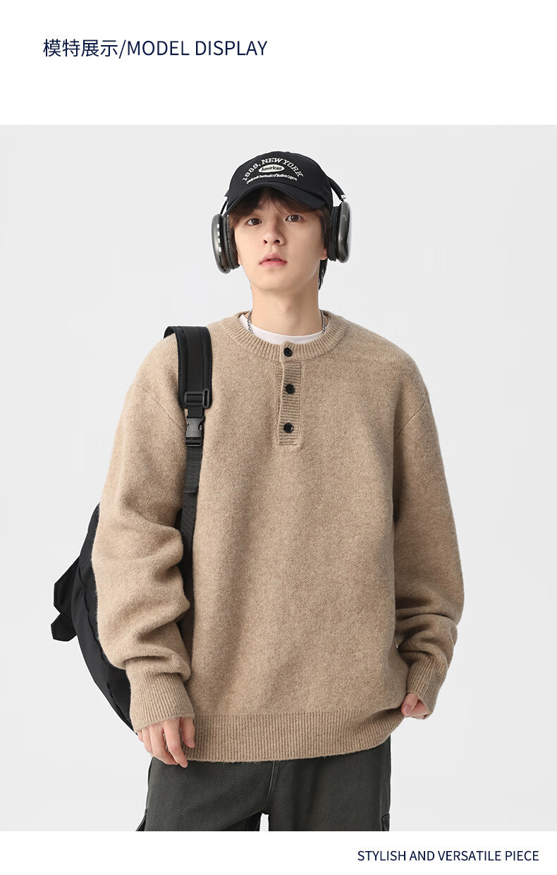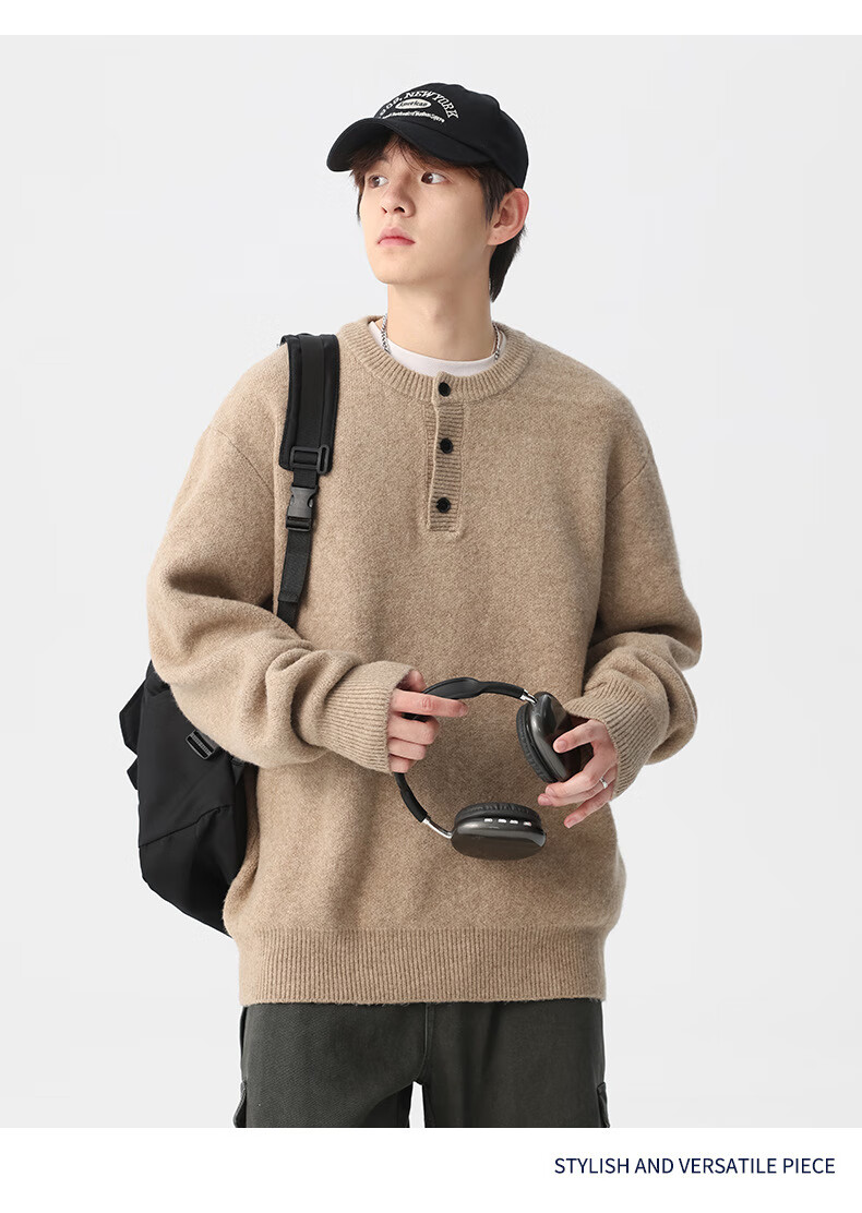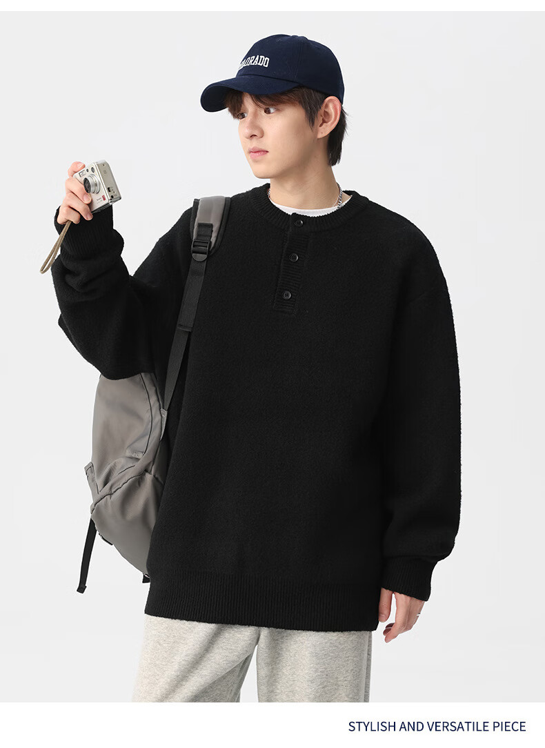 Dances with Wolves (DANCING WOLVES) xxbro men's #Henry collar thickened winter lazy style knitted inner sweater men's versatile loose bottoming shirt dark gray M