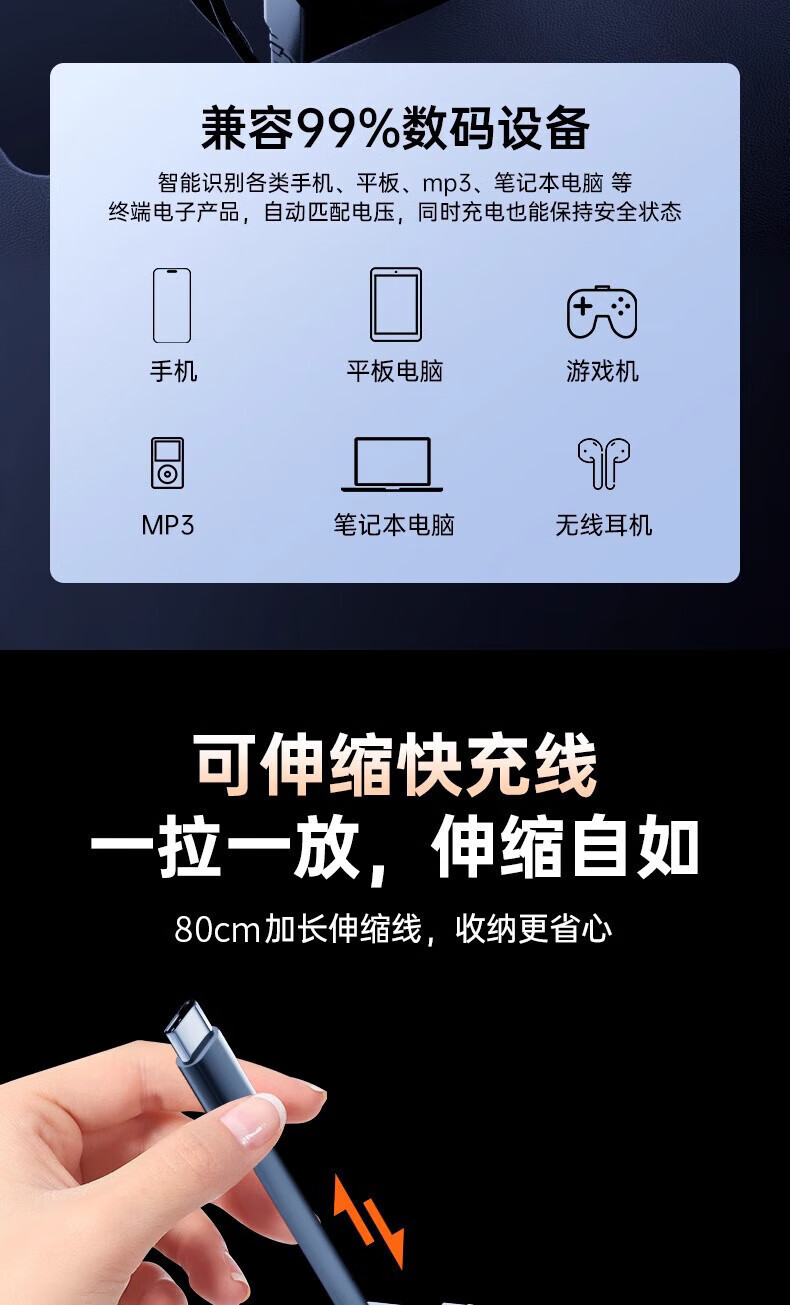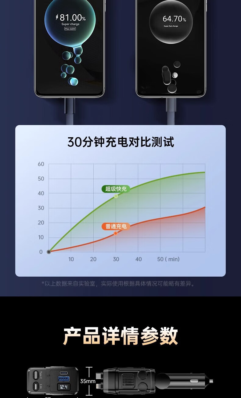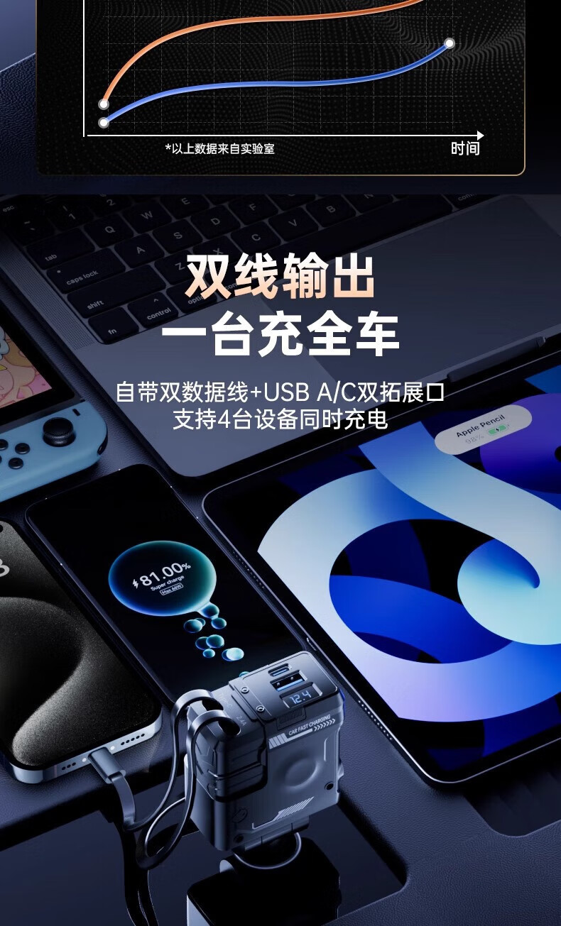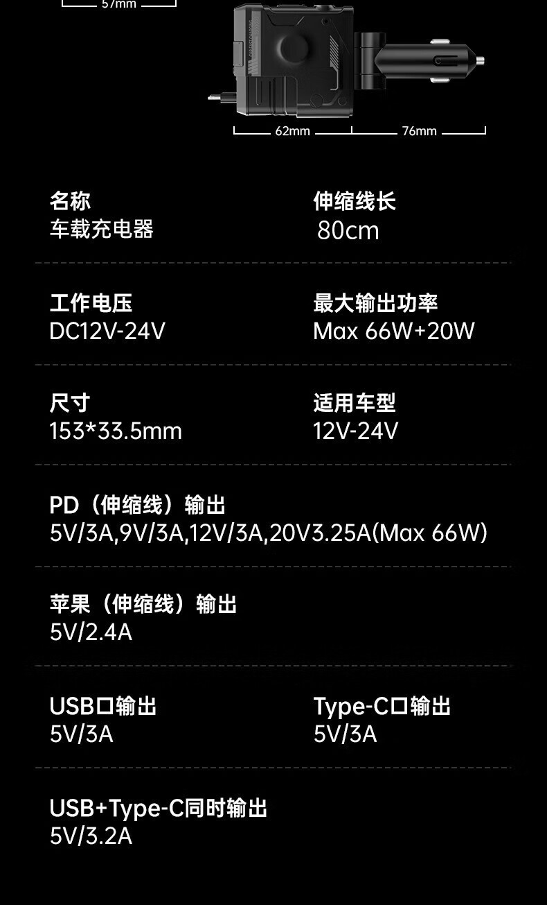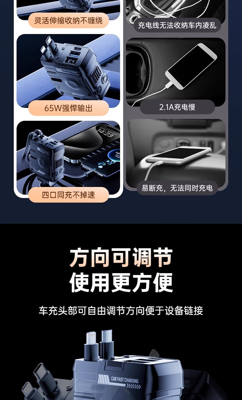 Mecha Retractable Cable Car Charger Car 120W Super Fast Charging One to Three Car Cigarette Lighter Flash Charging Car Charger Black 120W Fast Charging TYPE-C+ Apple Universal