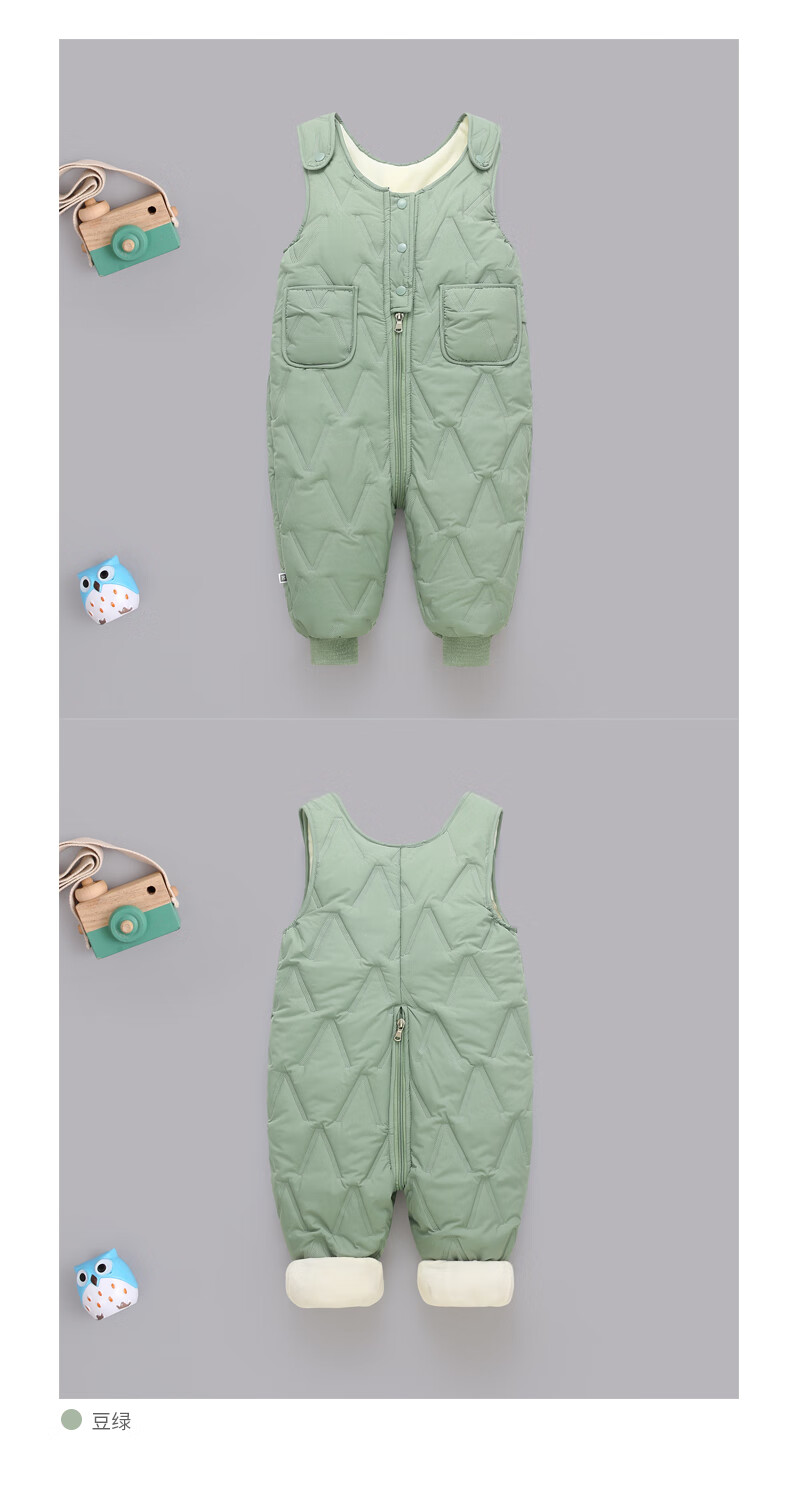 Children's overalls for boys and girls in autumn and winter all-in-one velvet cotton pants for babies with open stalls for children and infants thickened outer pants Bean Green 90 Height 75-85cm/weight 25Jin Jin is equal to within 0.5 kg