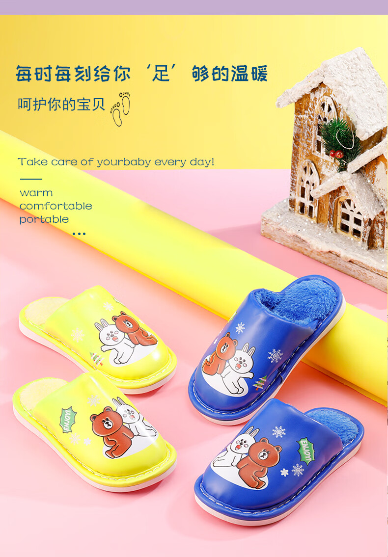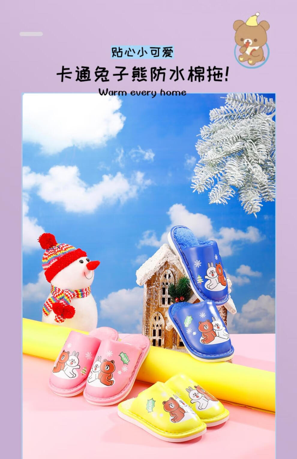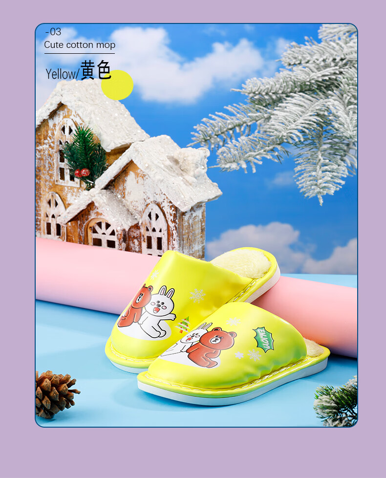 Yunyouli children's PU waterproof cotton mop non-slip cartoon parent-child style PU yellow size 26-27_inner length 16.5cm