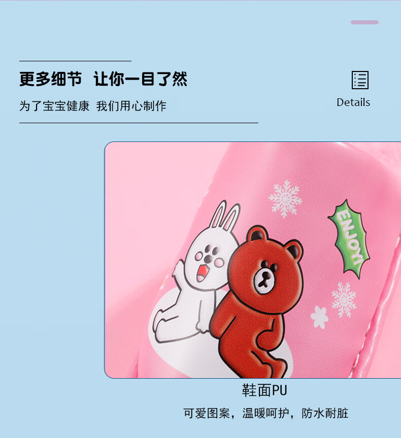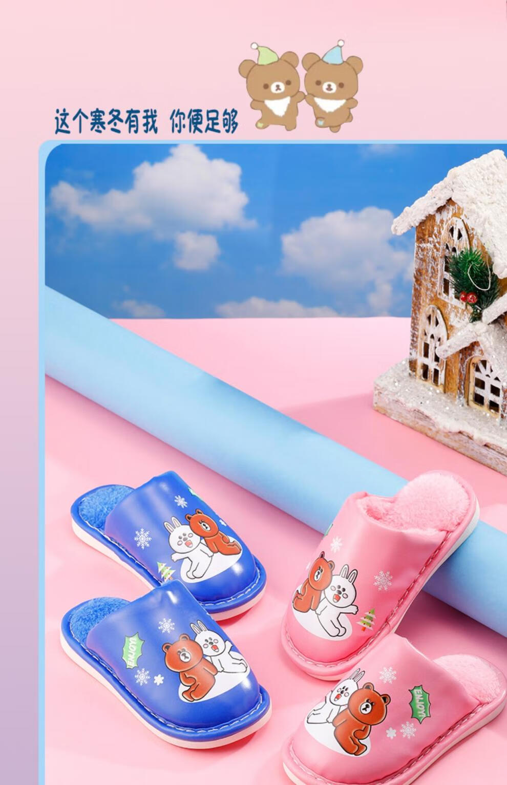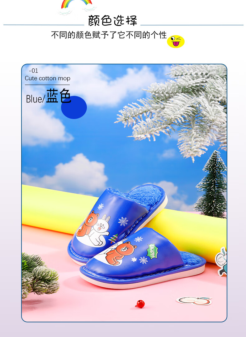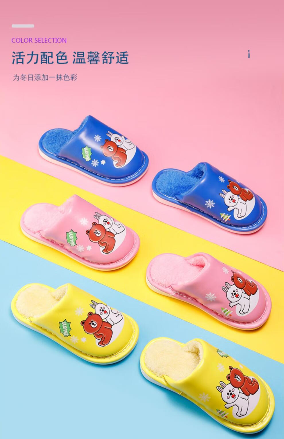 Yunyouli children's PU waterproof cotton mop non-slip cartoon parent-child style PU yellow size 26-27_inner length 16.5cm