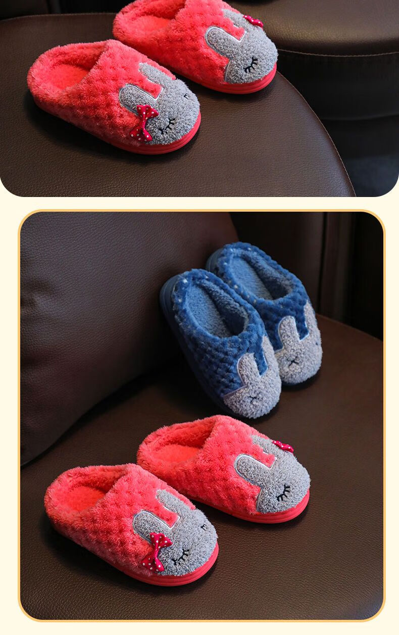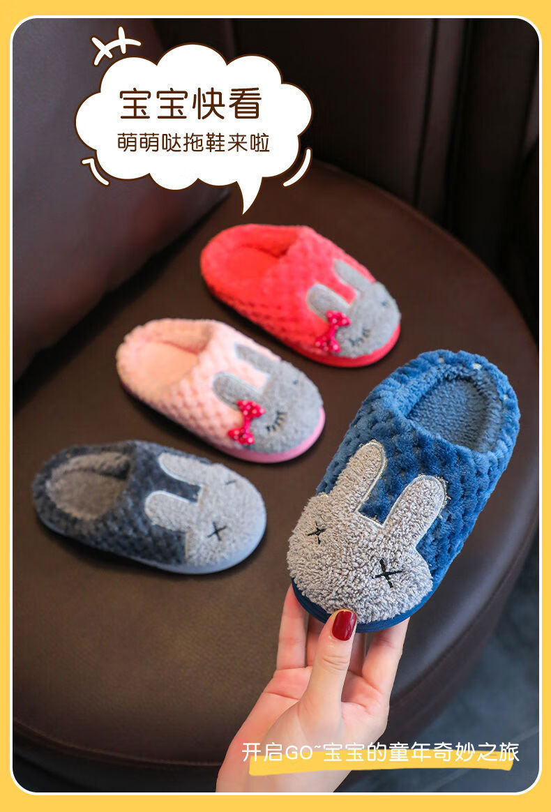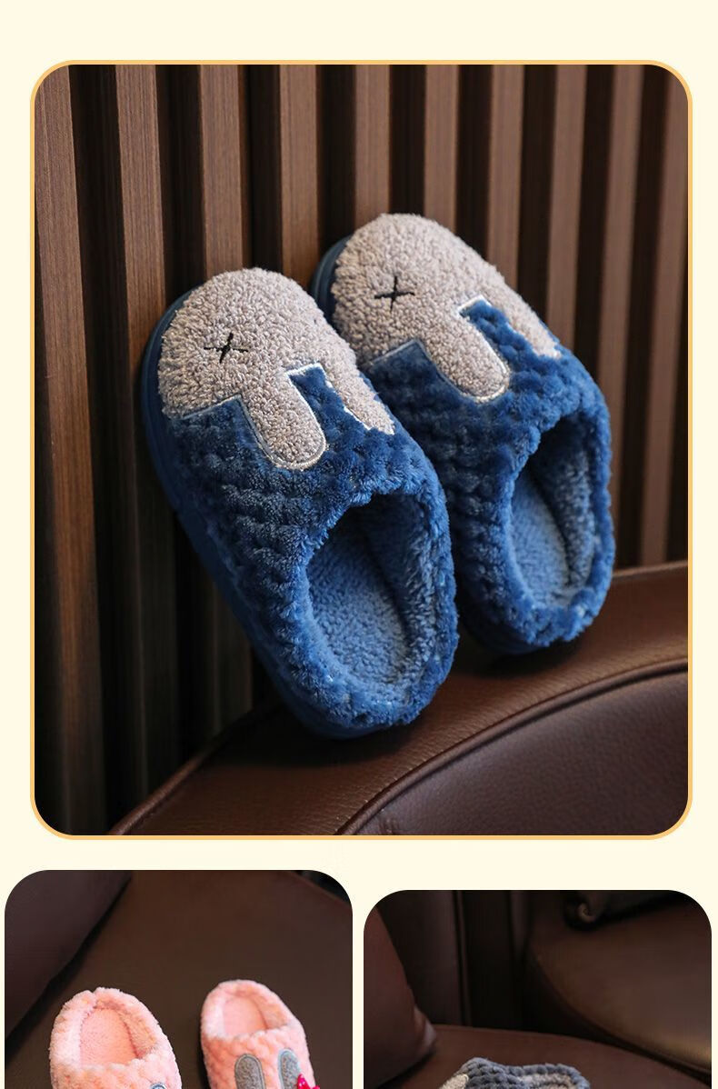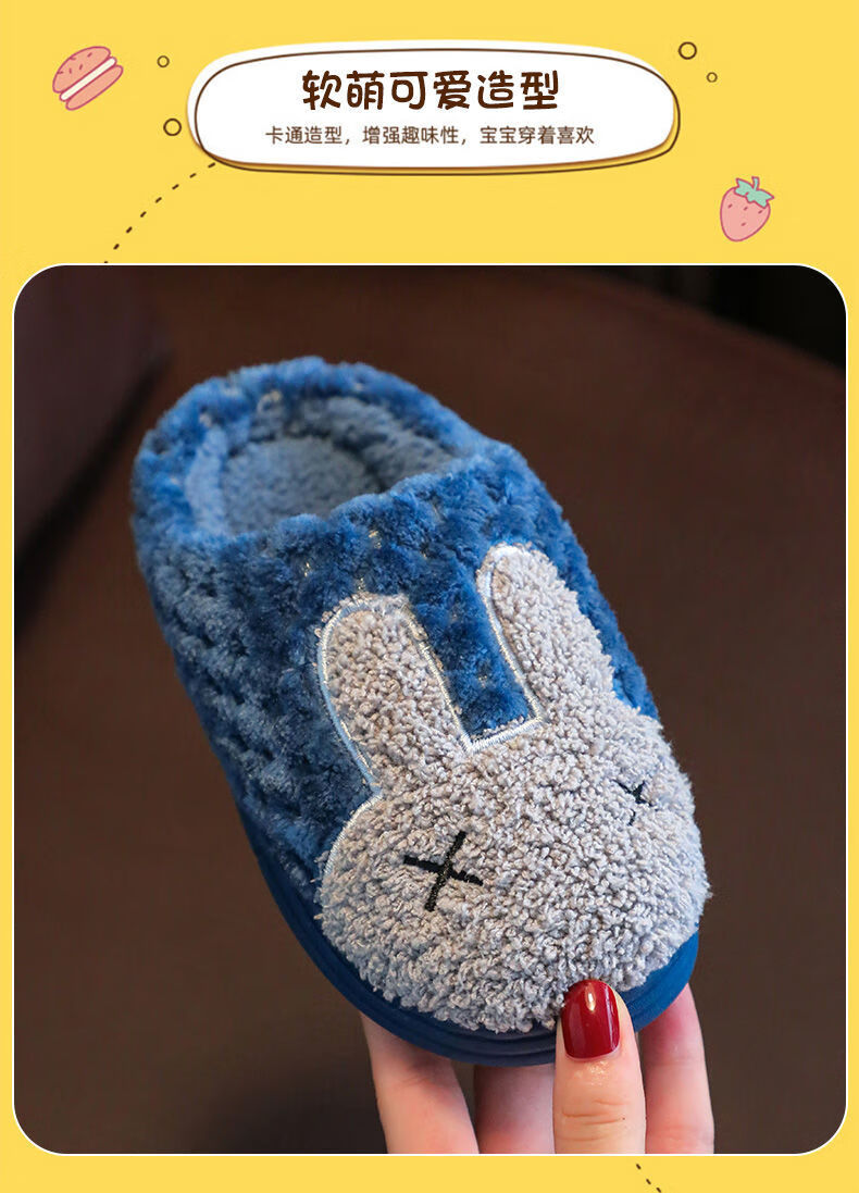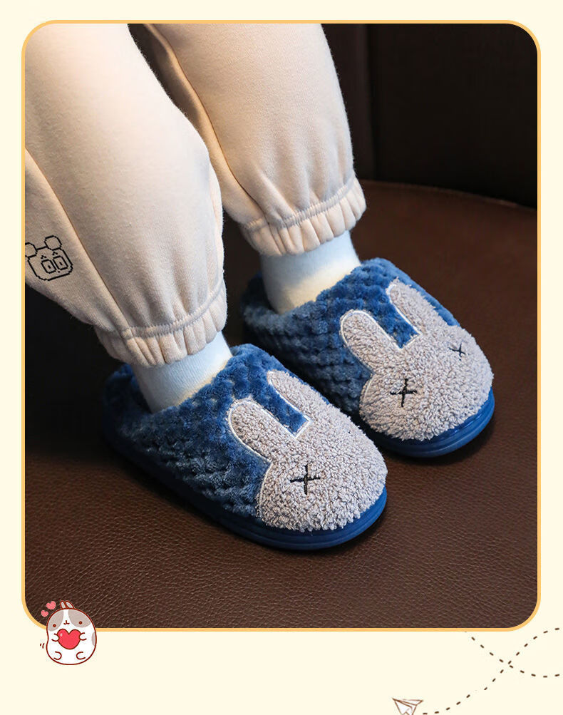 Yunyouli (yunyouli) children's cotton slippers winter style boys and girls non-slip soft bottom parent-child home shoes navy blue rabbit slippers 34_35 inner length 21.5cm9-10 years old