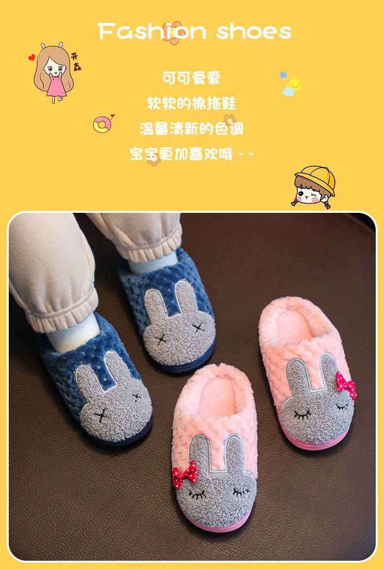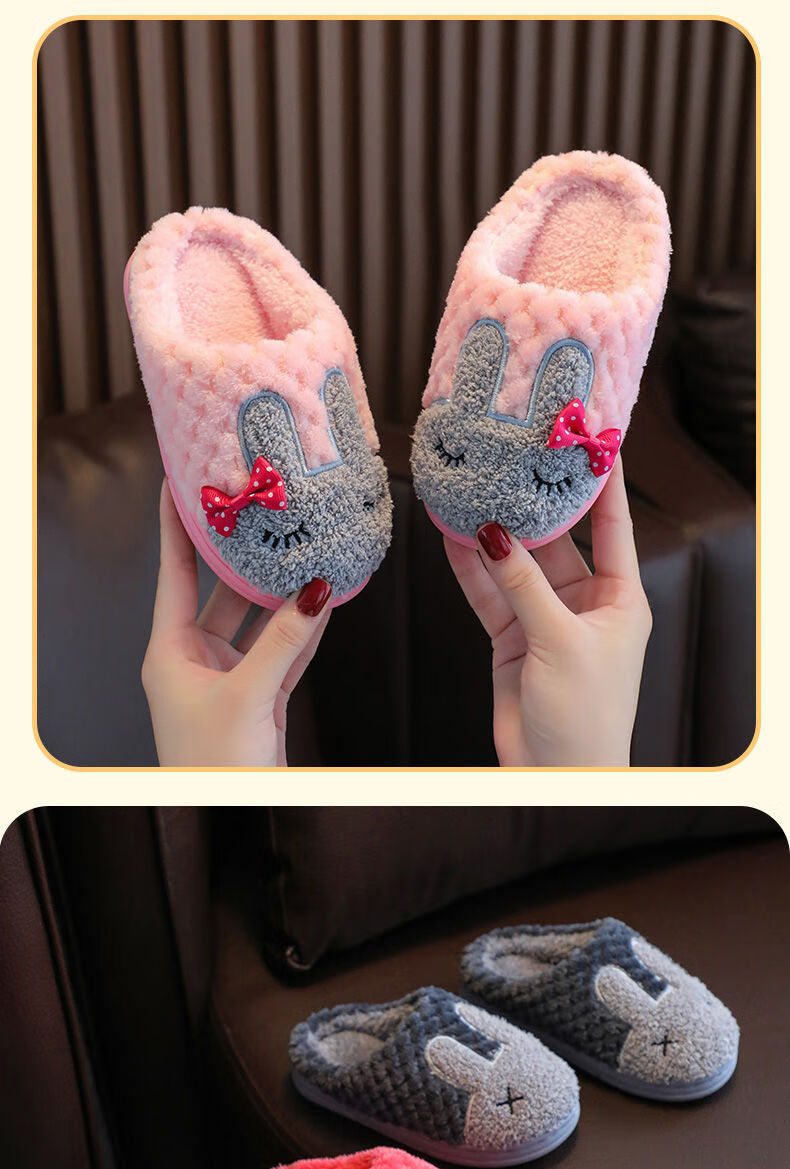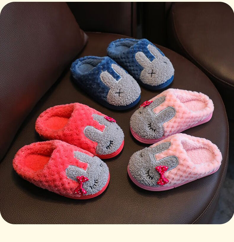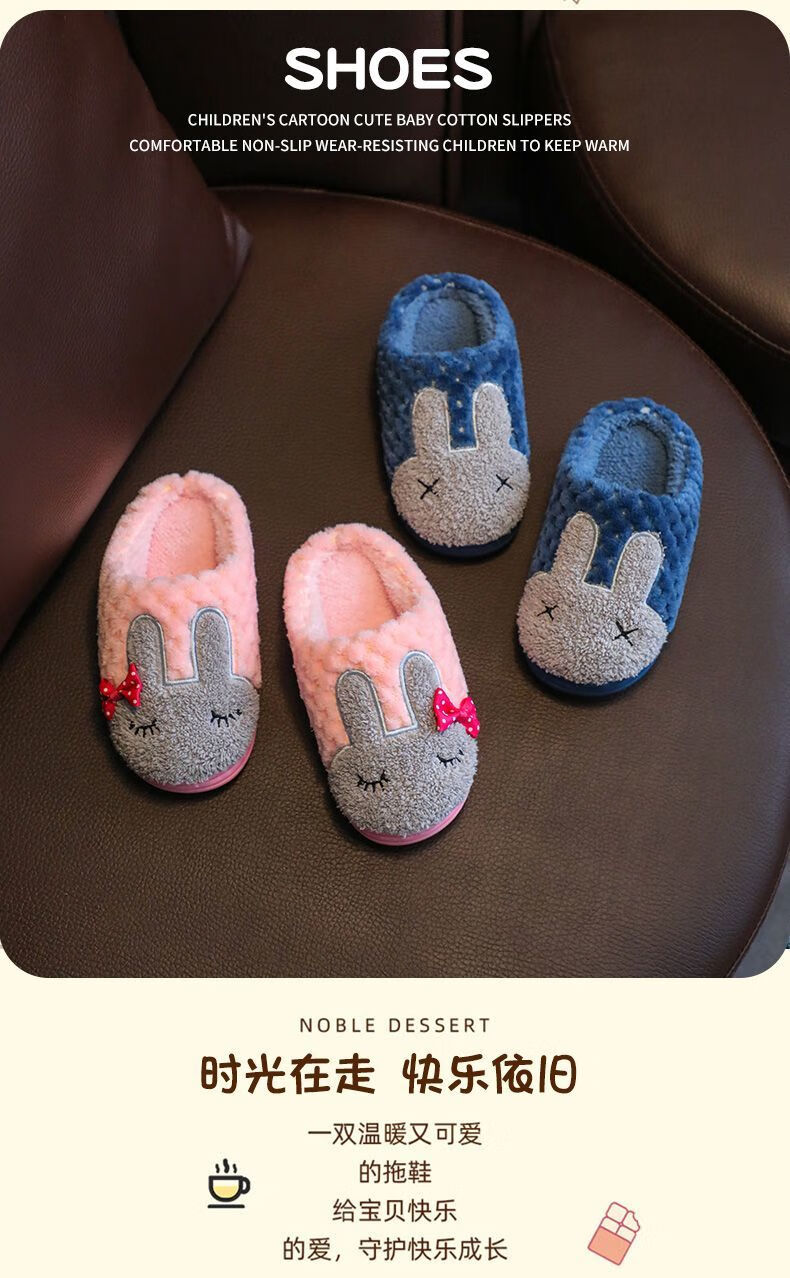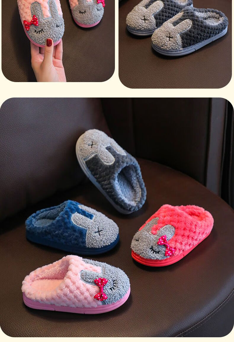 Yunyouli (yunyouli) children's cotton slippers winter style boys and girls non-slip soft bottom parent-child home shoes navy blue rabbit slippers 34_35 inner length 21.5cm9-10 years old