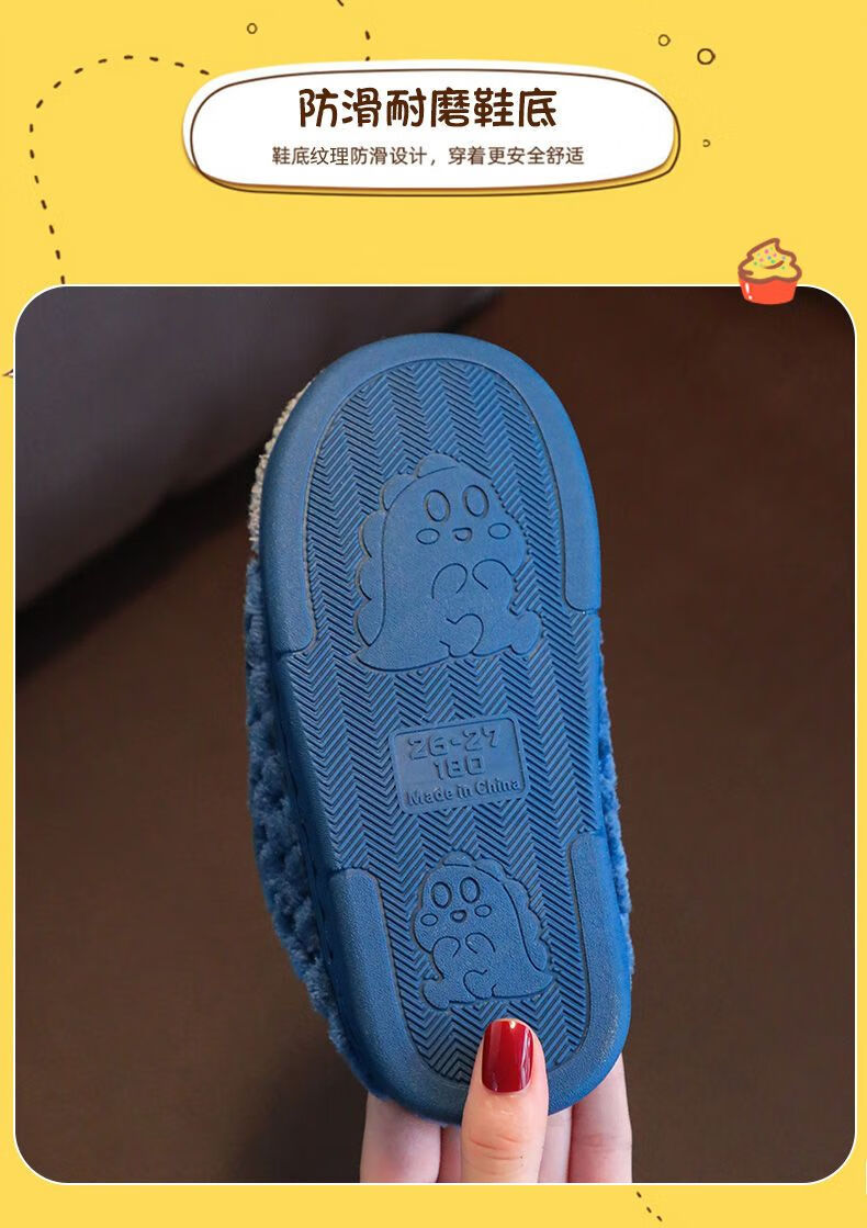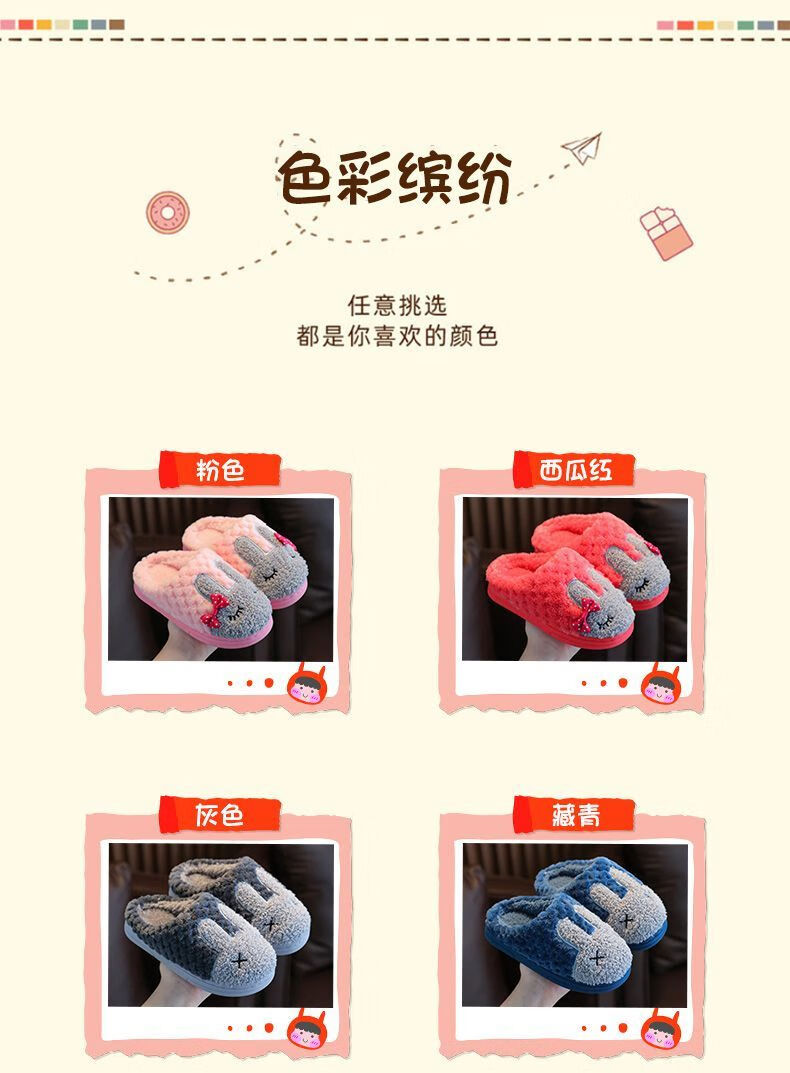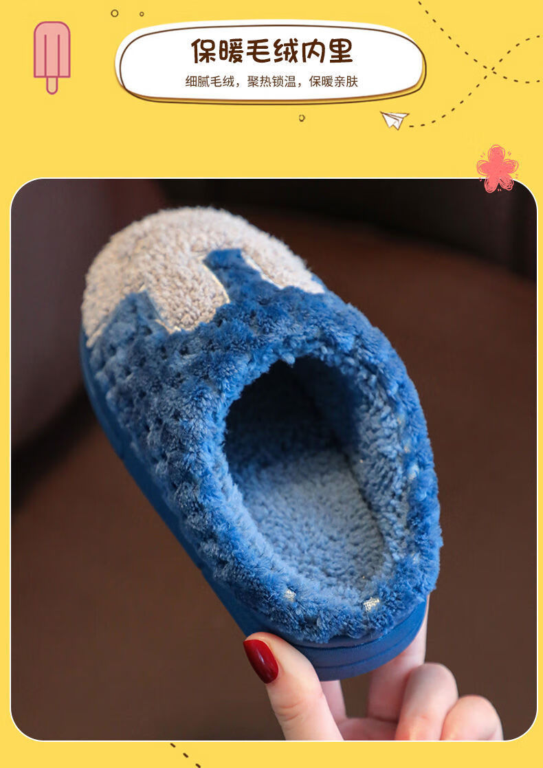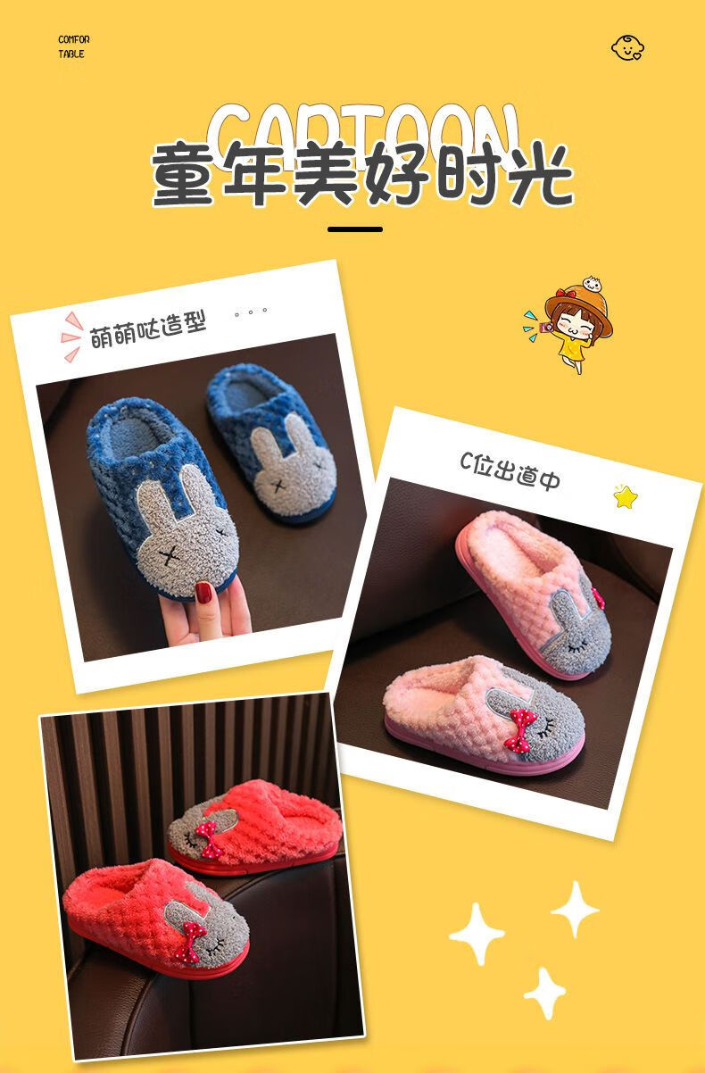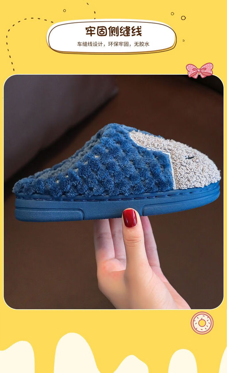 Yunyouli (yunyouli) children's cotton slippers winter style boys and girls non-slip soft bottom parent-child home shoes navy blue rabbit slippers 34_35 inner length 21.5cm9-10 years old