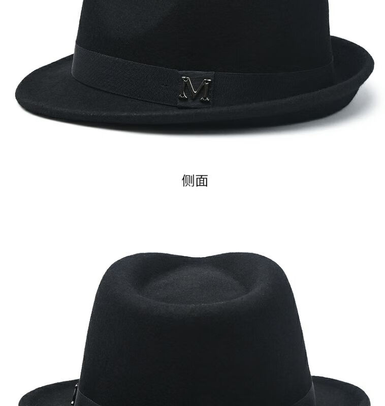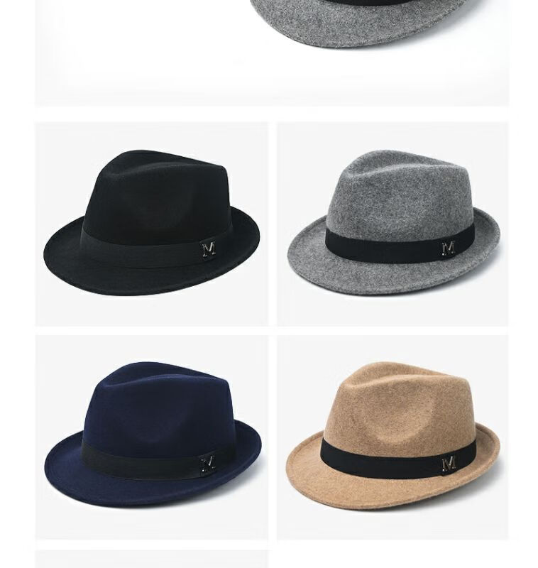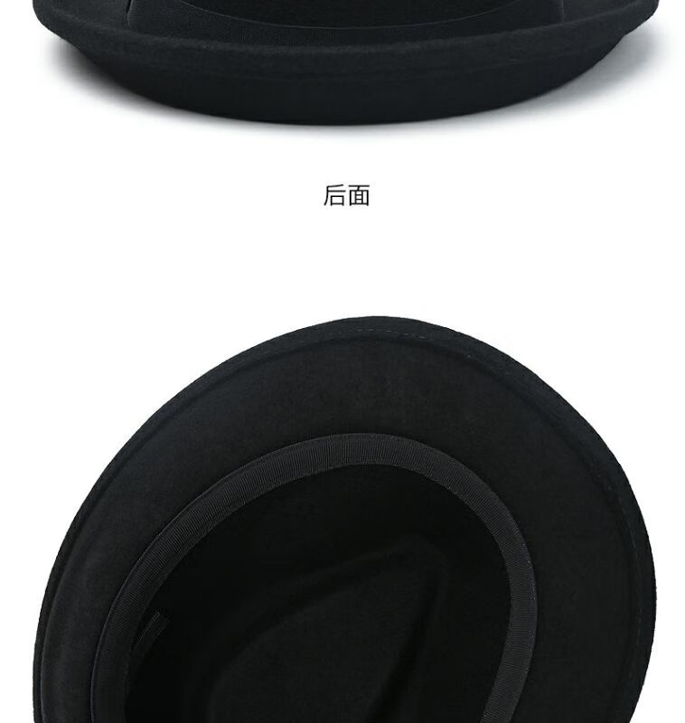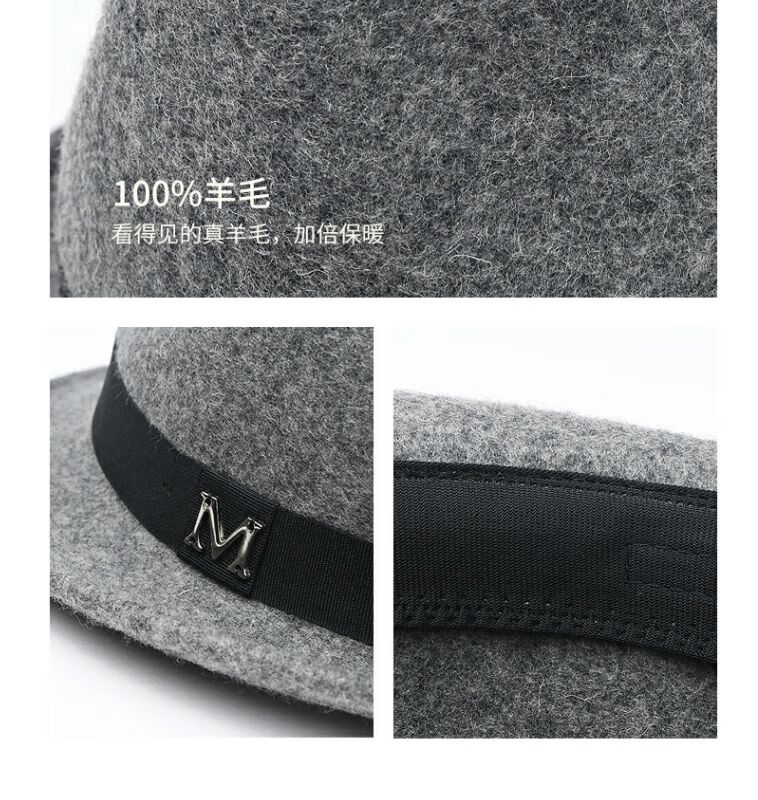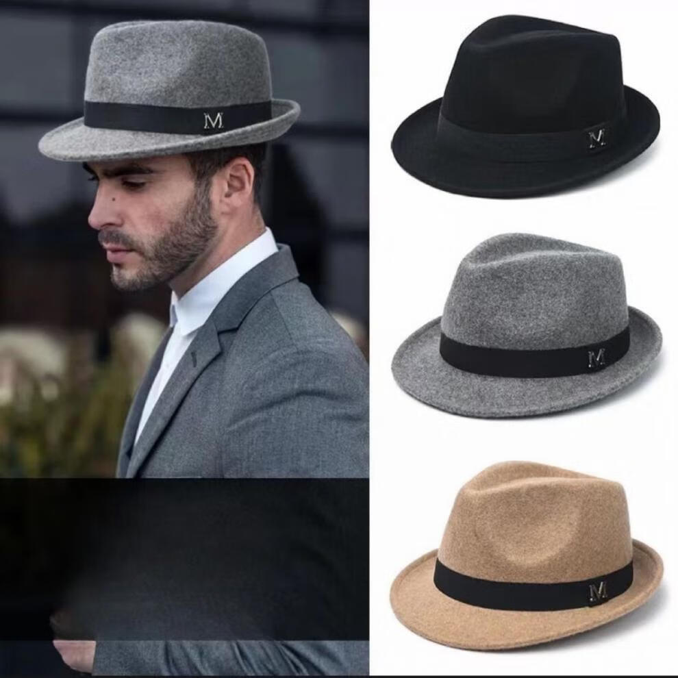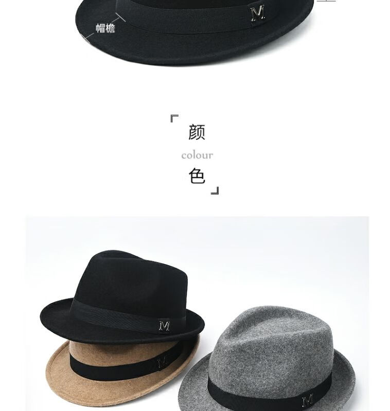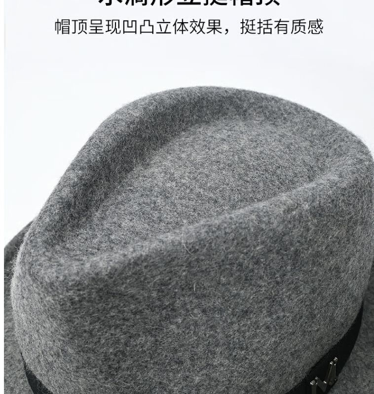 比肆羊秋冬季帽子男绅士礼帽英伦风加厚保暖纯羊毛呢复古卷边爵士帽礼 毛呢礼帽:灰色 M常规码55-58