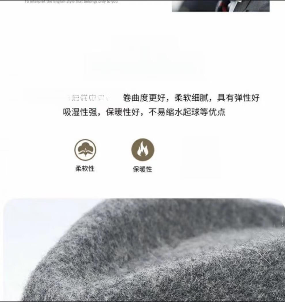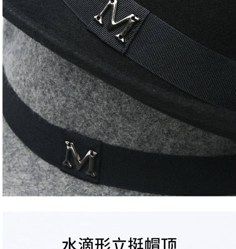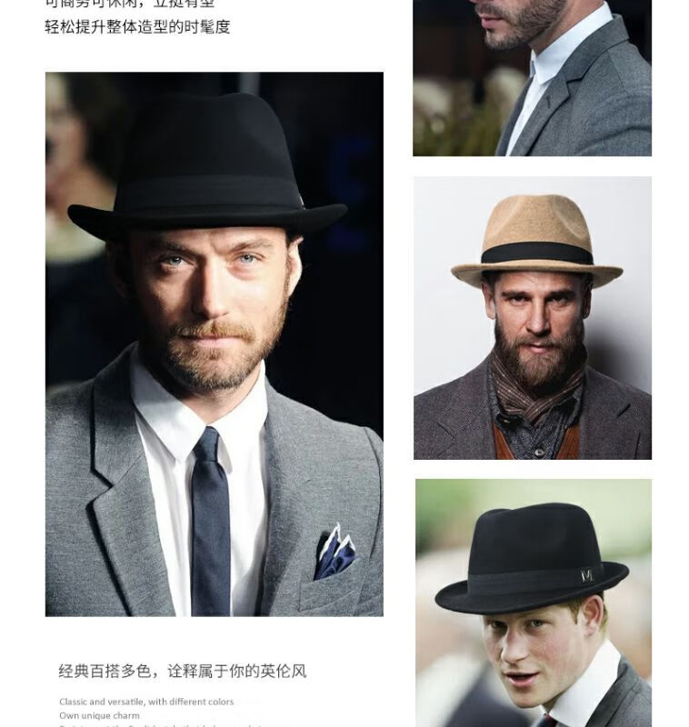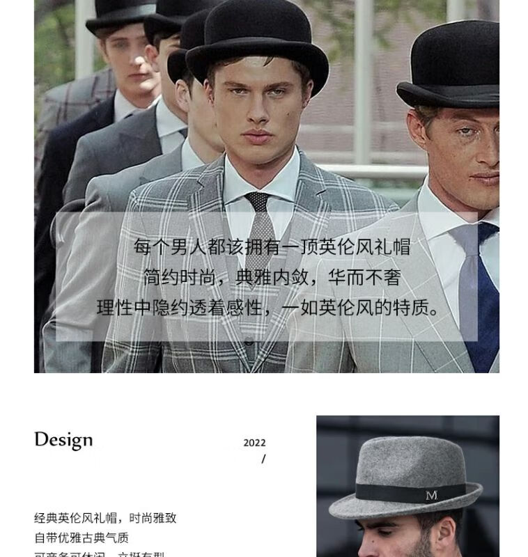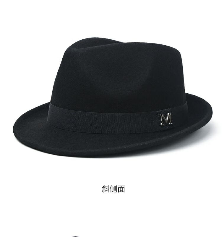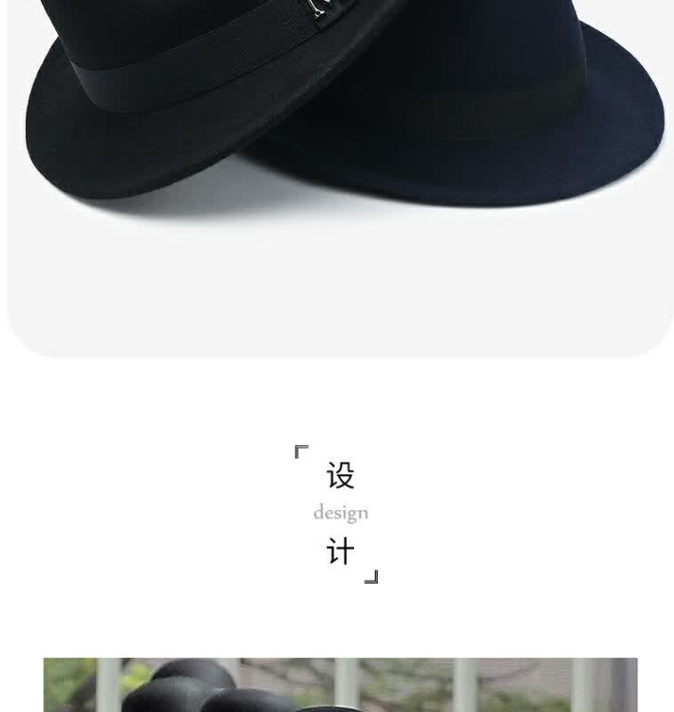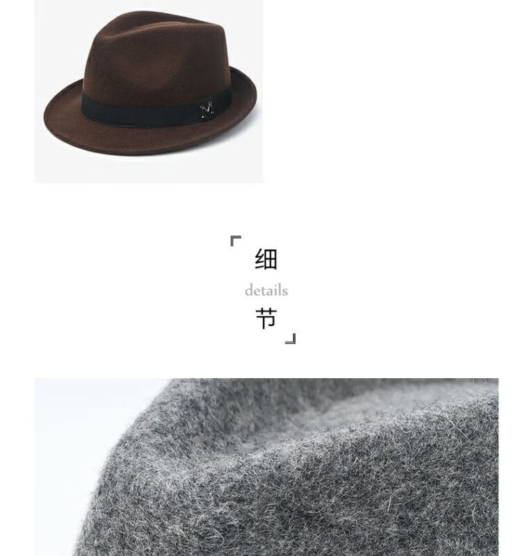 比肆羊秋冬季帽子男绅士礼帽英伦风加厚保暖纯羊毛呢复古卷边爵士帽礼 毛呢礼帽:灰色 M常规码55-58