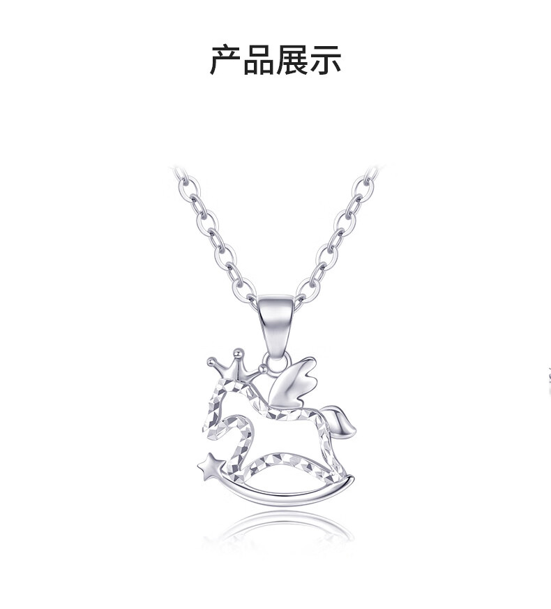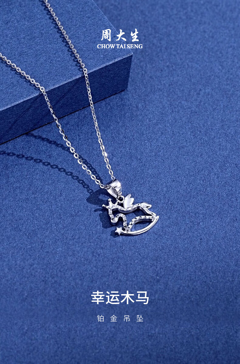 Chow Tai Sang Platinum Zodiac Horse Pendant for Women PT950 Platinum Lucky Trojan Horse Pendant Birthday Gift for Girlfriend Platinum Lucky Trojan Horse Pendant - Free Silver Chain 1.68g