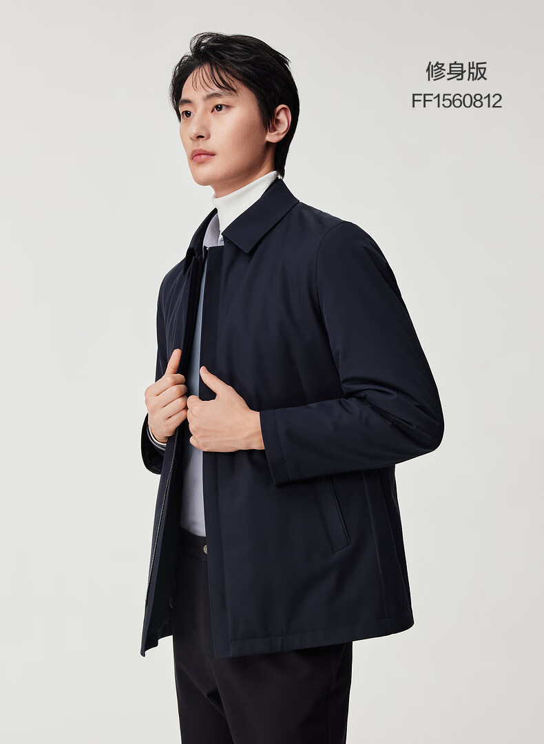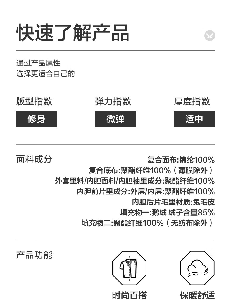 JOEONE Shopping mall same style fur goose down lining rabbit fur lining men's warm executive jacket slim fit + solar eclipse blue + FF1560812 L 175/96A(50)