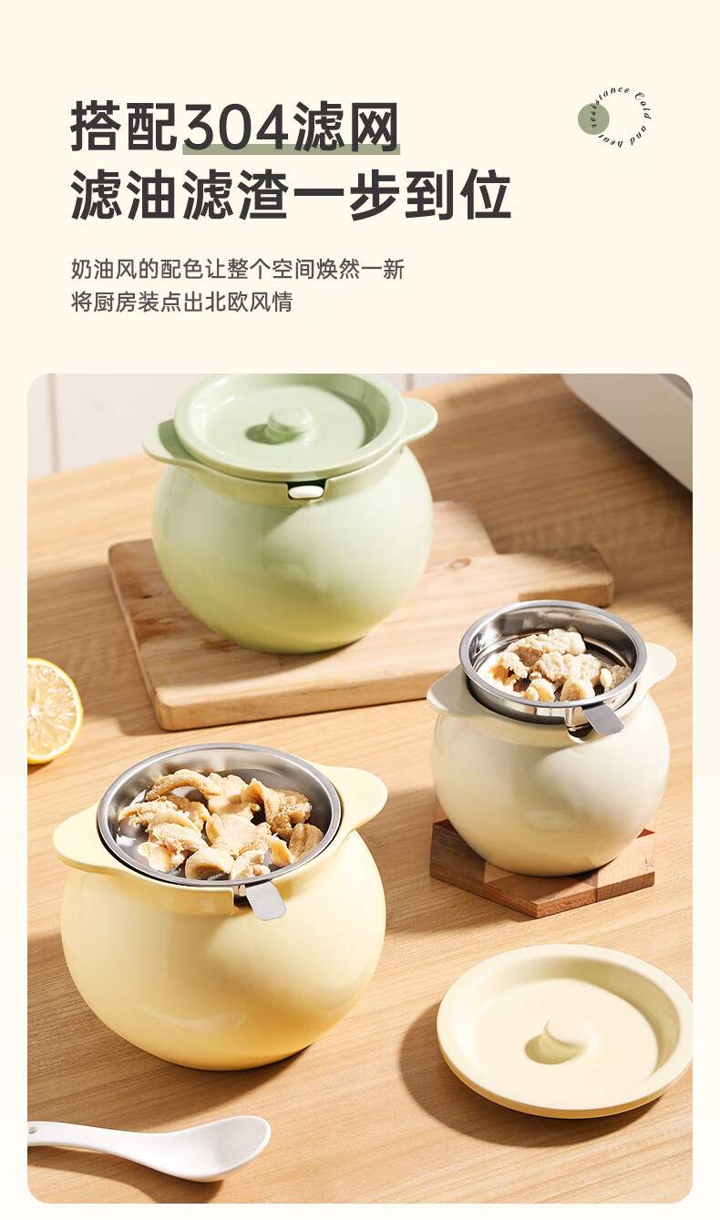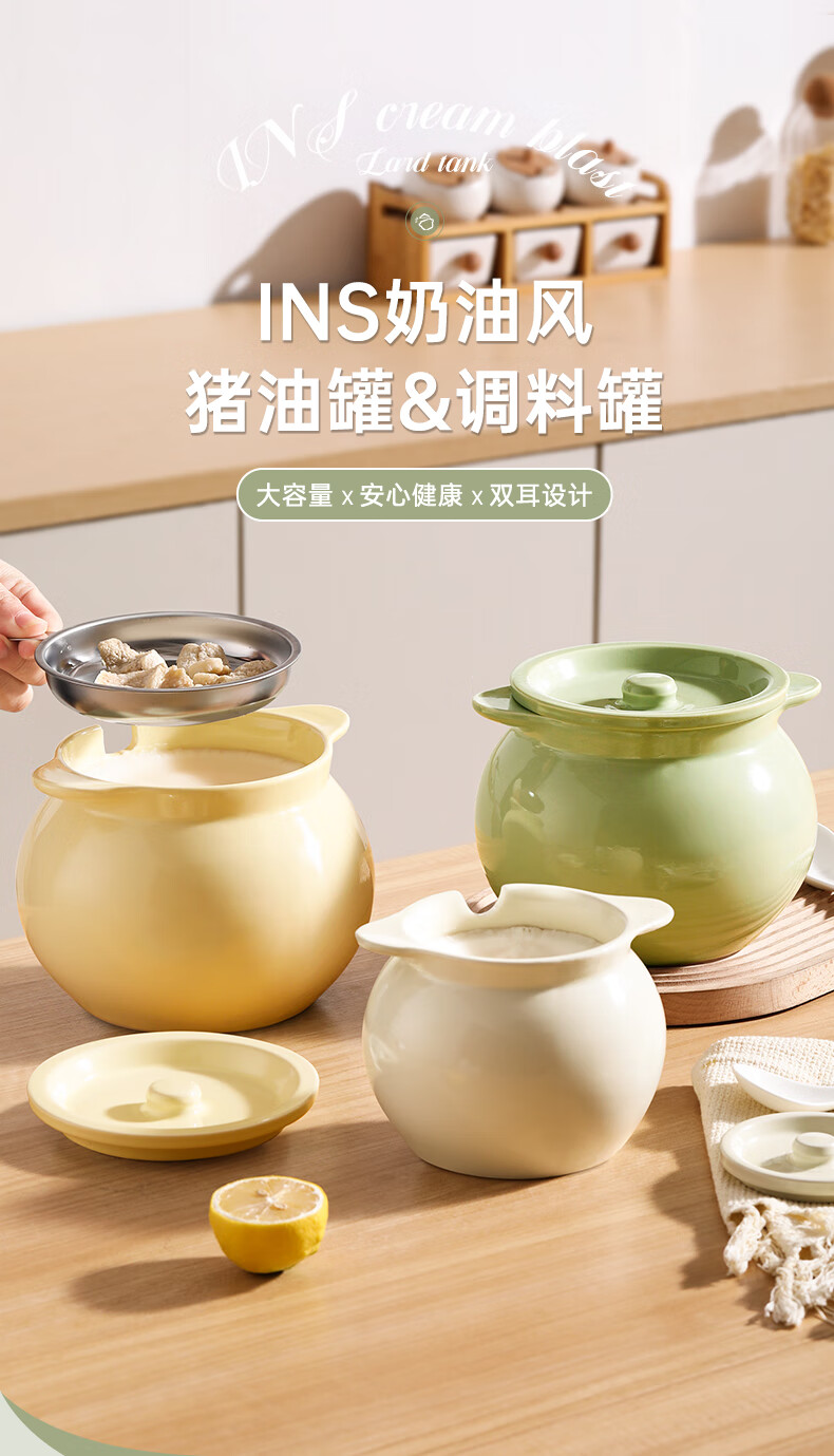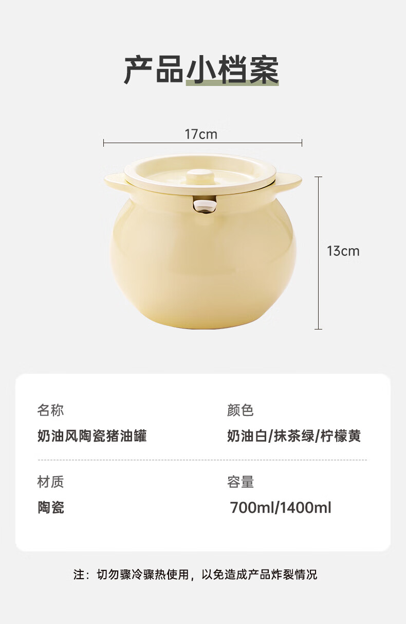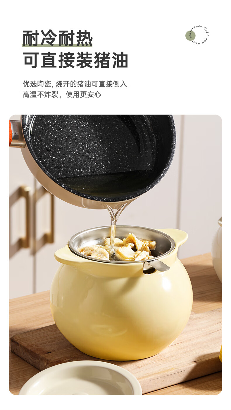 Lard jar household ceramic high temperature resistant food grade kitchen oil jar special jar for spicy food chili oil jar food grade 1400ML-cream white Comes with spoon + filter can pour hot oil