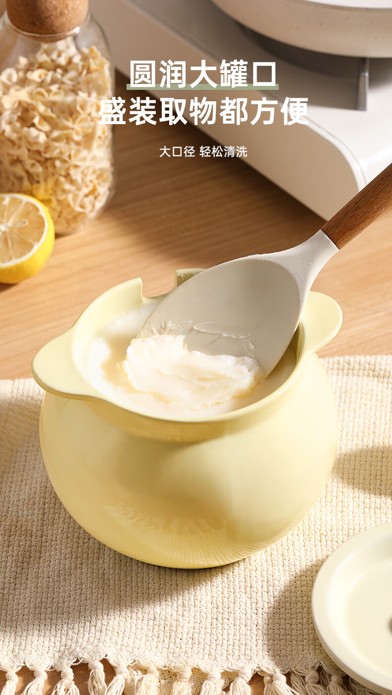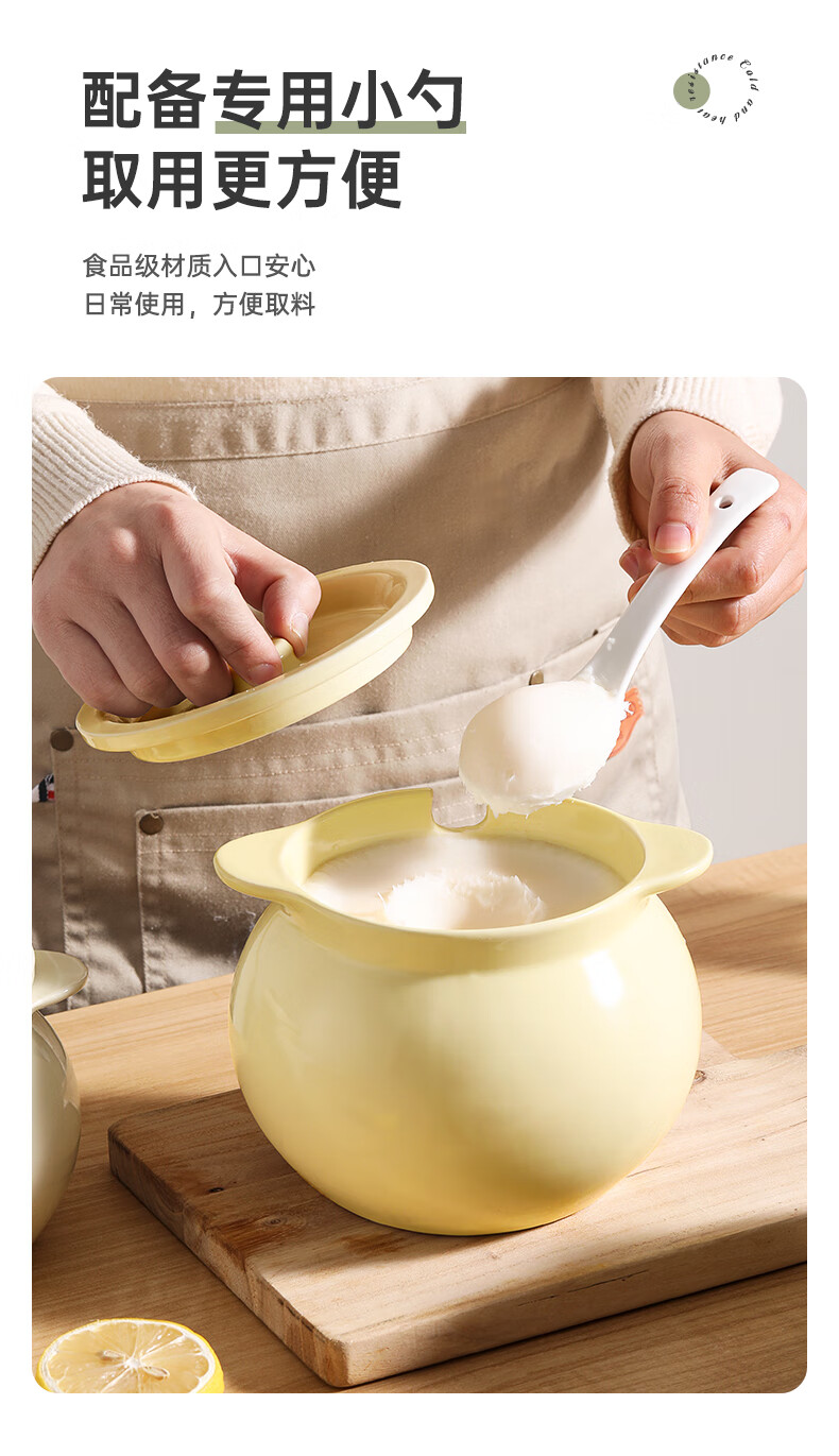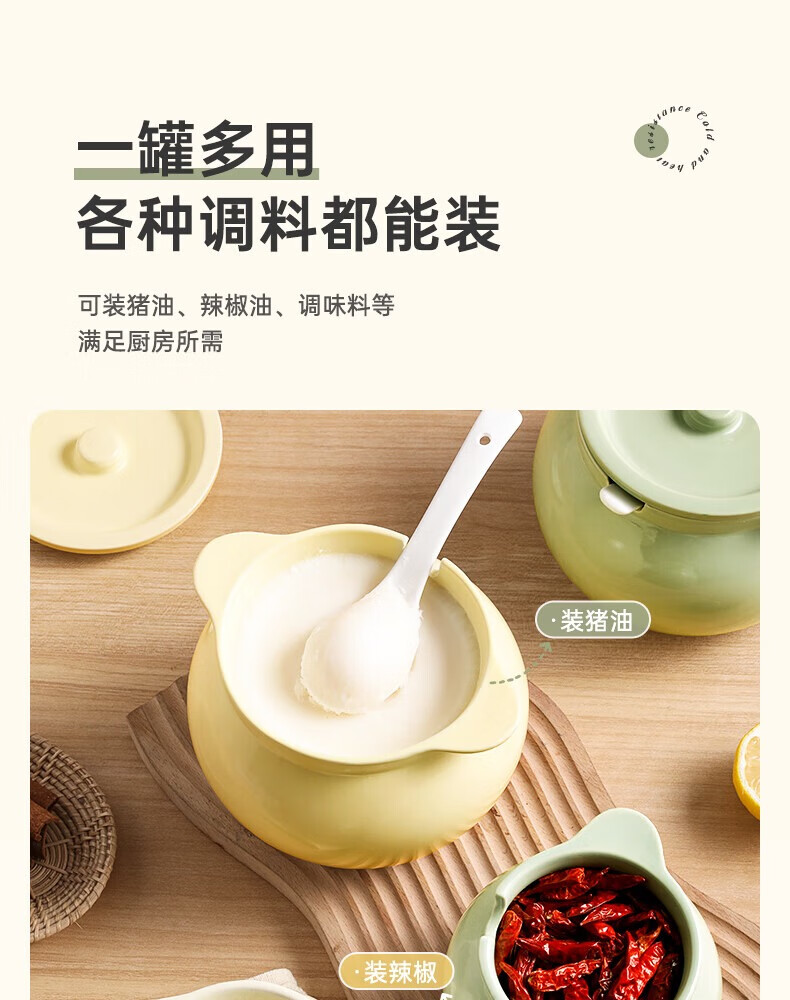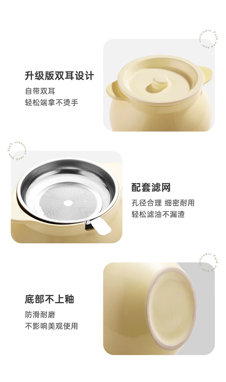 Lard jar household ceramic high temperature resistant food grade kitchen oil jar special jar for spicy food chili oil jar food grade 1400ML-cream white Comes with spoon + filter can pour hot oil