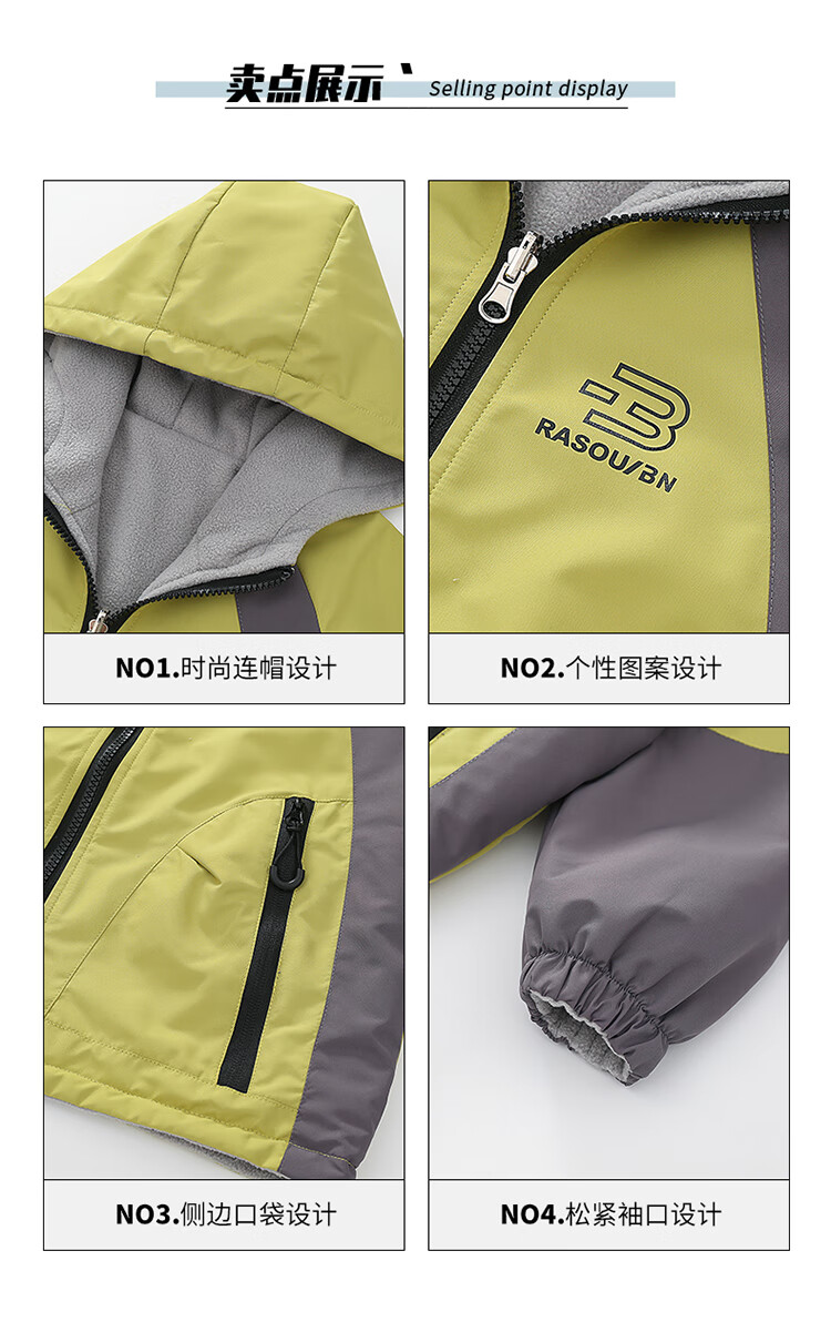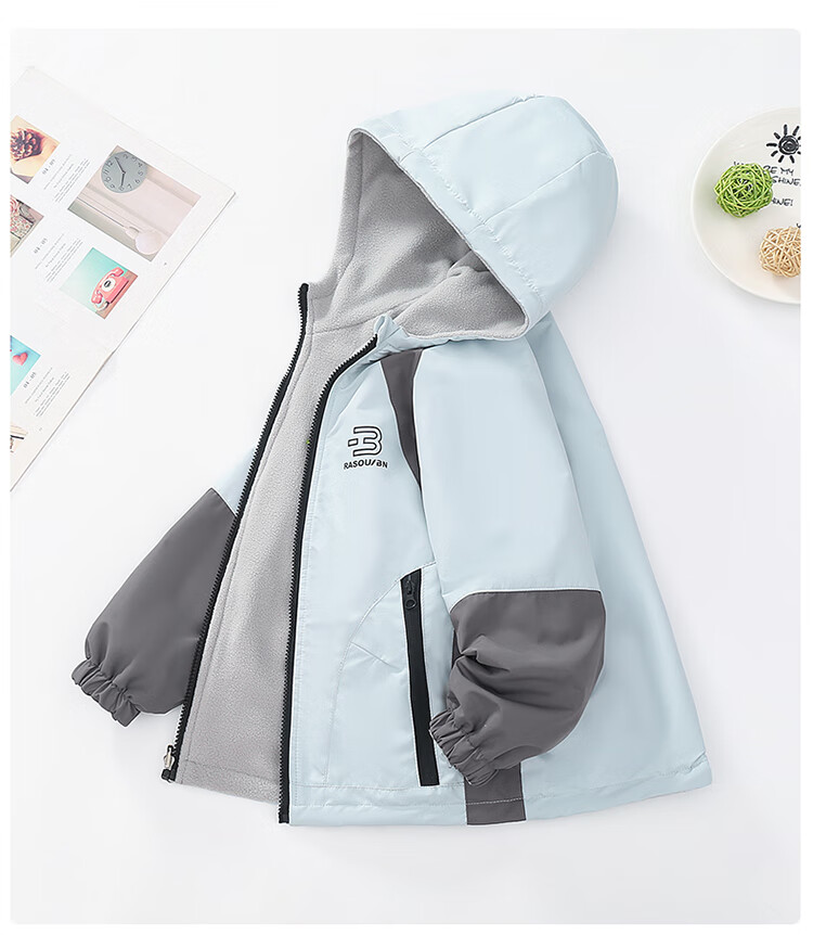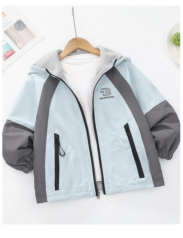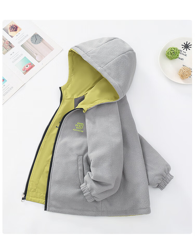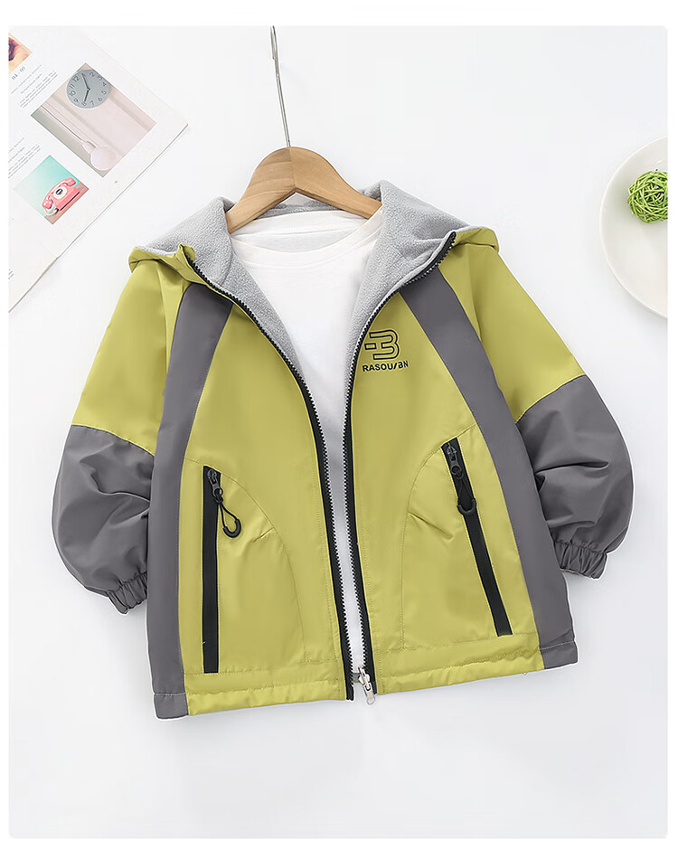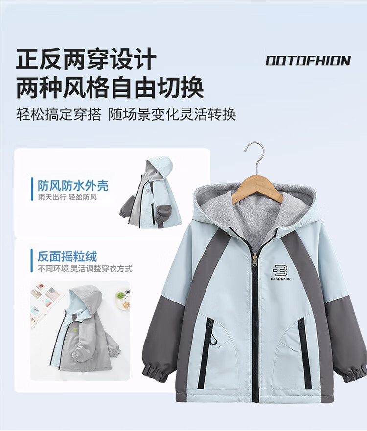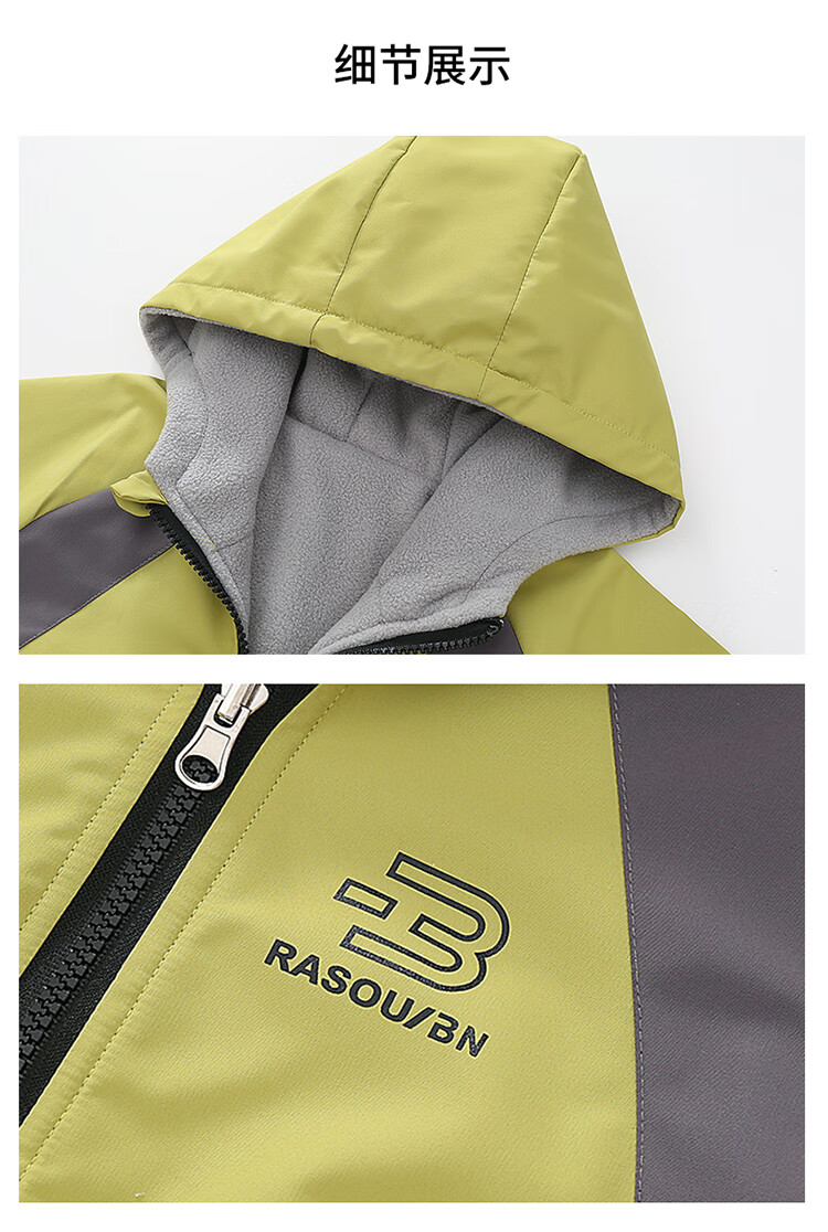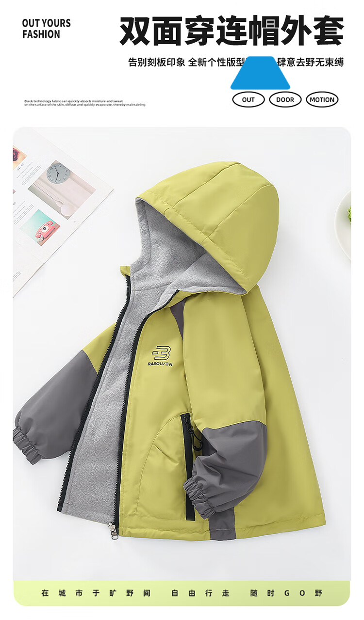 童装男童加绒双面穿外套2025新款儿童户外服春秋撞色两面穿防水潮 绿色 160
