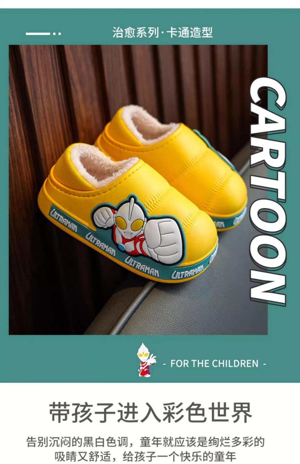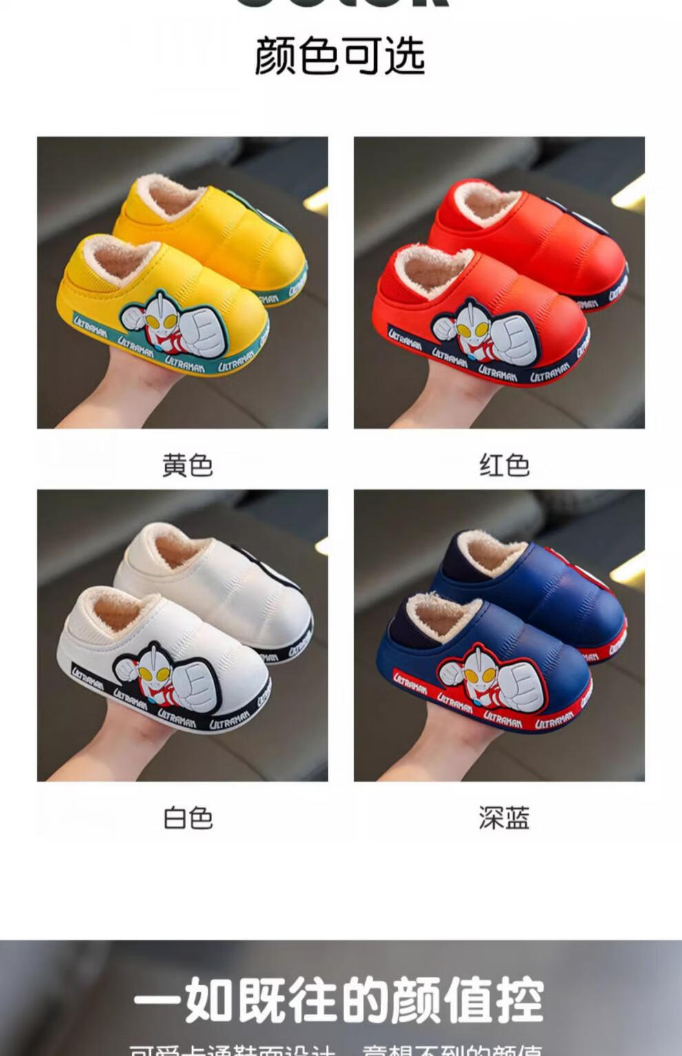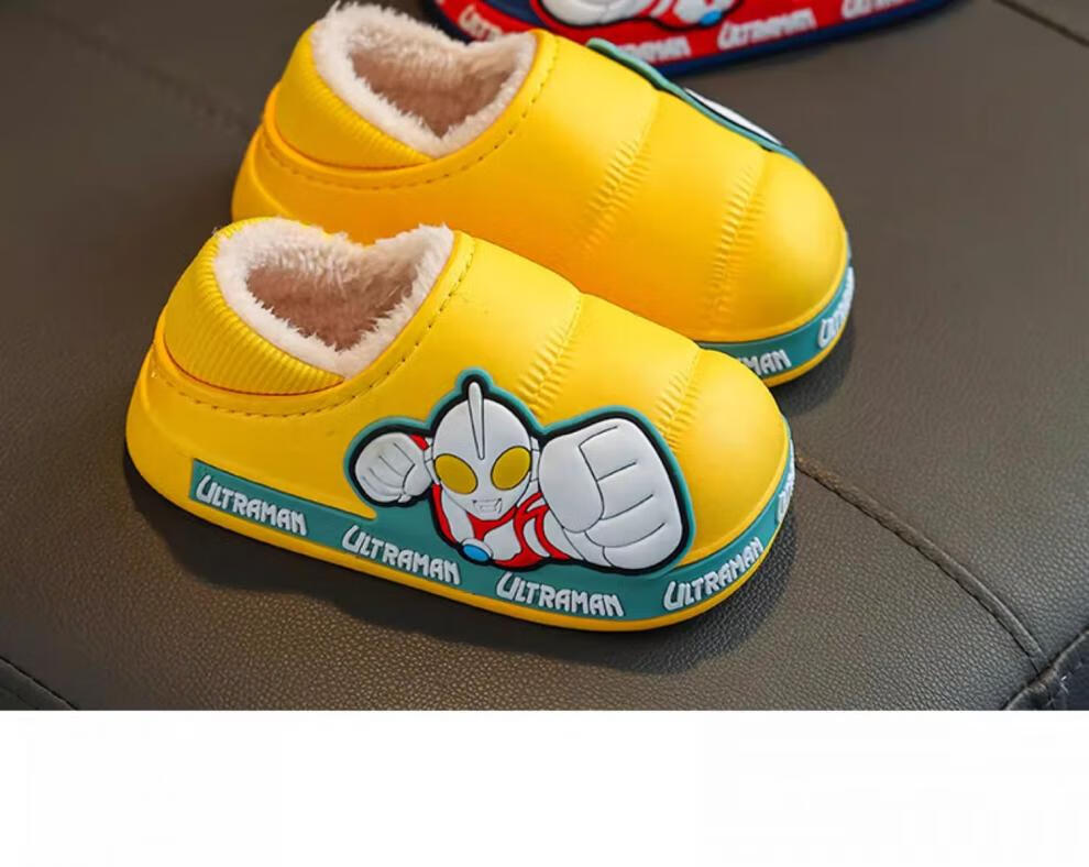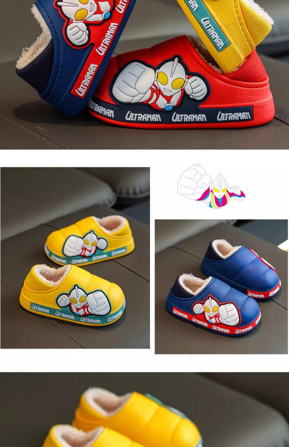 DFBK Ultraman Children's Cotton Slippers Boys' Bag Heel Winter Indoor Home Warmth 2025 New Waterproof Anti-Slip Outer Wear Yellow Bag Heel Genuinely Authorized 99.9% Waterproof Anti-Slip Inside Pull Out Easy to Clean Size 24 25 (Inner Length 15CM Suitable for 2-3 Years Old)