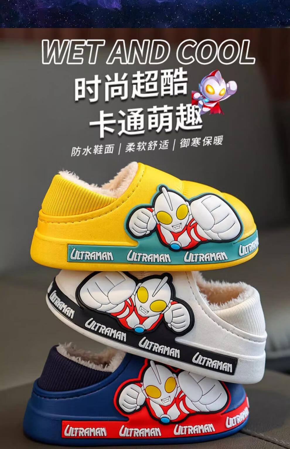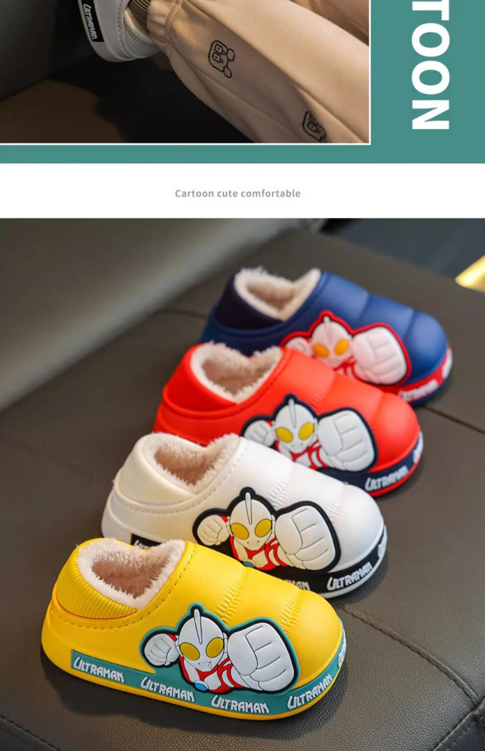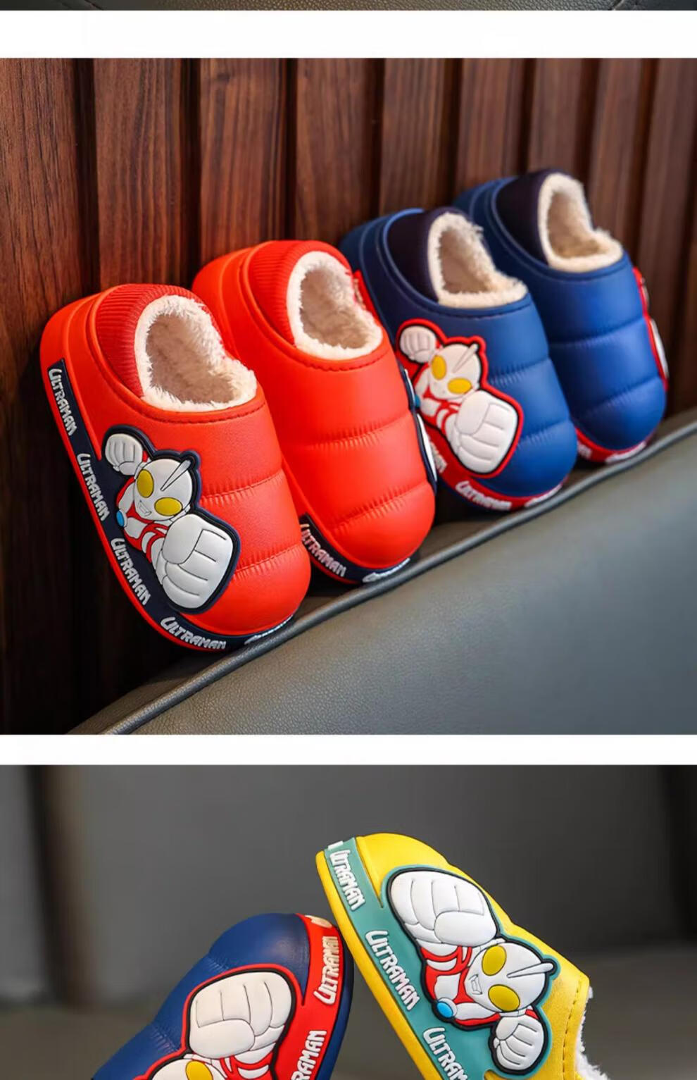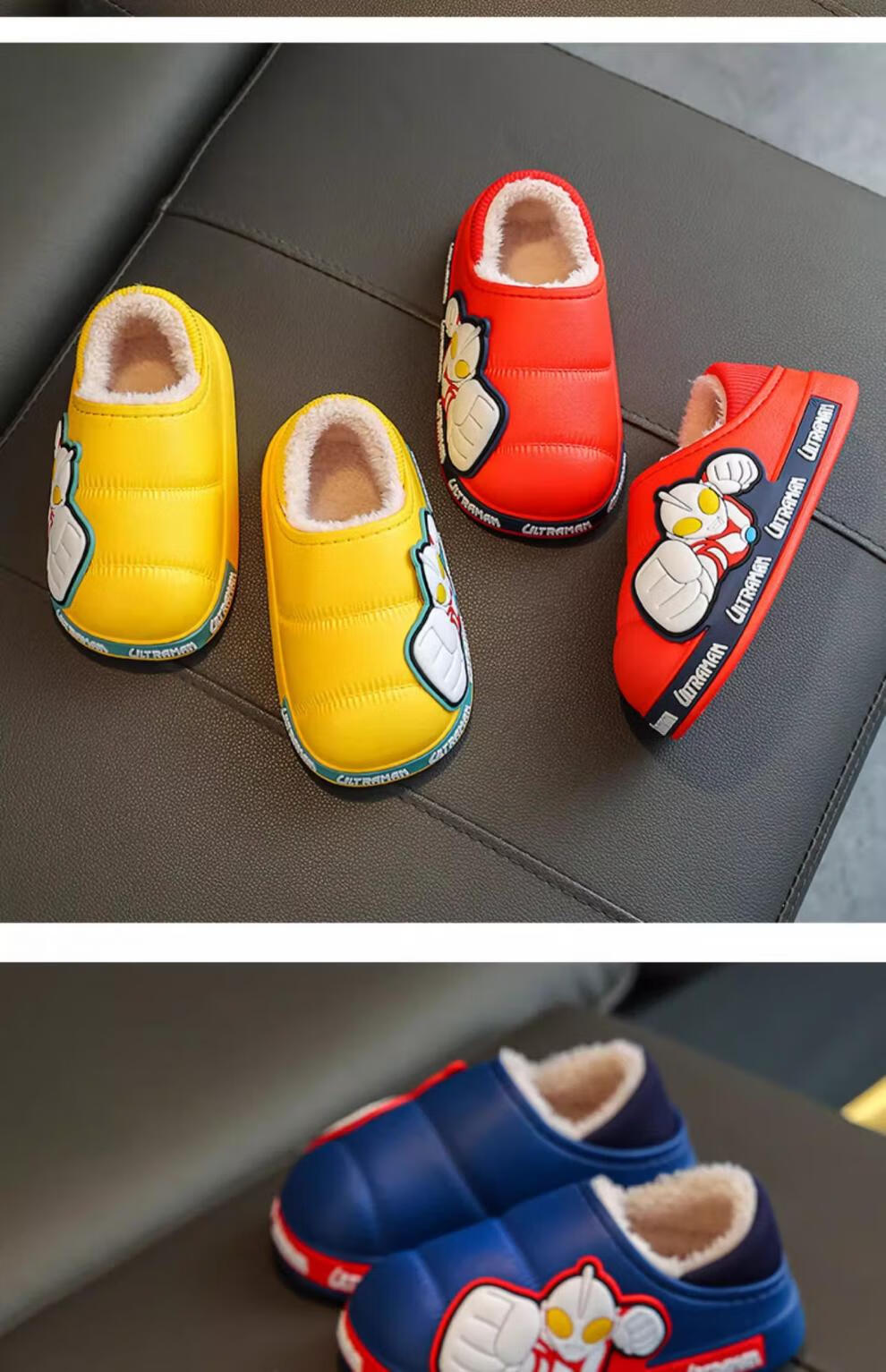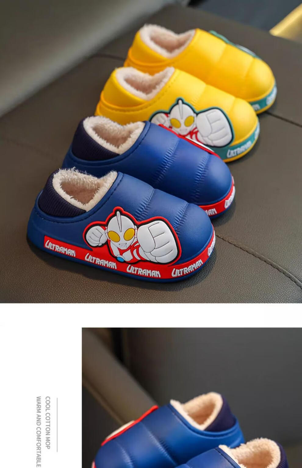DFBK Ultraman Children's Cotton Slippers Boys' Bag Heel Winter Indoor Home Warmth 2025 New Waterproof Anti-Slip Outer Wear Yellow Bag Heel Genuinely Authorized 99.9% Waterproof Anti-Slip Inside Pull Out Easy to Clean Size 24 25 (Inner Length 15CM Suitable for 2-3 Years Old)