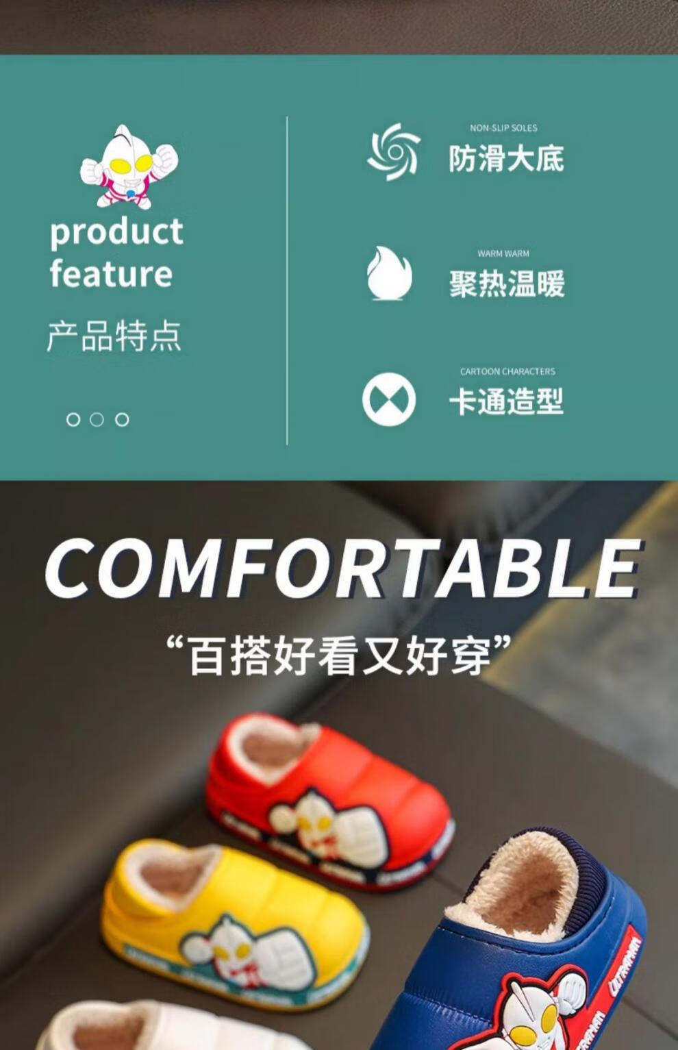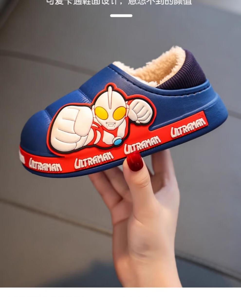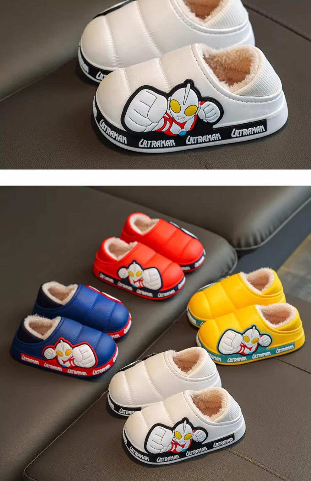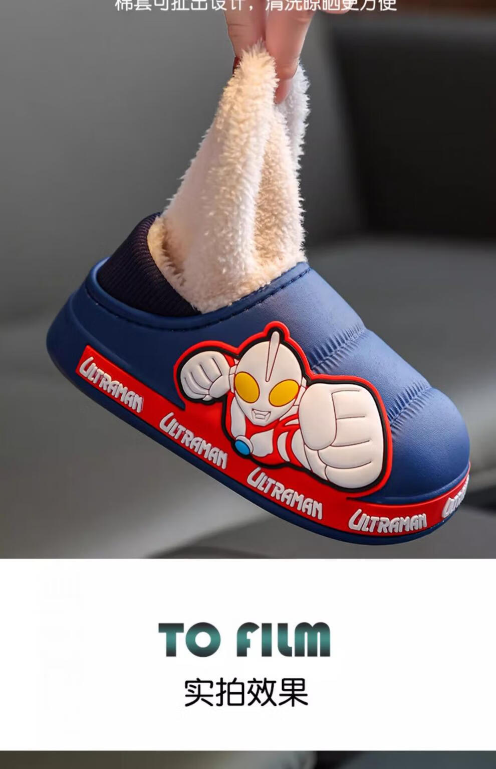 DFBK Ultraman Children's Cotton Slippers Boys' Bag Heel Winter Indoor Home Warmth 2025 New Waterproof Anti-Slip Outer Wear Yellow Bag Heel Genuinely Authorized 99.9% Waterproof Anti-Slip Inside Pull Out Easy to Clean Size 24 25 (Inner Length 15CM Suitable for 2-3 Years Old)