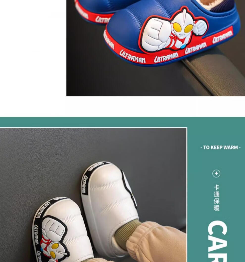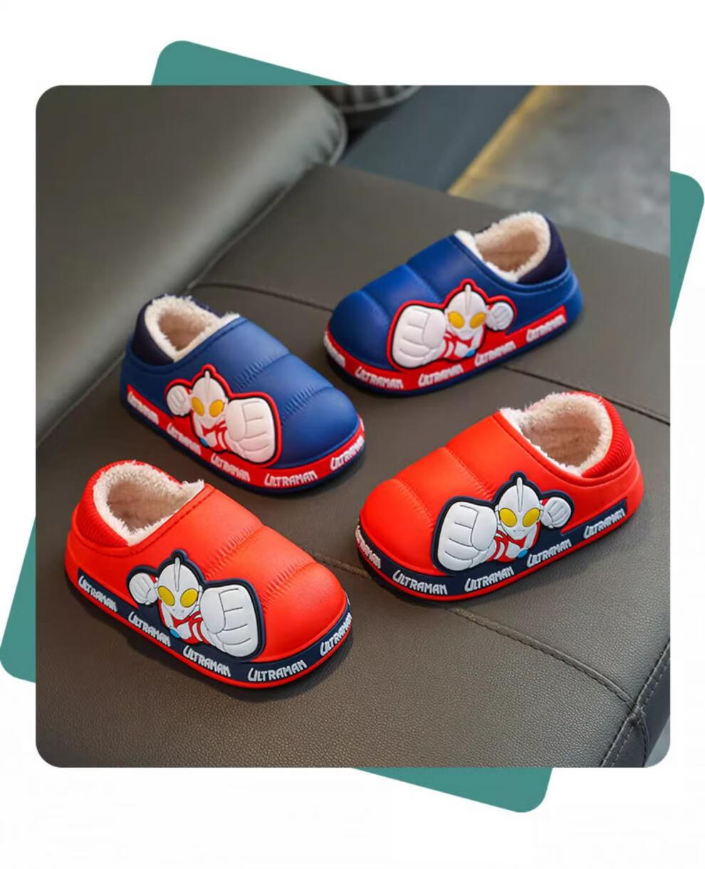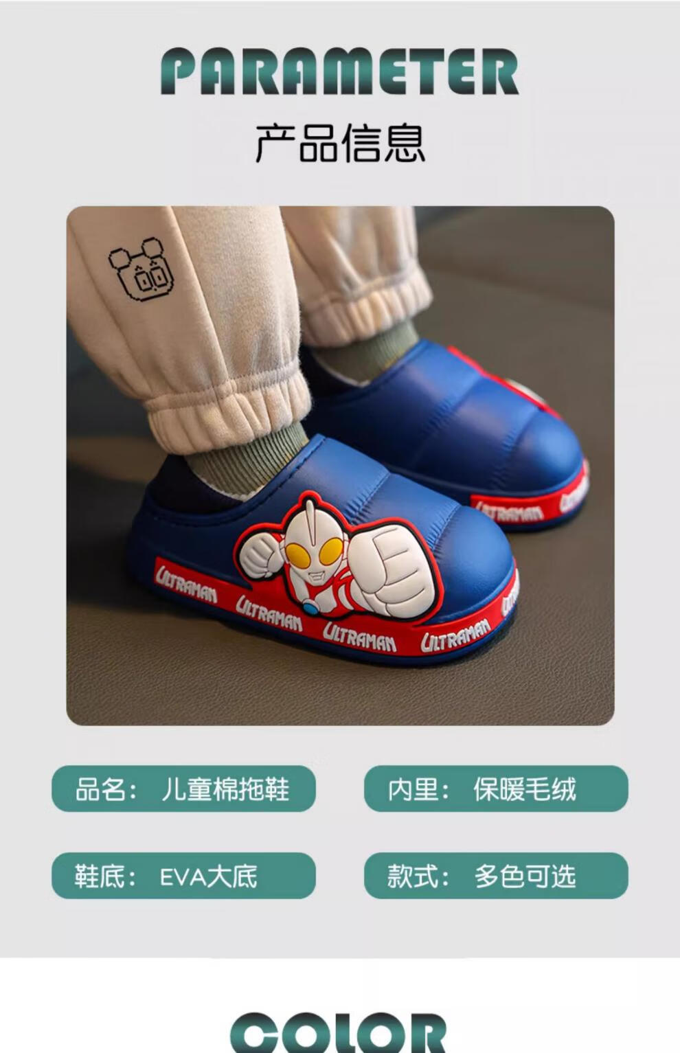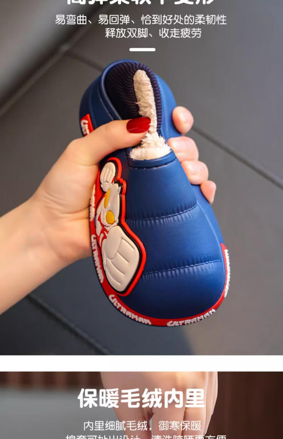 DFBK Ultraman Children's Cotton Slippers Boys' Bag Heel Winter Indoor Home Warmth 2025 New Waterproof Anti-Slip Outer Wear Yellow Bag Heel Genuinely Authorized 99.9% Waterproof Anti-Slip Inside Pull Out Easy to Clean Size 24 25 (Inner Length 15CM Suitable for 2-3 Years Old)