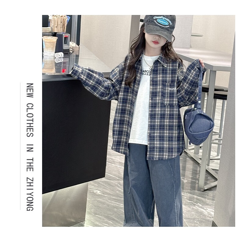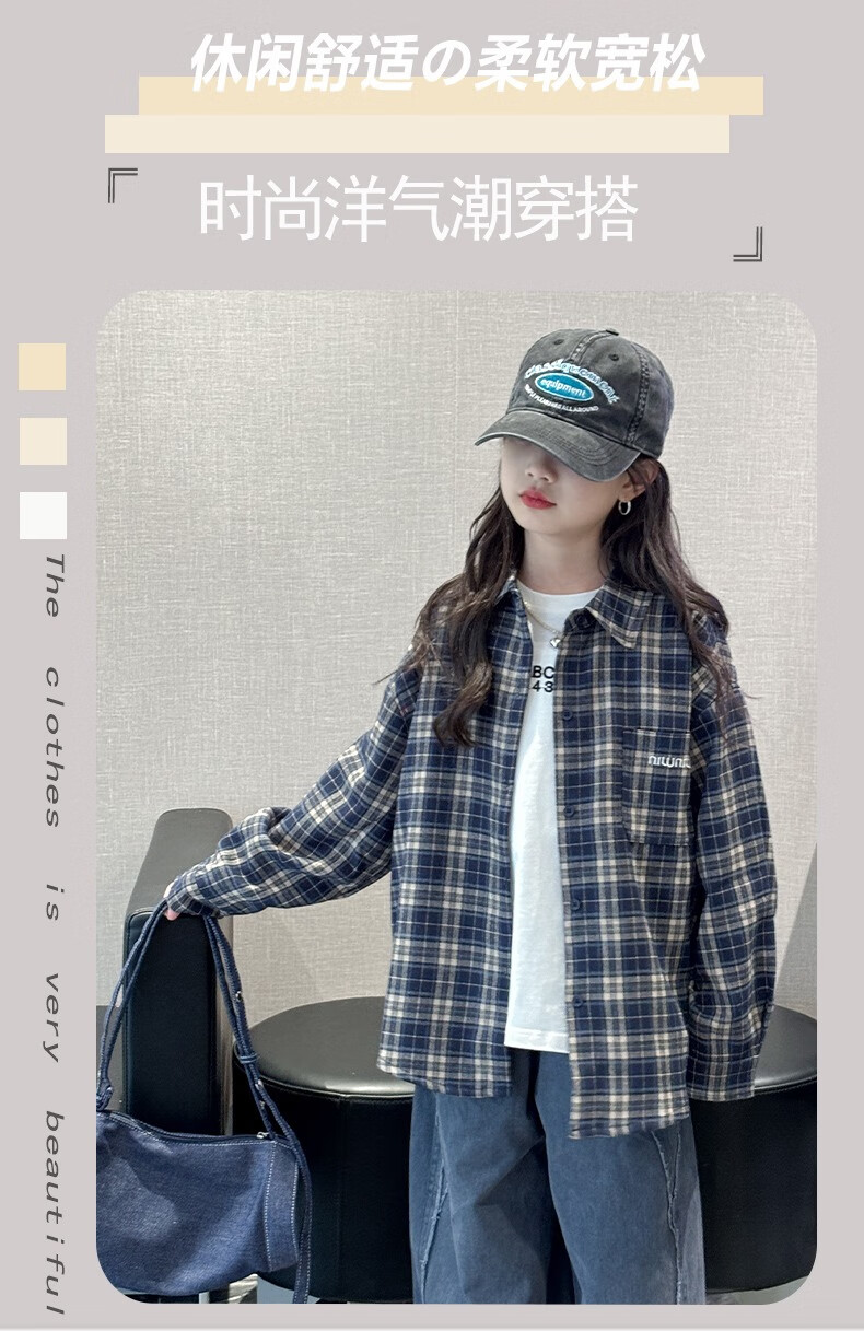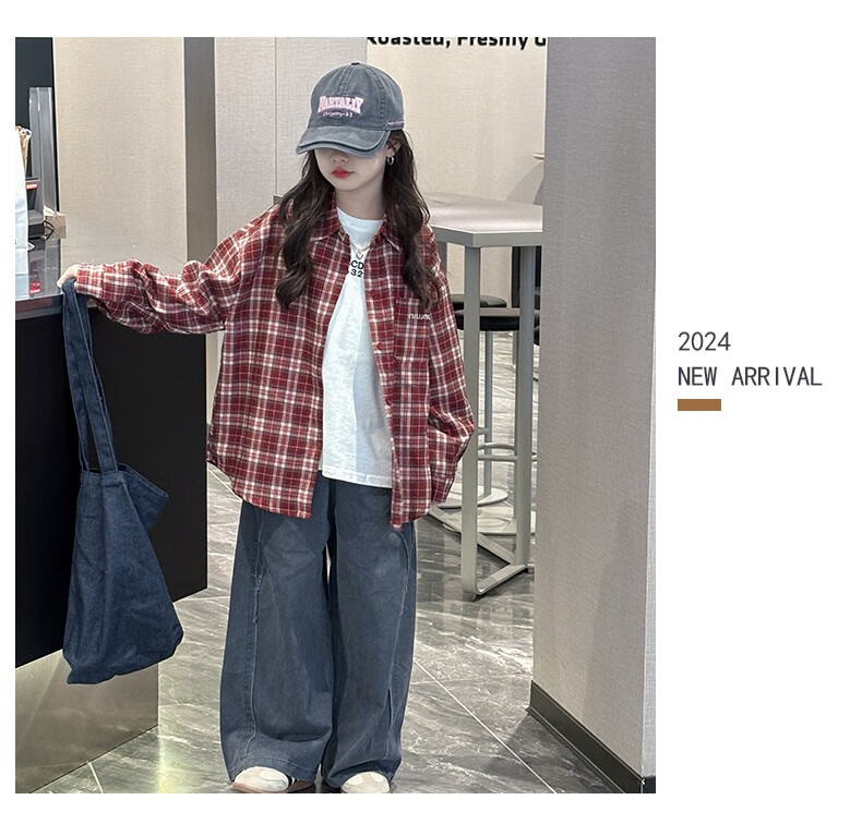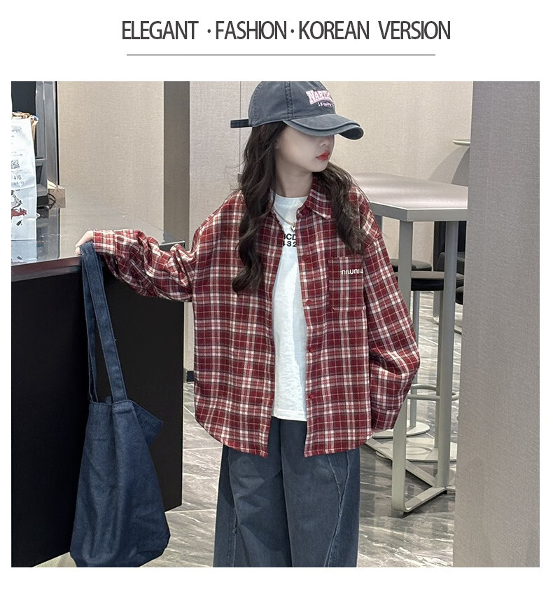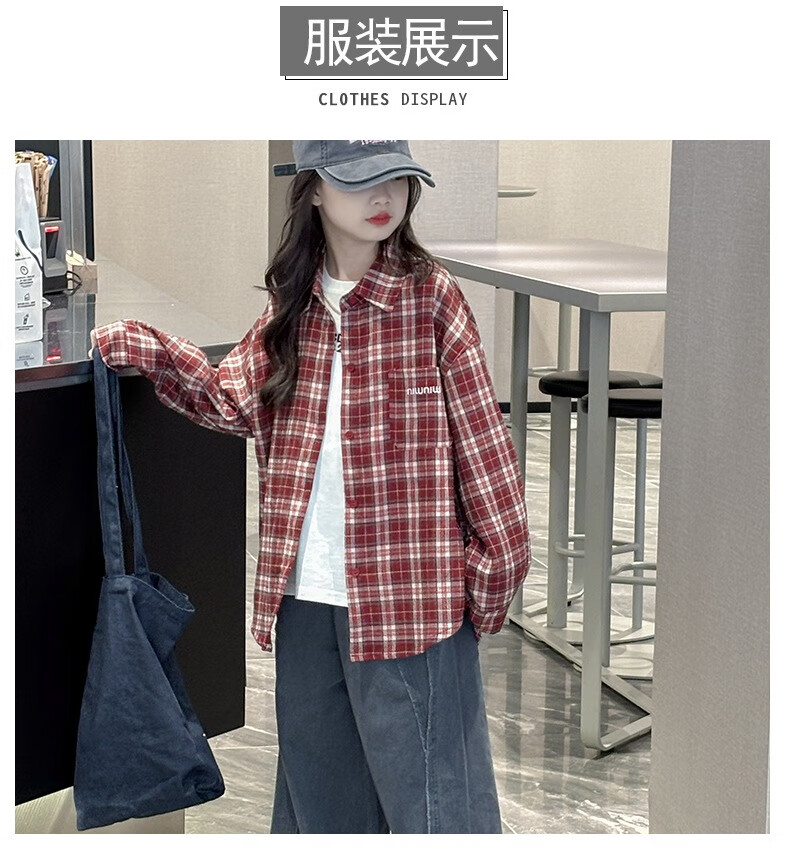 Girls plaid shirt spring and autumn 2025 new fashionable girls big children autumn fashionable jacket children Korean style shirt red 170
