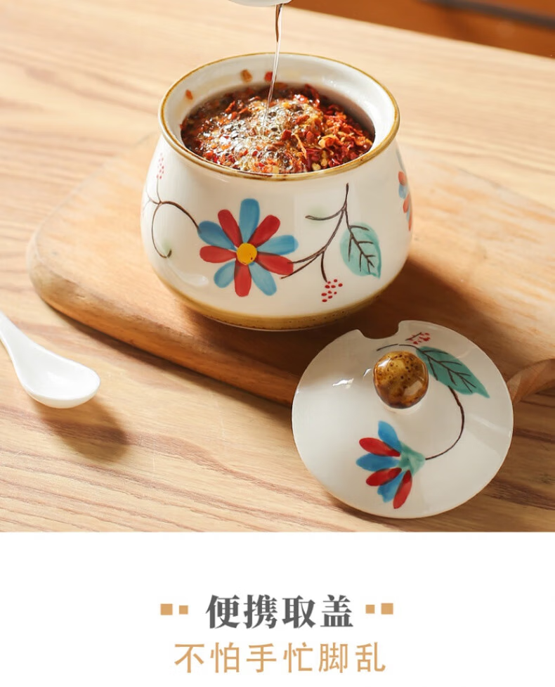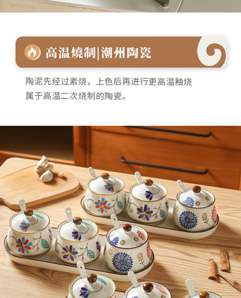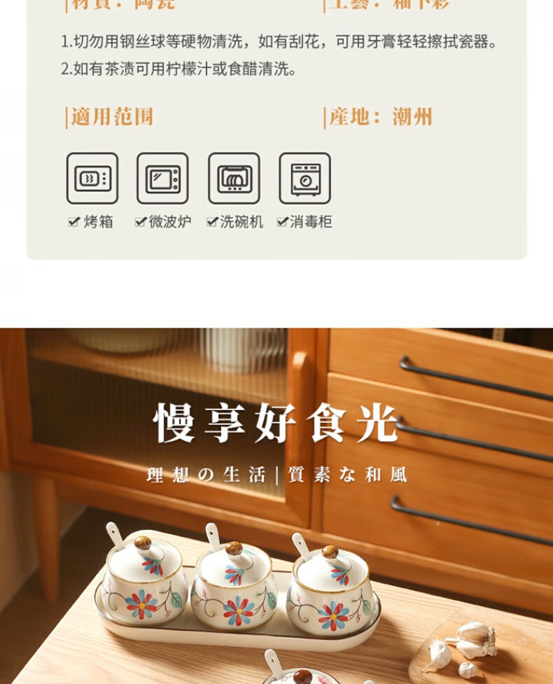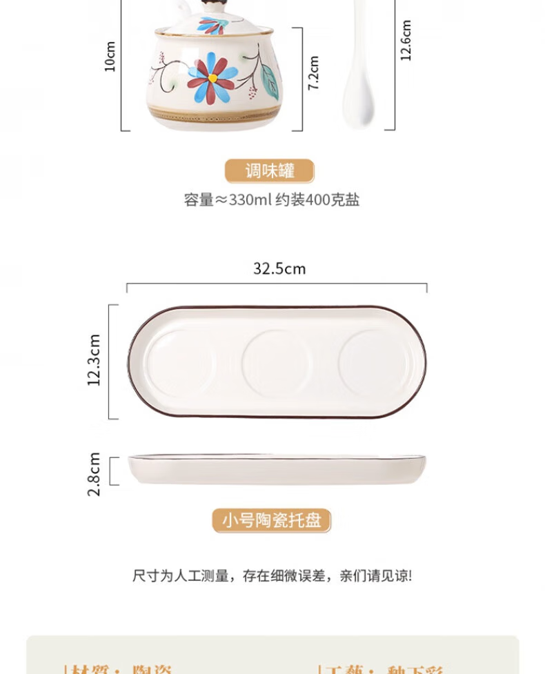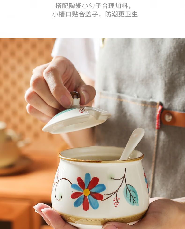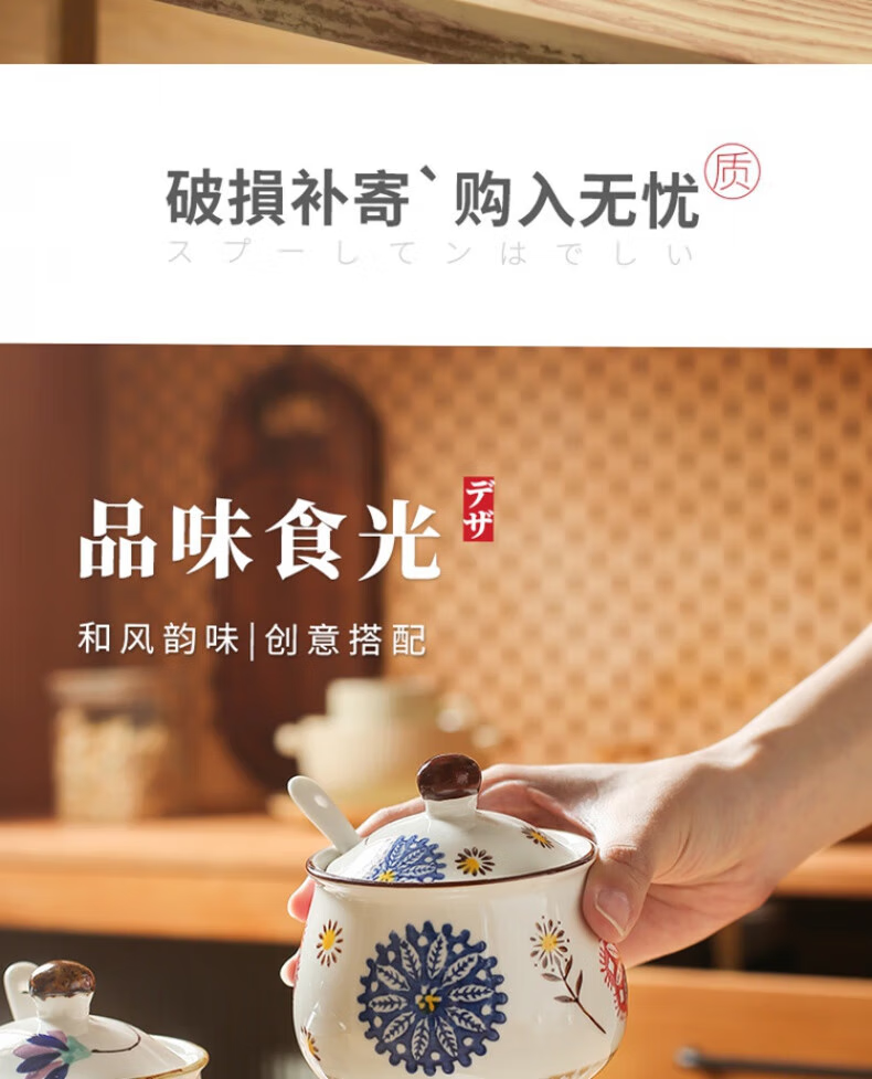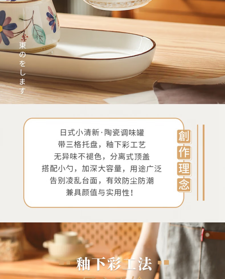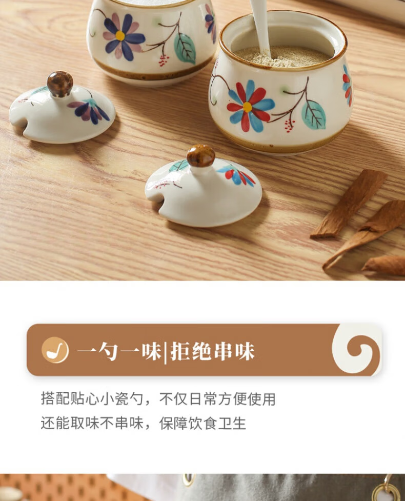 GPHF Japanese ceramic seasoning jar three-piece combination seasoning jar salt shaker home kitchen seasoning box combination set mixed three-piece set + spoon tray