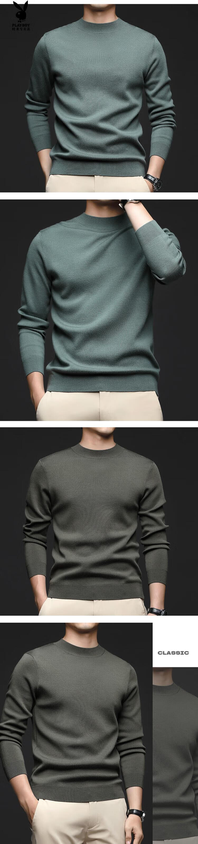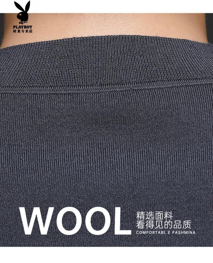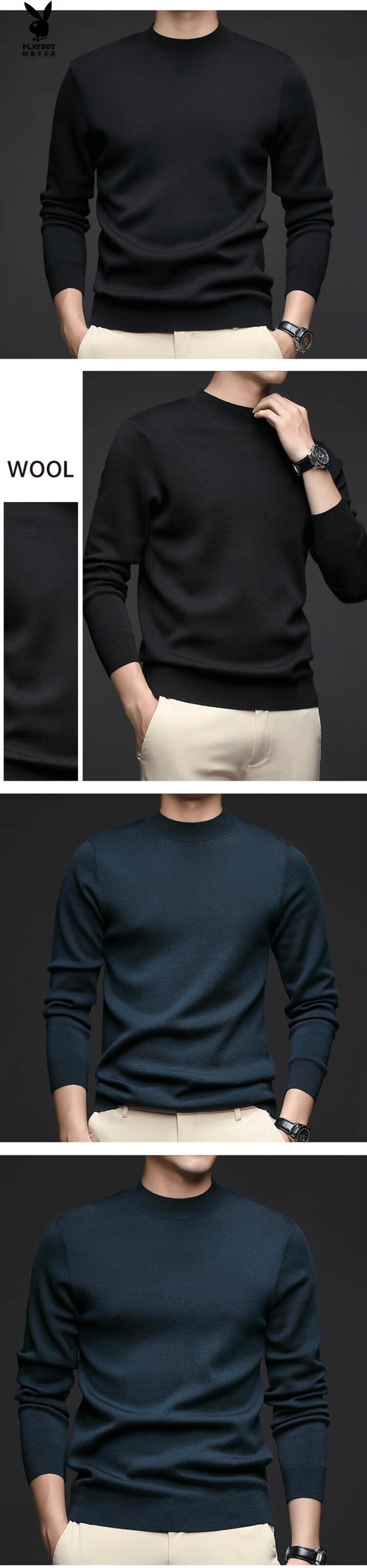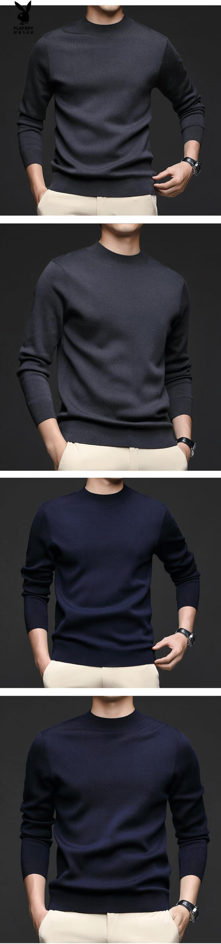 PLAYBOY high-end worsted pure wool sweater men's machine washable winter thickened bottoming sweater half turtleneck sweater men's blue 3XL