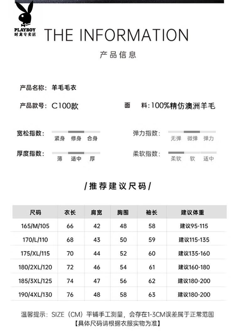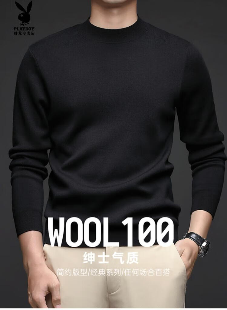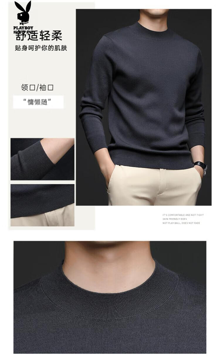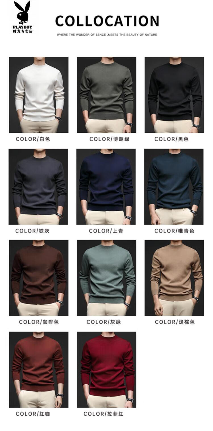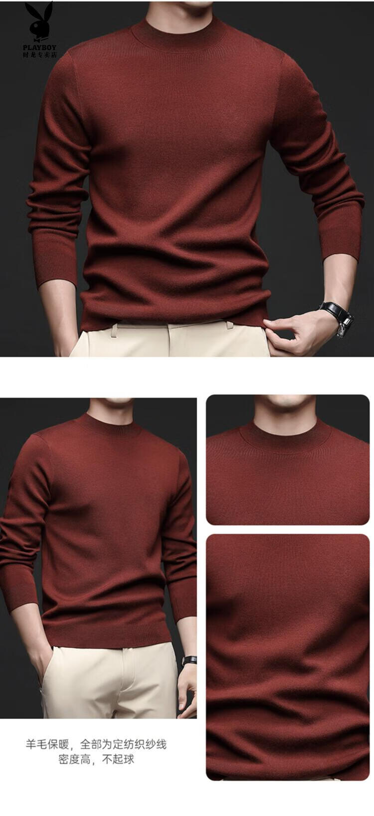 PLAYBOY high-end worsted pure wool sweater men's machine washable winter thickened bottoming sweater half turtleneck sweater men's blue 3XL
