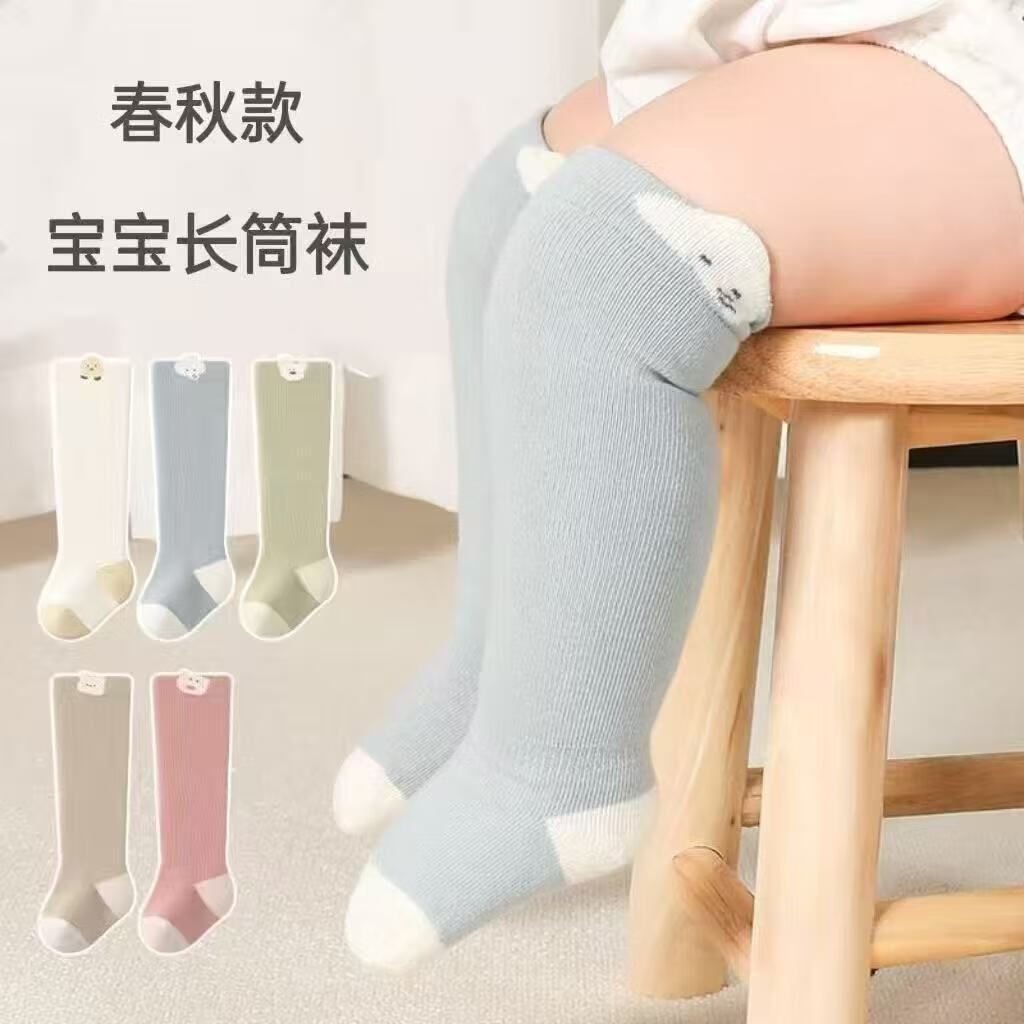 NAOISKEY Naoski baby stockings spring and autumn newborn high-top leg-covering socks newborn baby over-the-knee cotton socks without packaging 1 pair One size fits all 0-11 months (suitable for feet 7-10cm long)