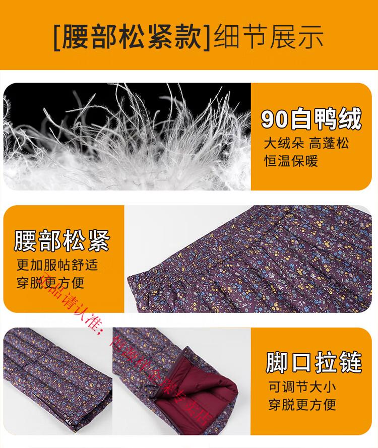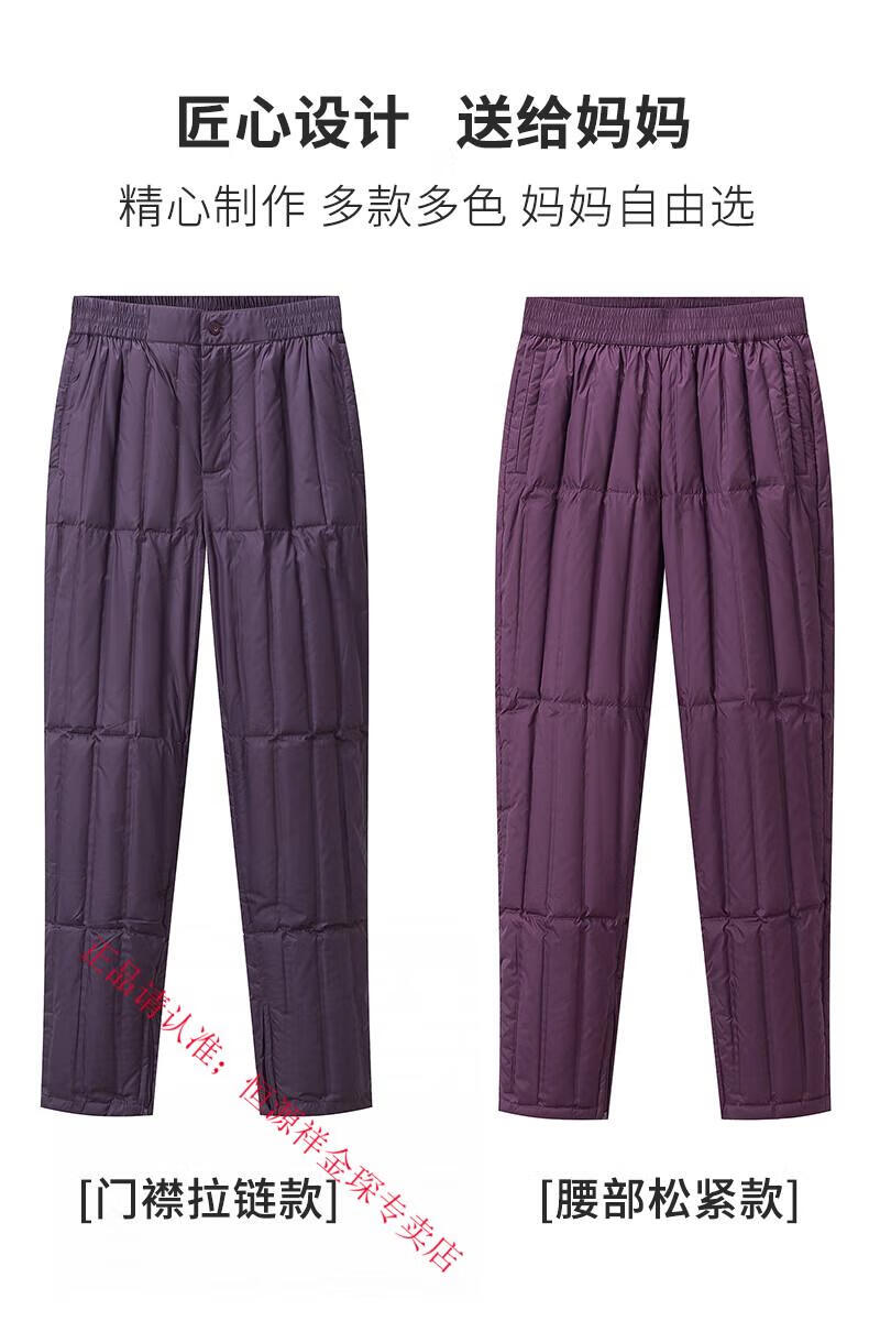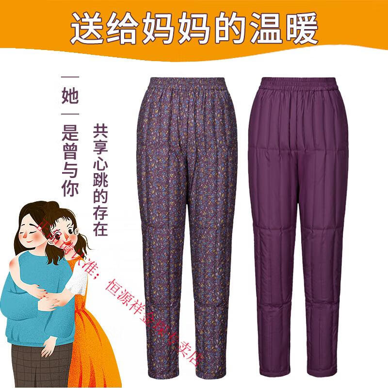 Hengyuanxiang middle-aged down pants winter new thickened warm pants for middle-aged and elderly mothers and grandmothers down cotton pants inner liner 7280 purple elastic waist one size 170100-110Jin Jin equals 0.5 kg