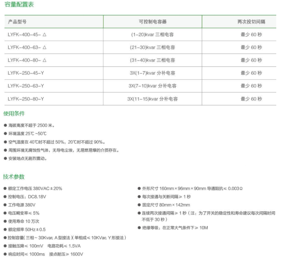 Longyao Electric LYFK-400-45A63A80A three-phase common compensation intelligent capacitor composite switching device LYFK-400-80A