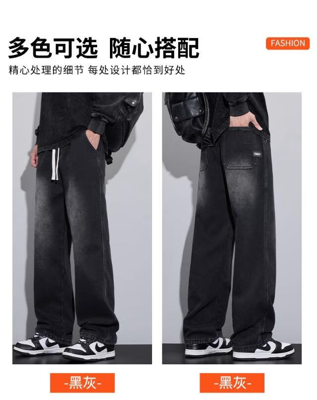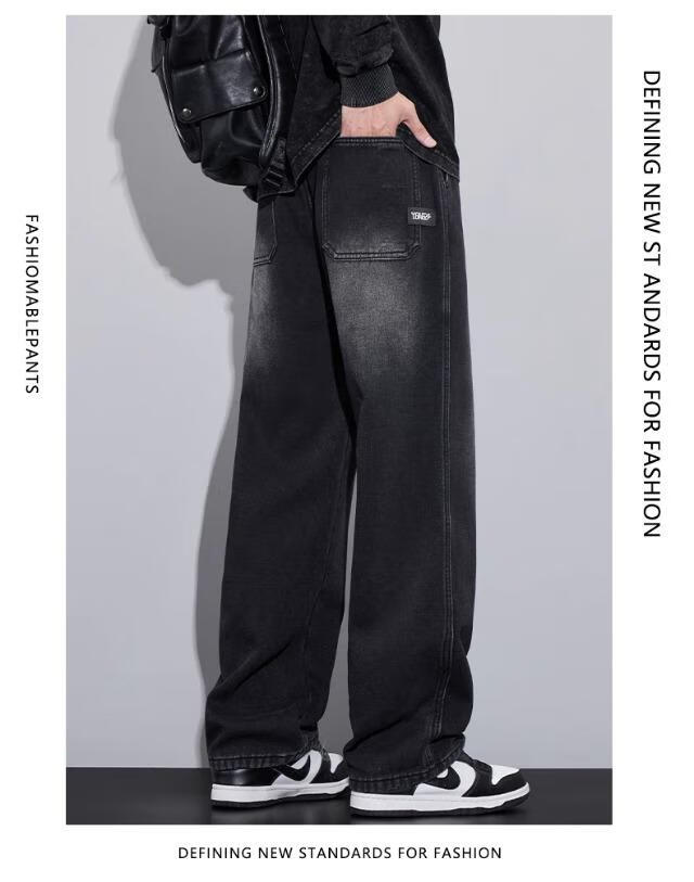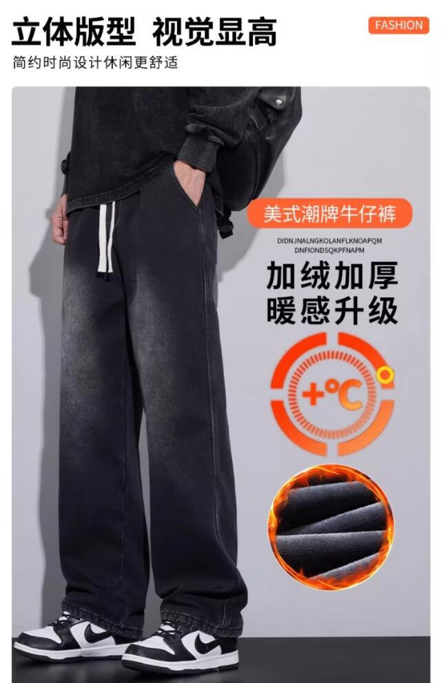 MiiOW 2025 Autumn and Winter Jeans Men's New Wide Leg Loose Straight Plus Velvet Thickened Warm Long Pants Trendy Brand Black-Fleet 3XL