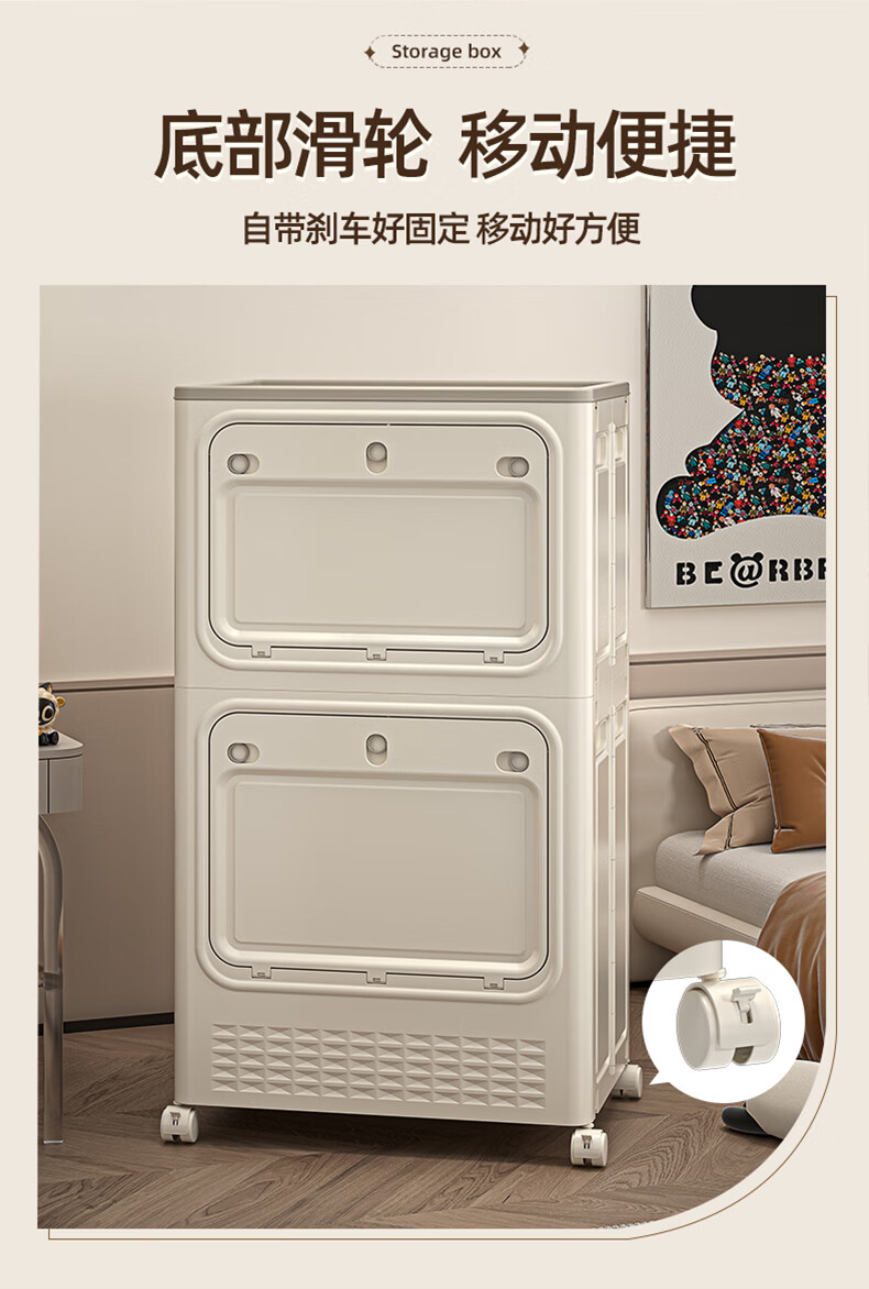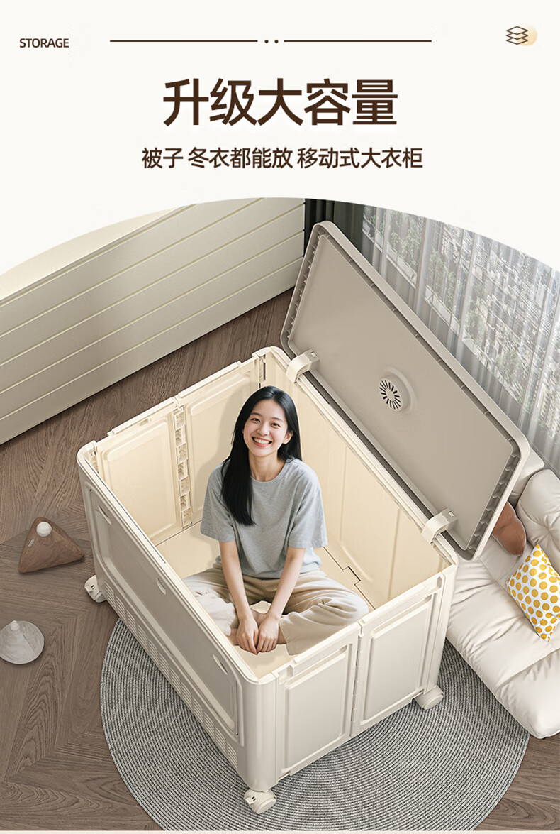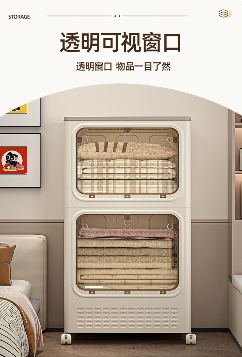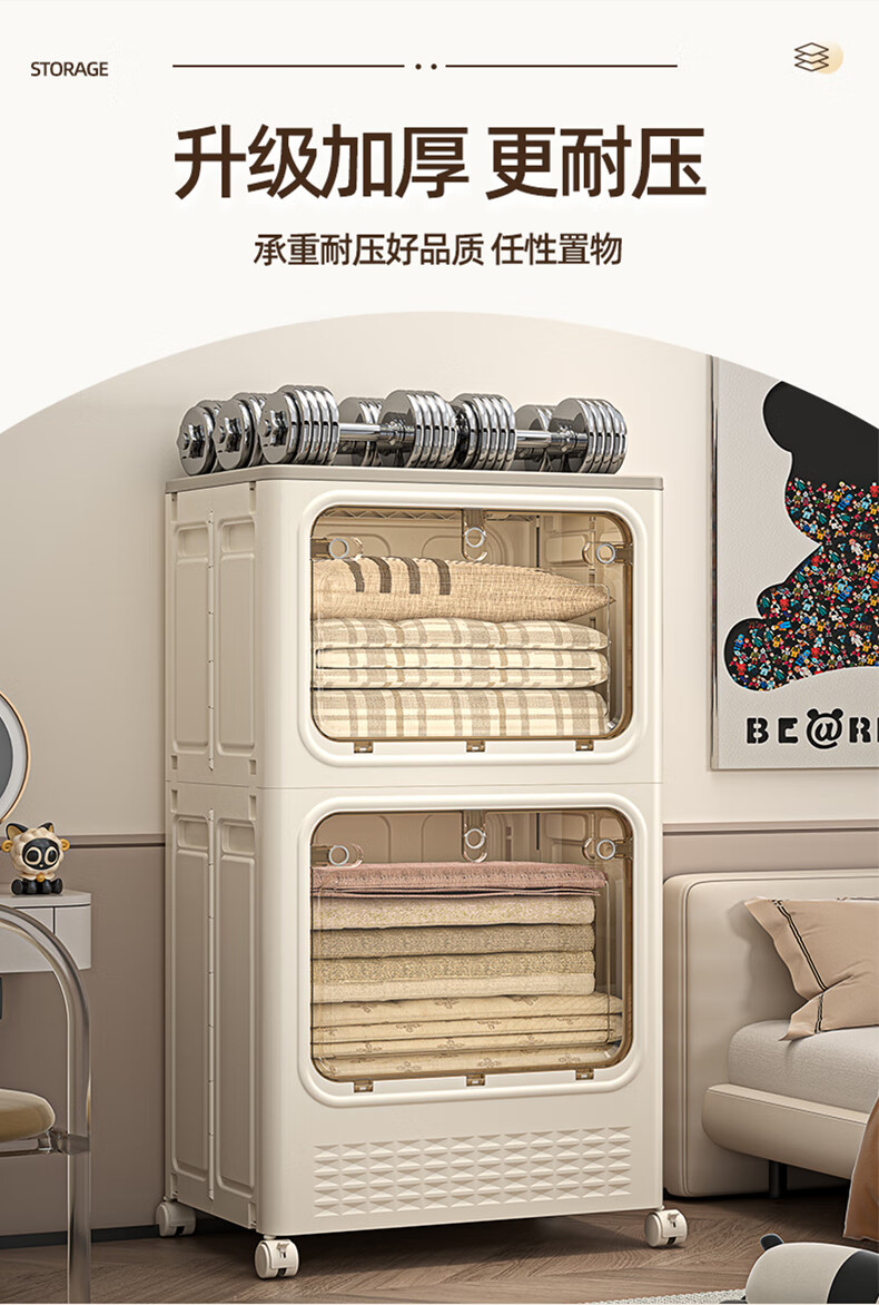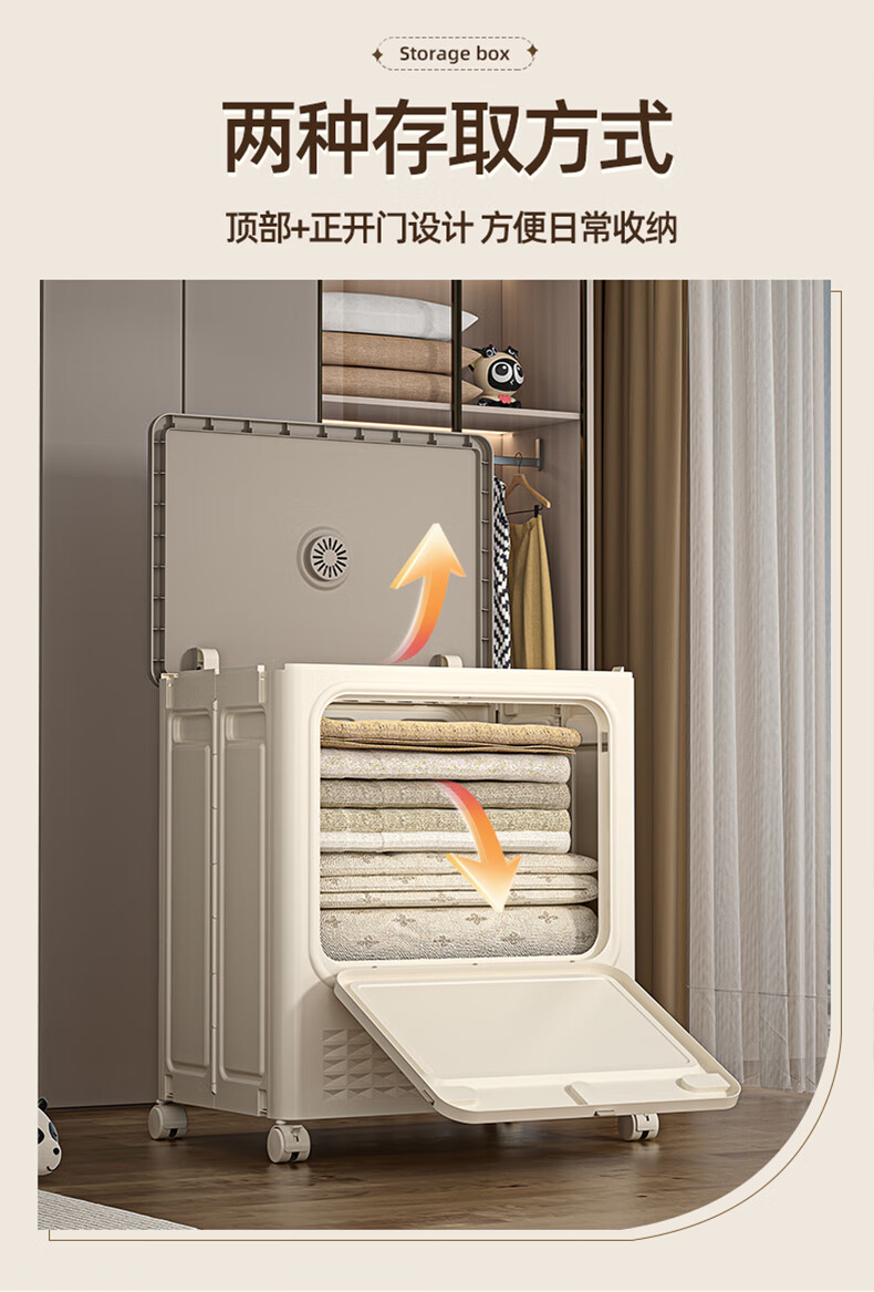 JD Logistics Clothes Storage Box Large Capacity Extra Large Season Clothes Quilt Flip Cover Organizing Box Wheel Folding Gray Solid Door 126L+126L