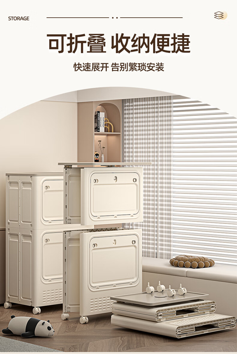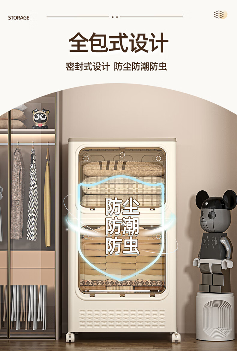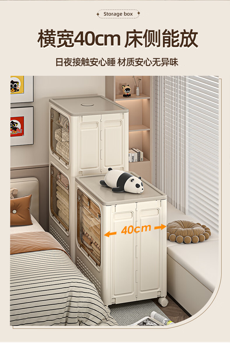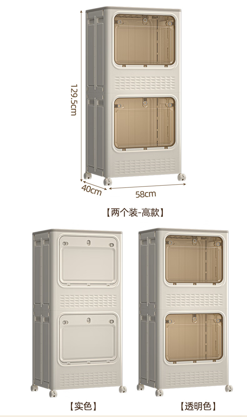 JD Logistics Clothes Storage Box Large Capacity Extra Large Season Clothes Quilt Flip Cover Organizing Box Wheel Folding Gray Solid Door 126L+126L