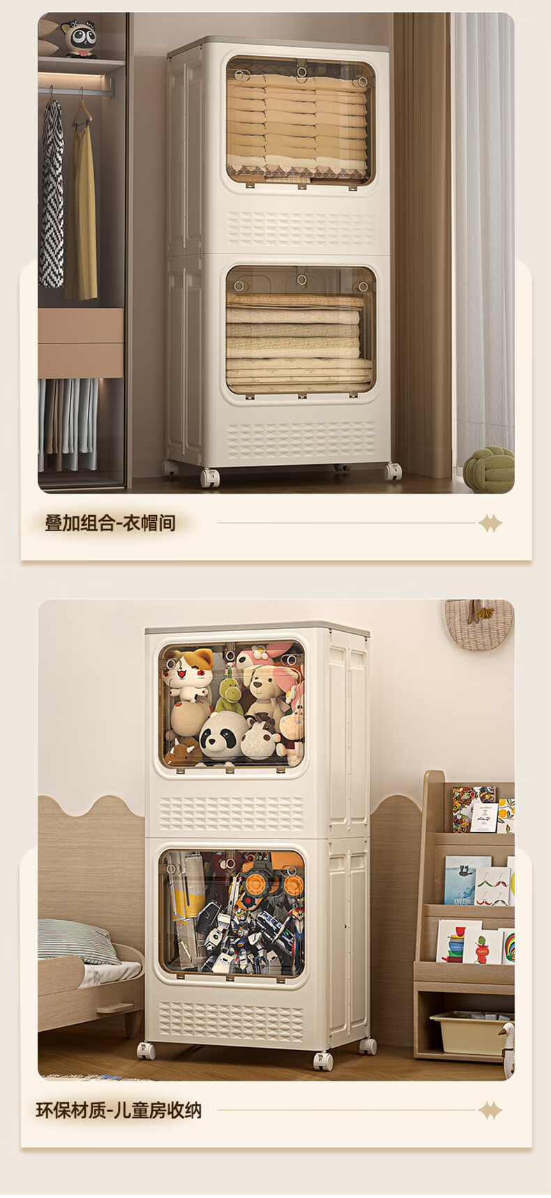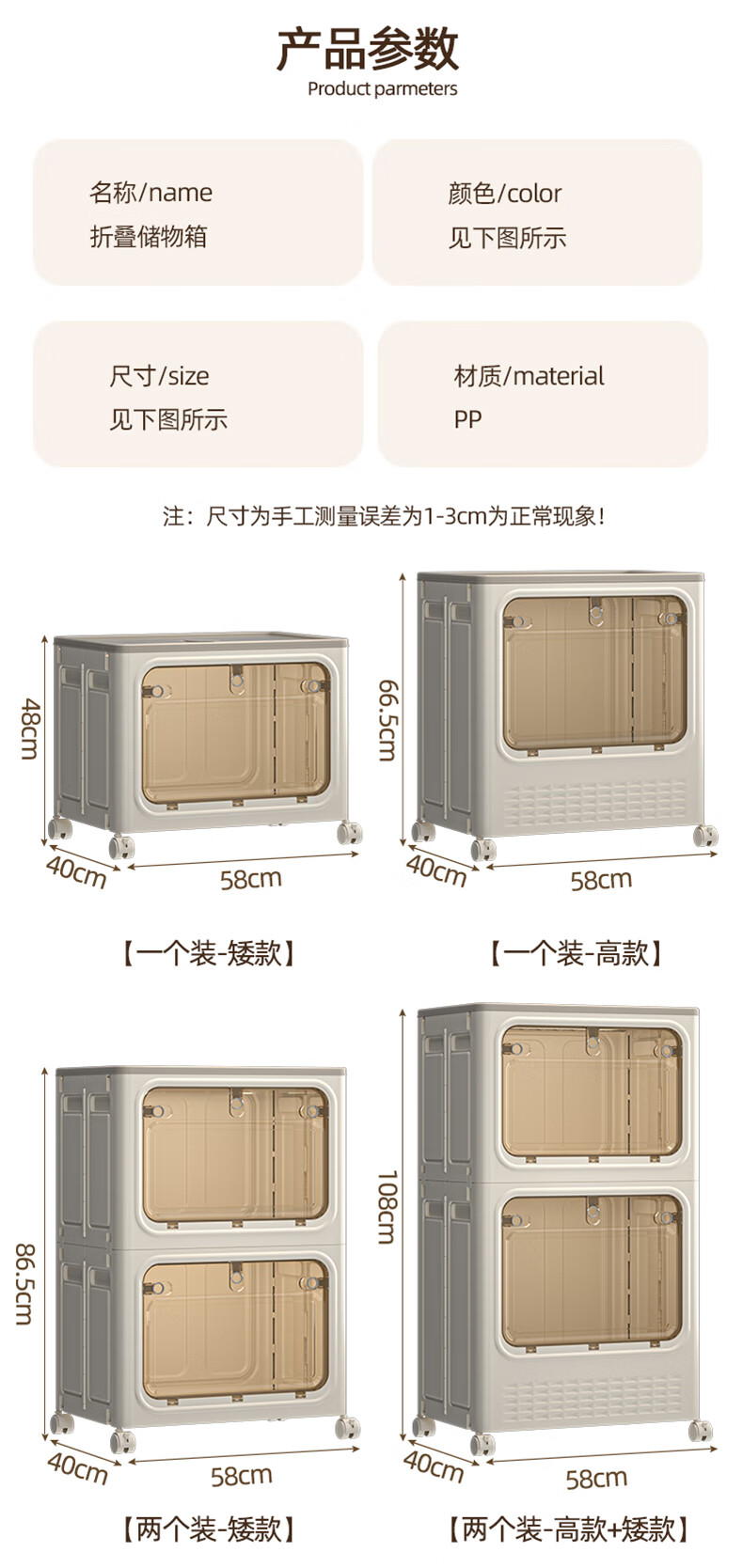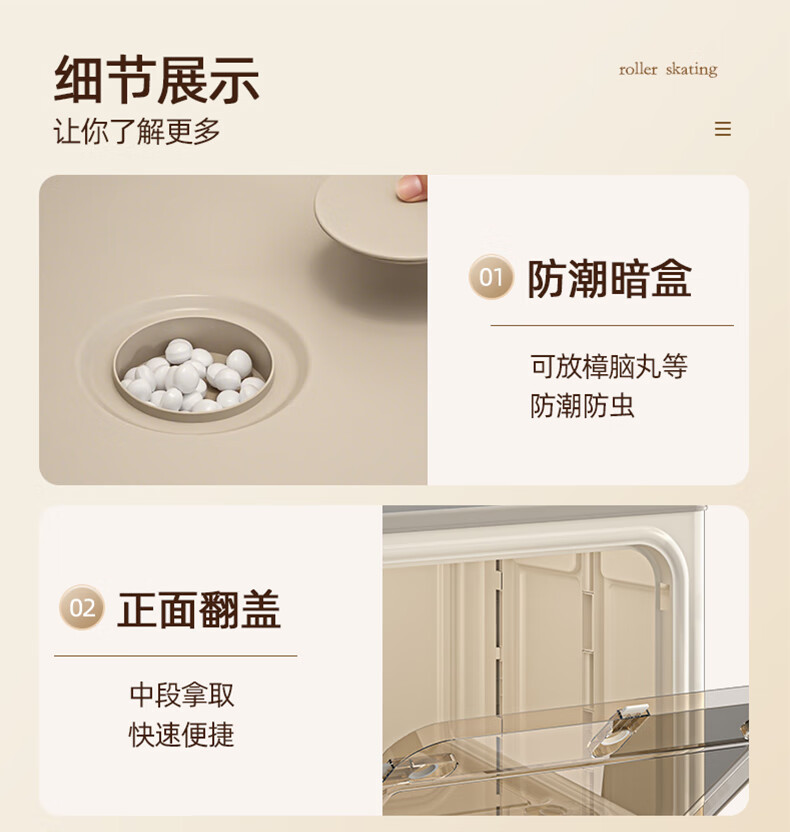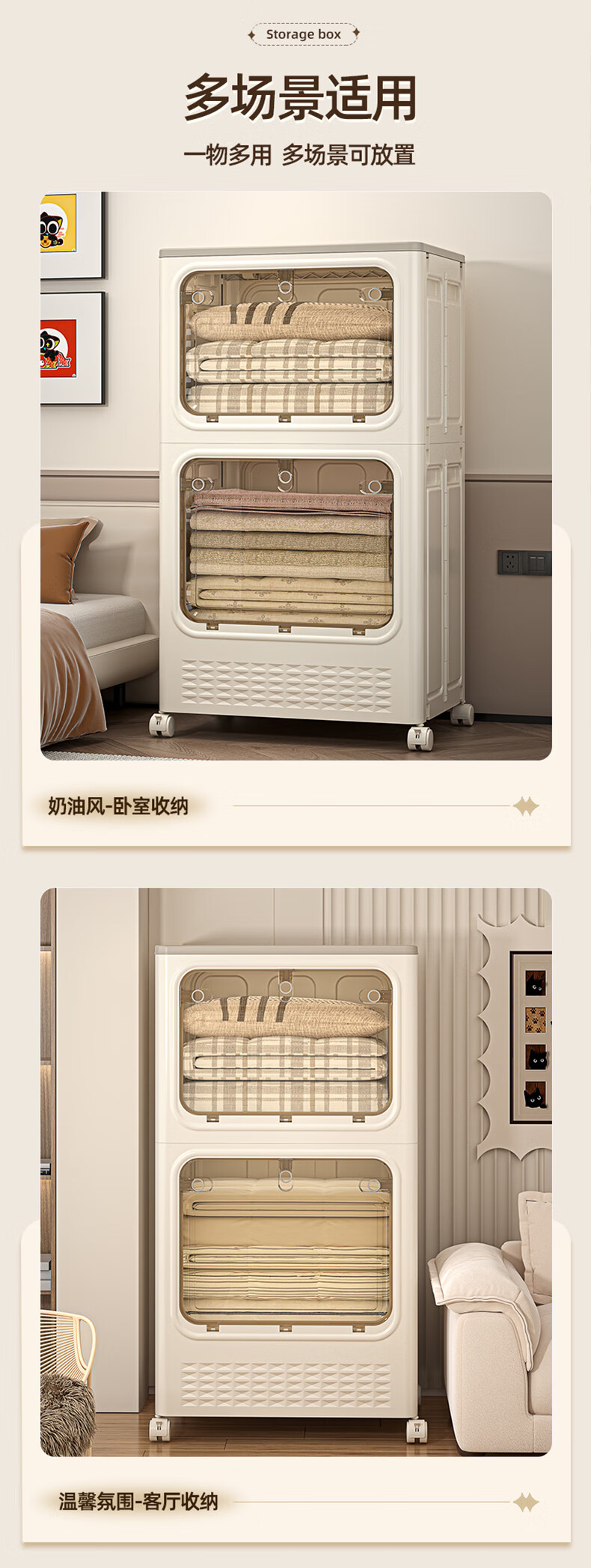 JD Logistics Clothes Storage Box Large Capacity Extra Large Season Clothes Quilt Flip Cover Organizing Box Wheel Folding Gray Solid Door 126L+126L