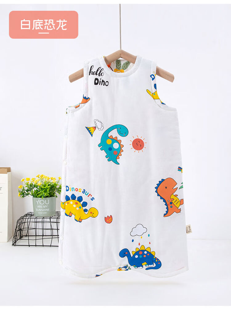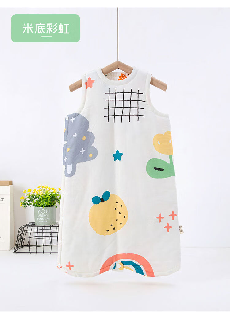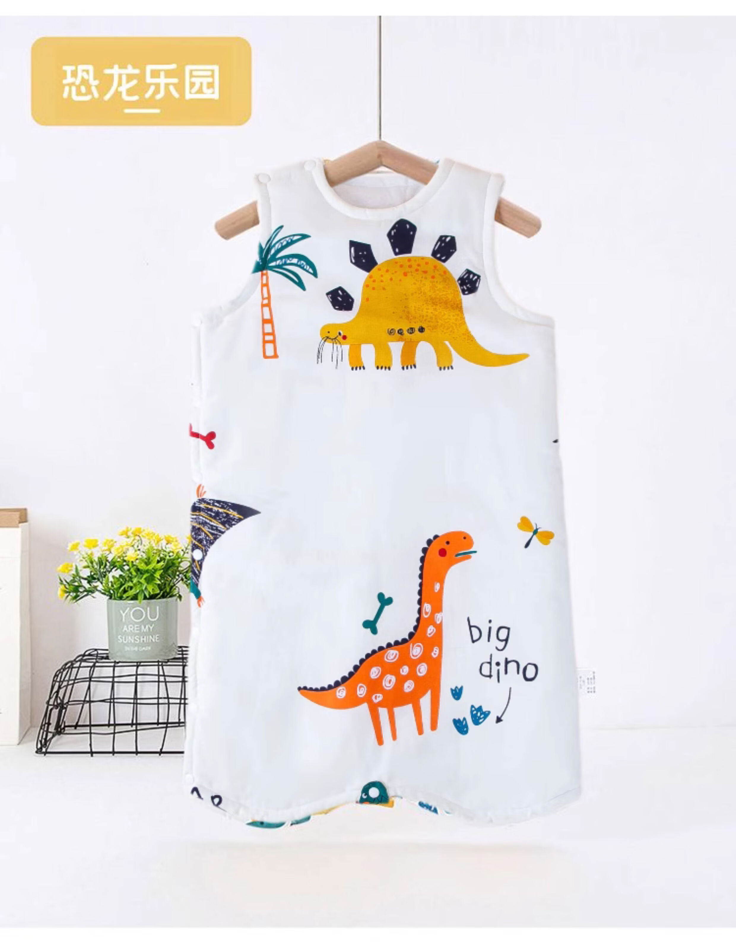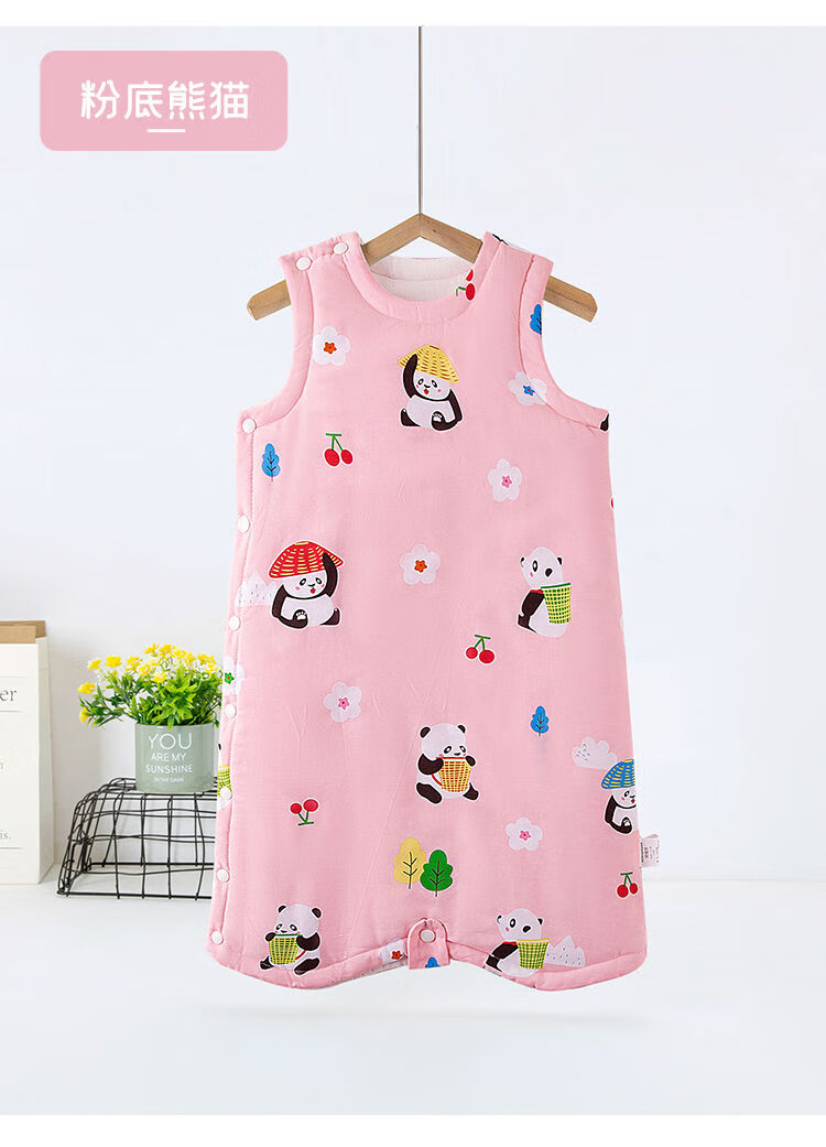 Padded vest style children's sleeping bag baby autumn and winter pajamas thickened nightgown warm baby anti-kicking quilt artifact blue background giraffe front and back cotton 90 yards - 4-6 years old clothing length 90cm