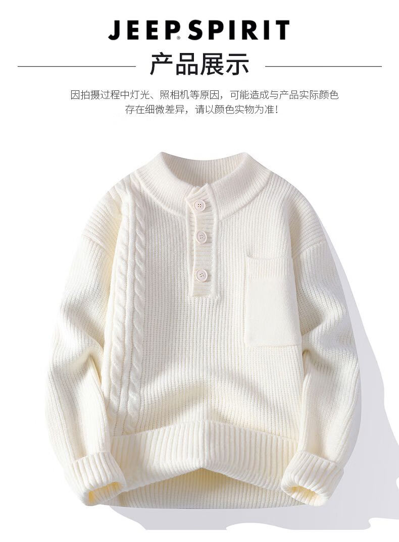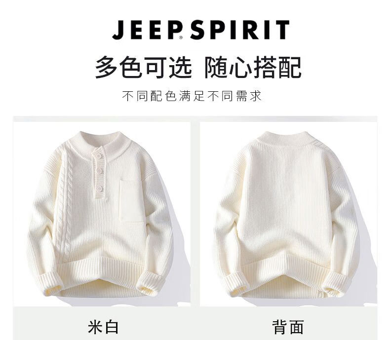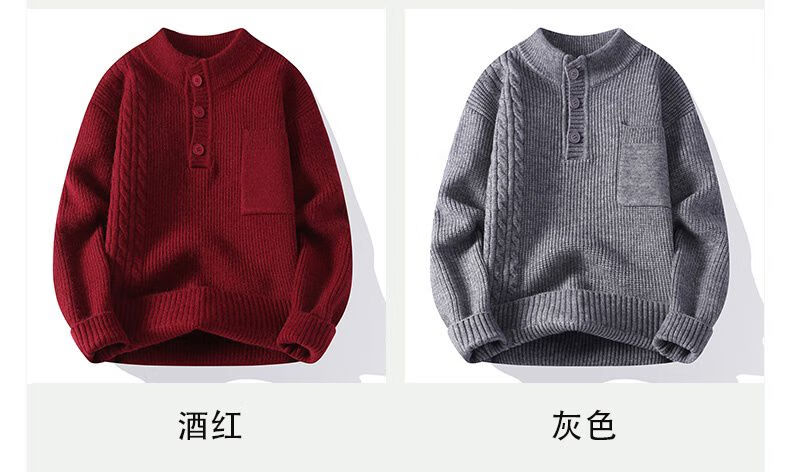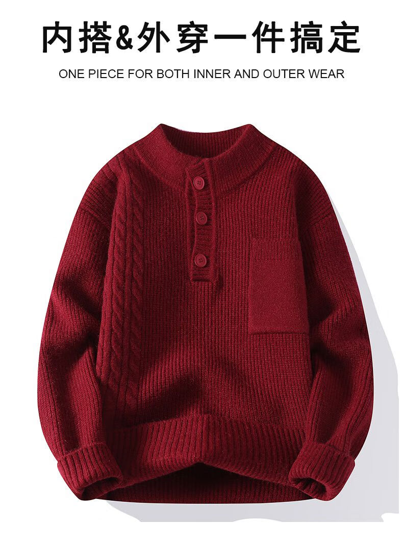 JEEP SPIRITJEEPSPIRIT Henry Collar Sweater Men's 2025 Autumn Trendy Loose Casual Youth Knitted Sweater Men 25663 Burgundy M