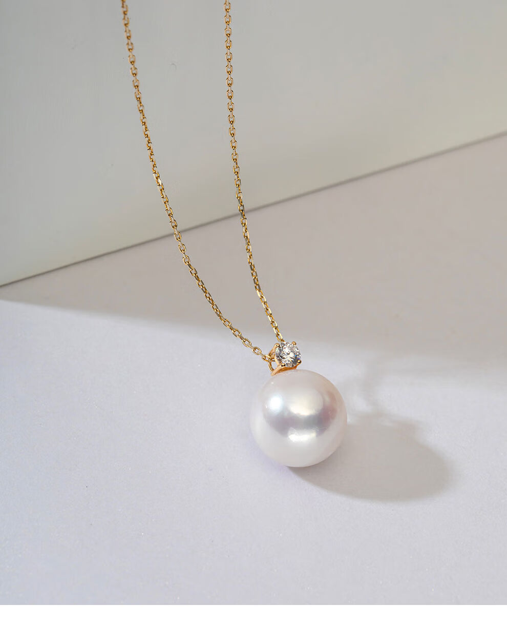18K gold large round freshwater pearl pendant Princess Diana style female CD019KDJ 18K pendant + 925 silver refined freshwater pearl 14-15mm